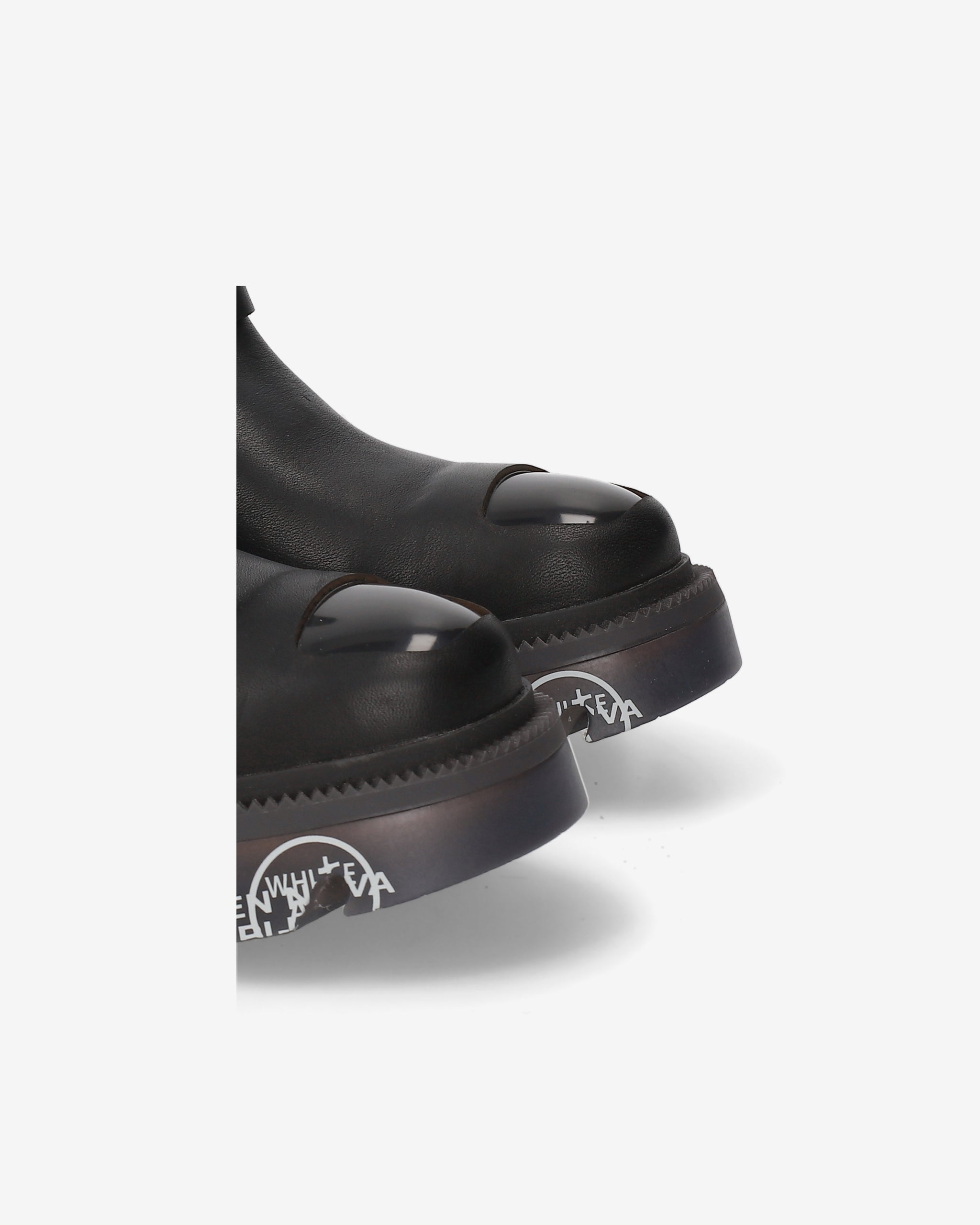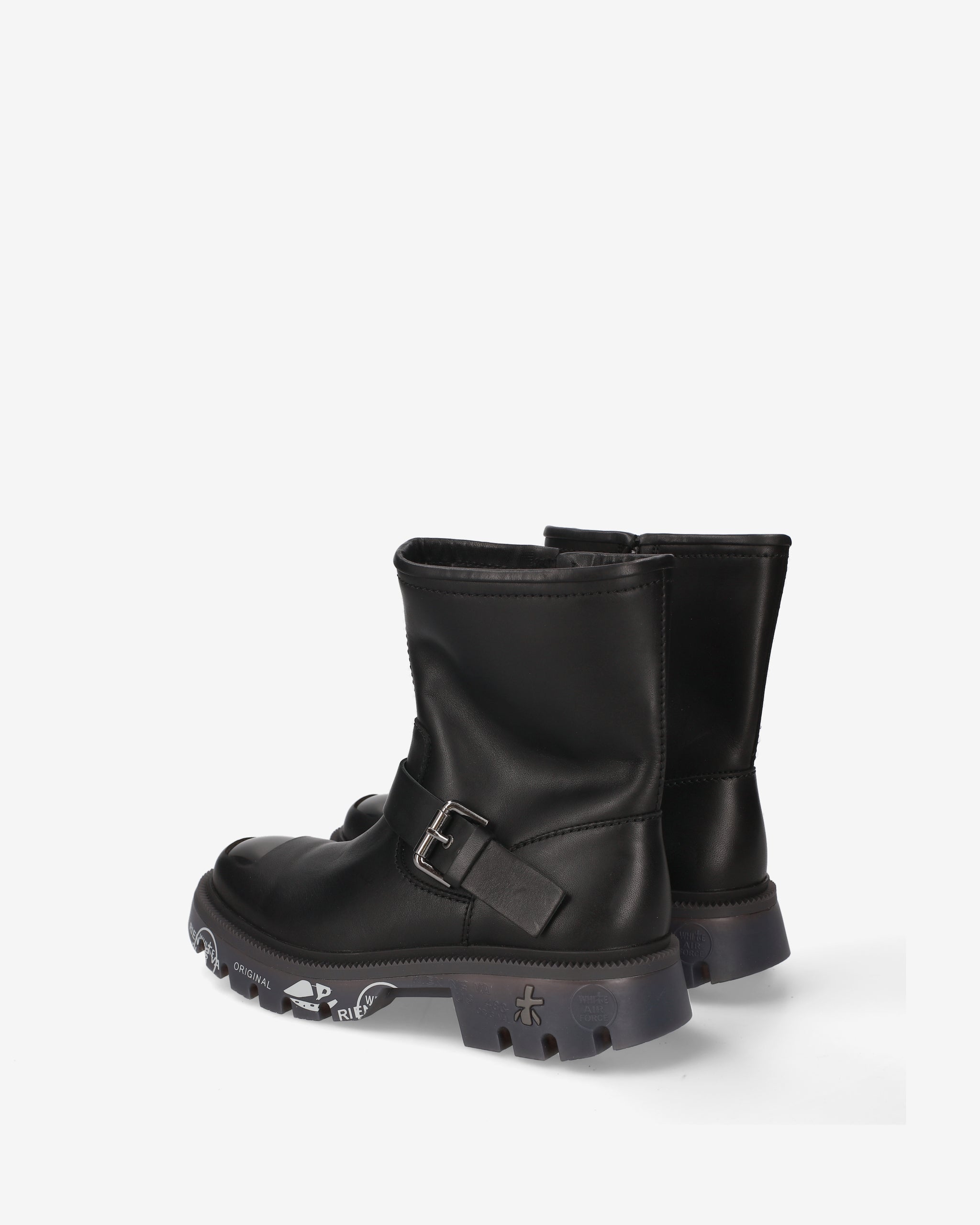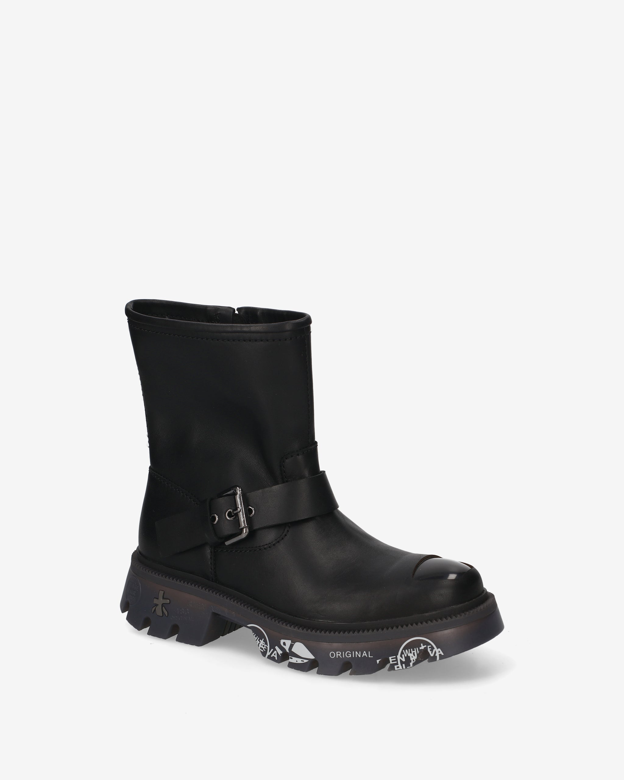 Calf leather biker with ABS toe cap and matching bottom. Strong lines and sturdy materials for an essential, gritty look inspired by London's underground aesthetic.
