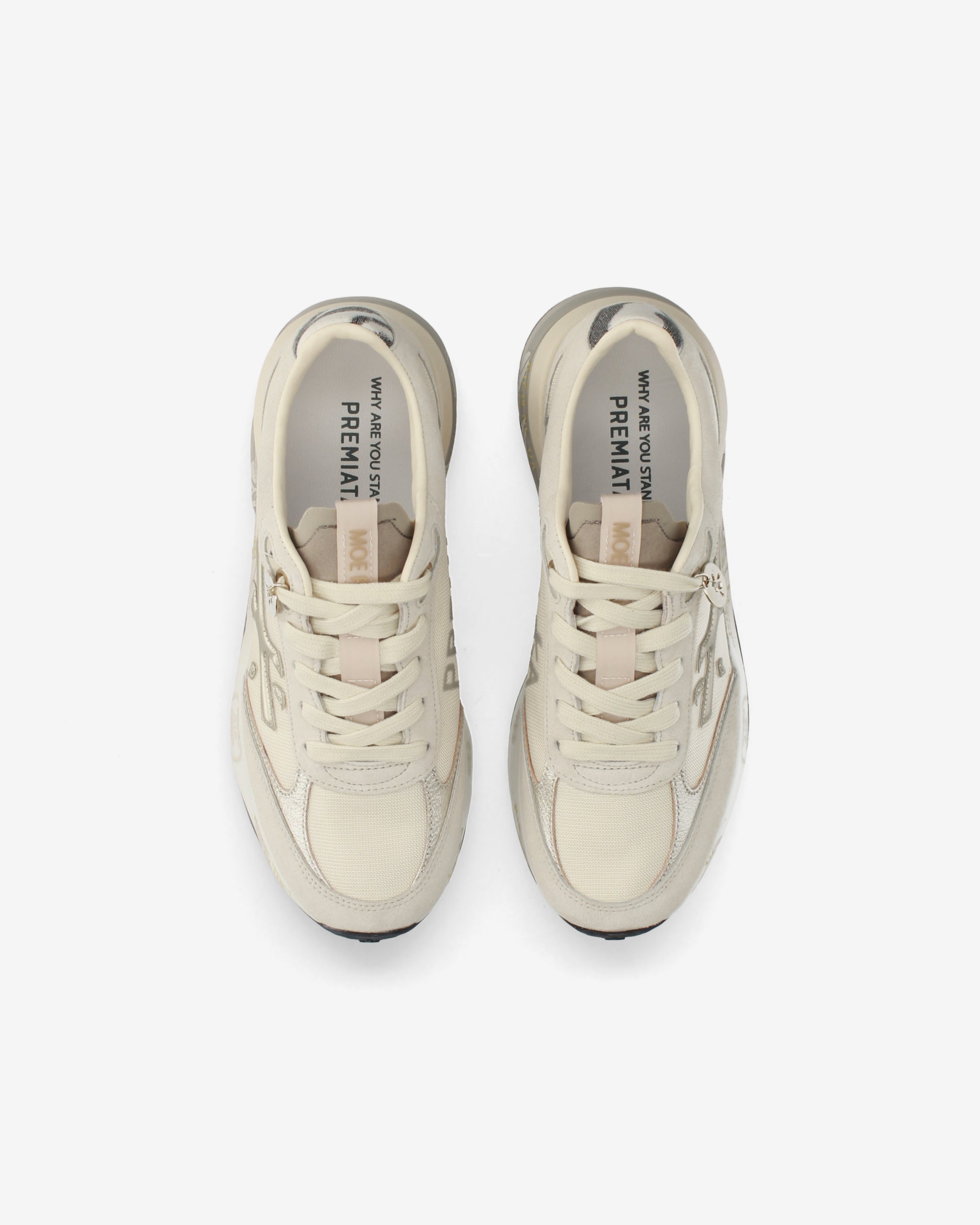 Designed to impress. The Moerun is based on lightness of movement, stability, and the cushioning sensation provided by the innovative sole. The new silhouette is rich in details: logo on the outer side, PREMIATA lettering on the inner side, and model name on the label.