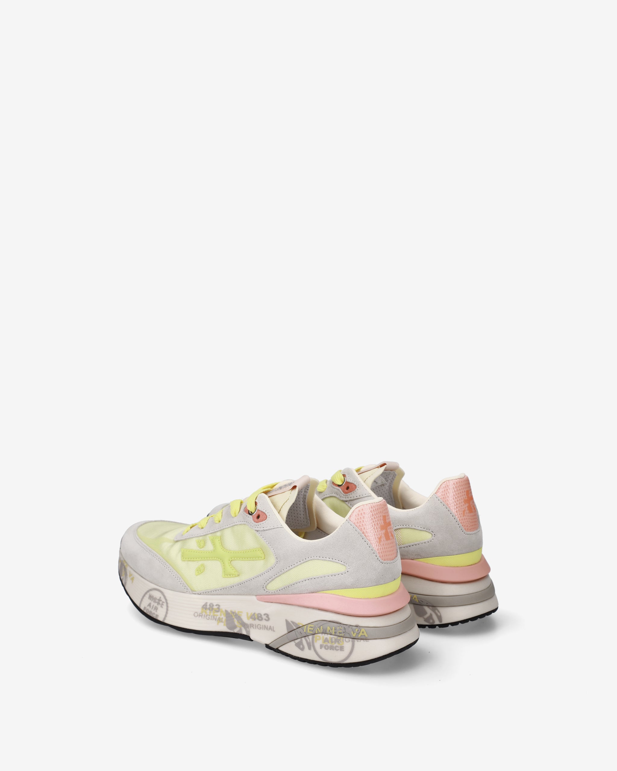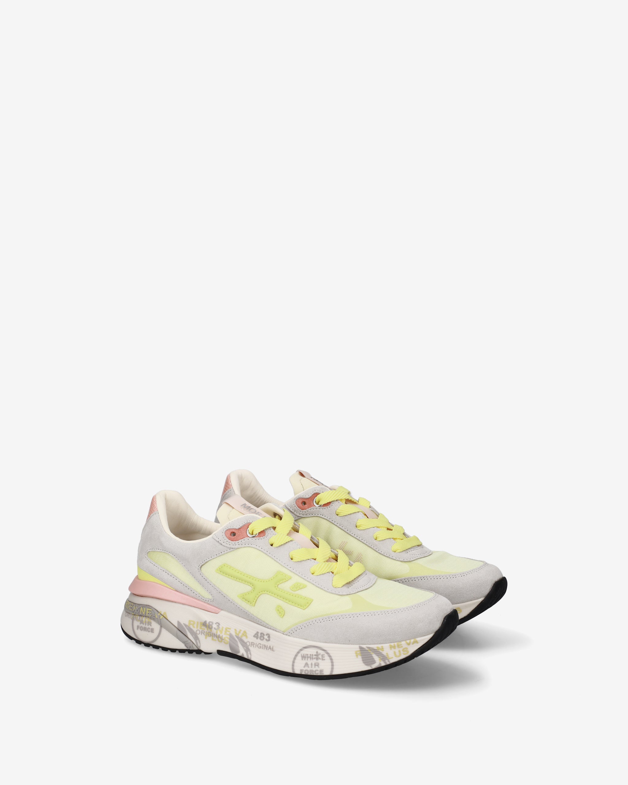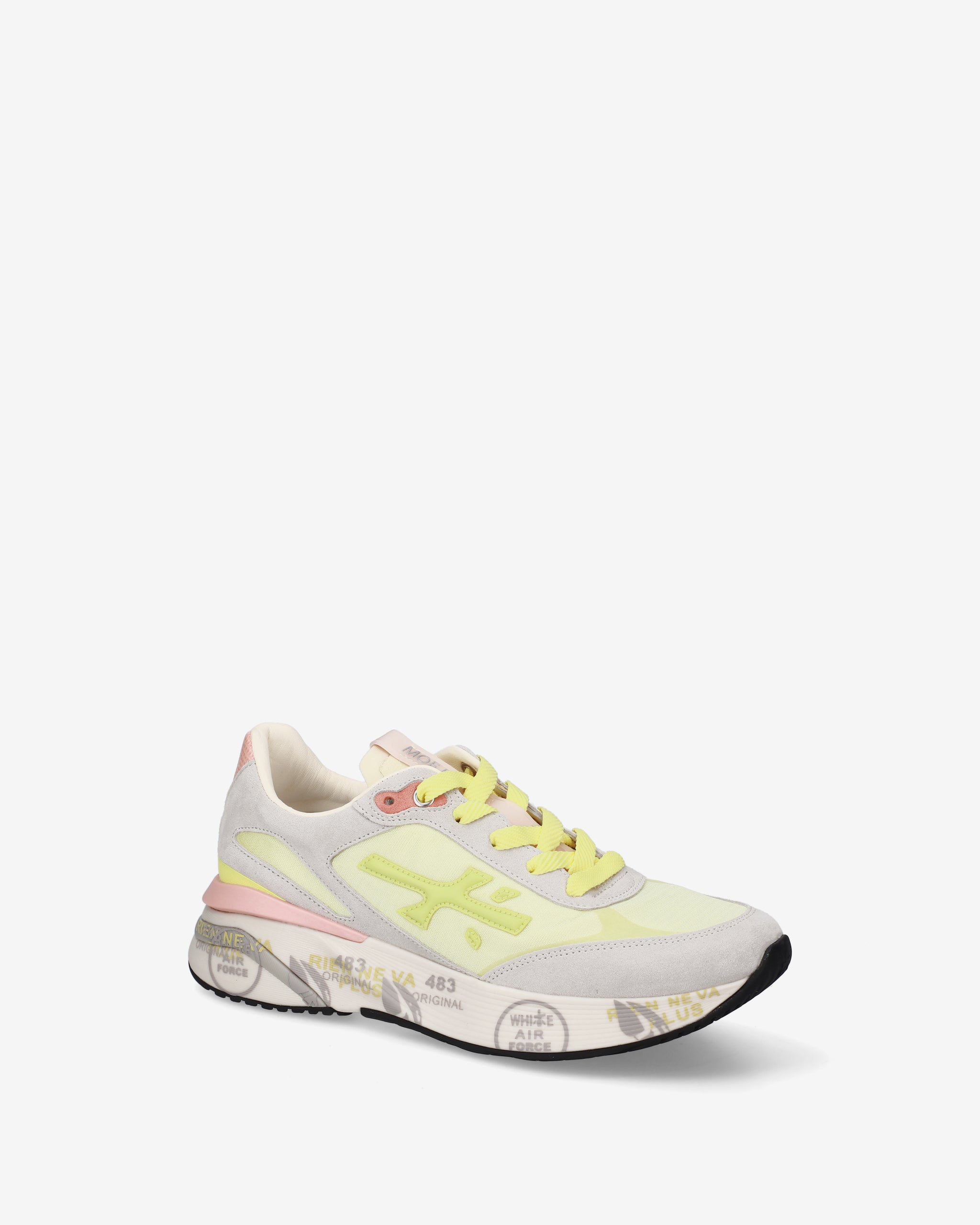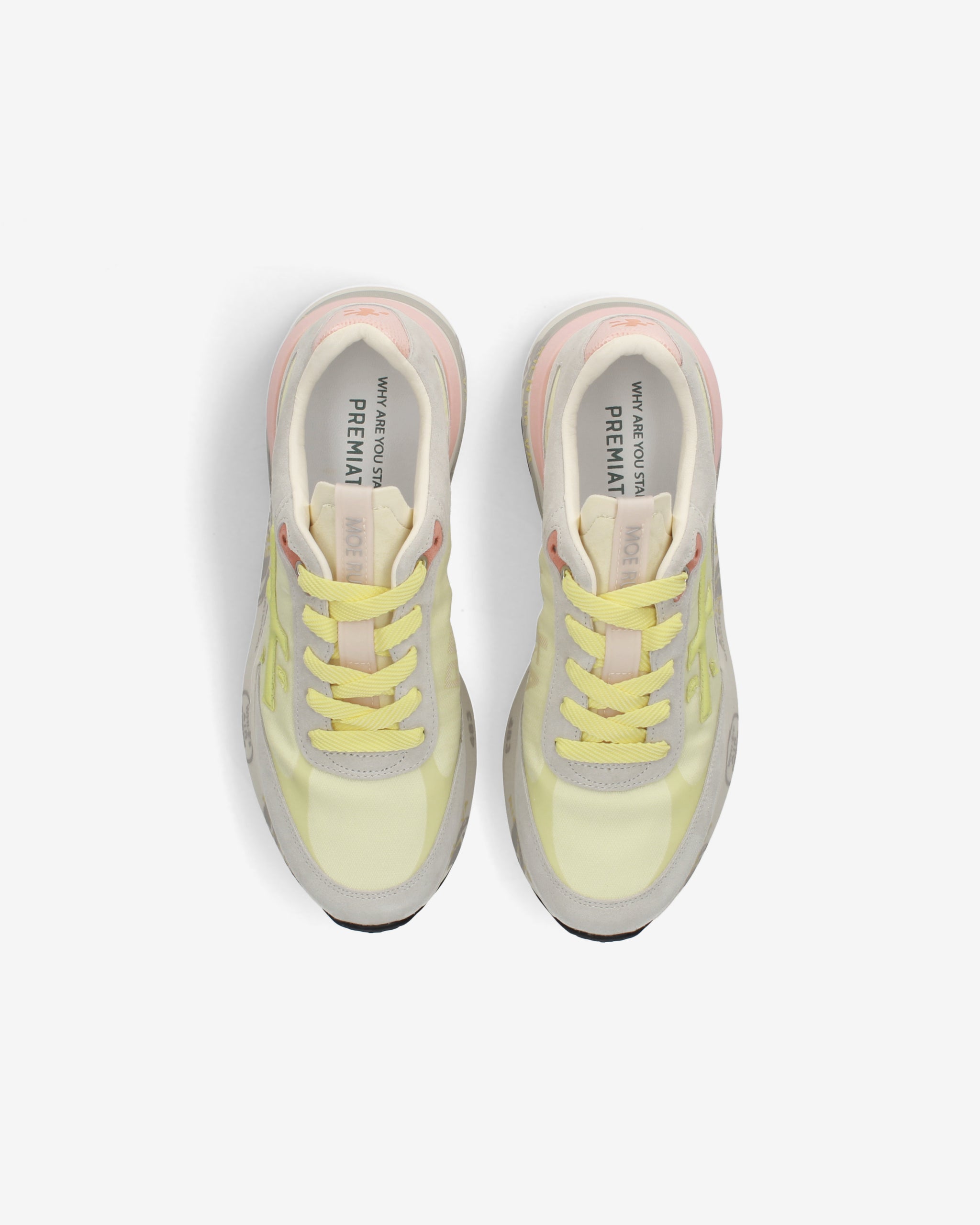 Designed to impress. The Moerun is based on lightness of movement, stability, and the cushioning sensation provided by the innovative sole. The new silhouette is rich in details: logo on the outer side, PREMIATA lettering on the inner side, and model name on the label.