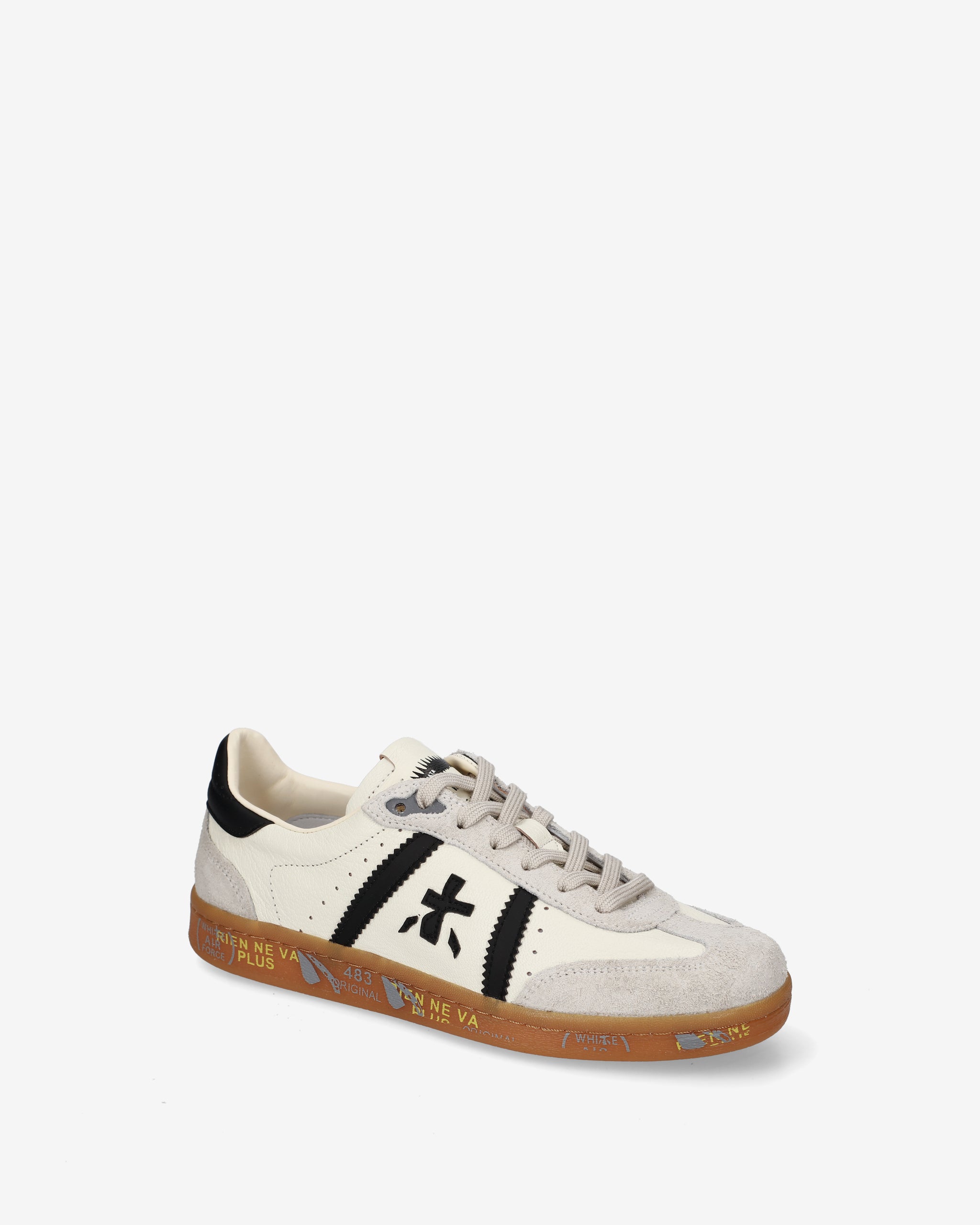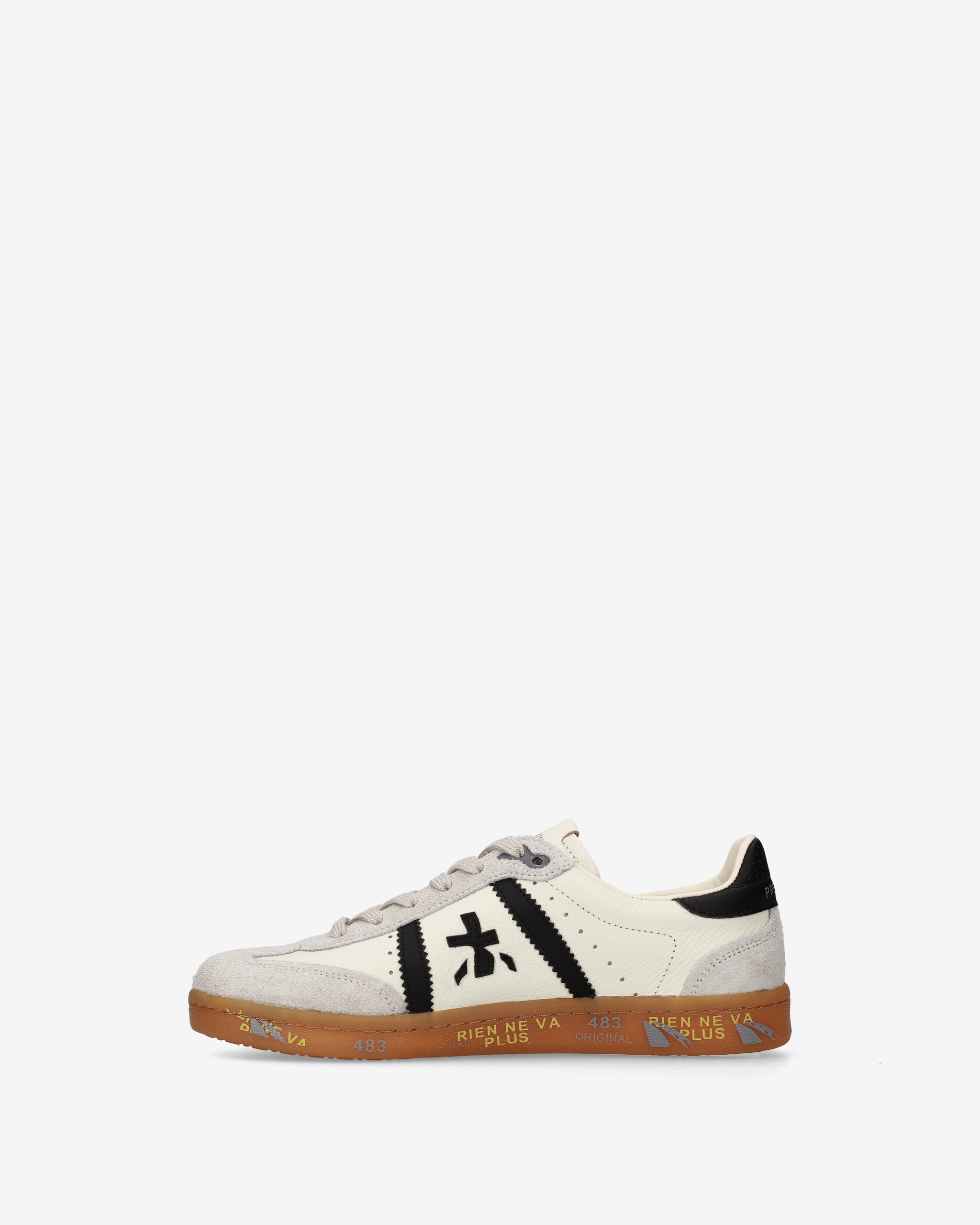 Bonnie with white upper, contrasting black details, and gum sole. A mix of classic colors for a clean and sophisticated look.