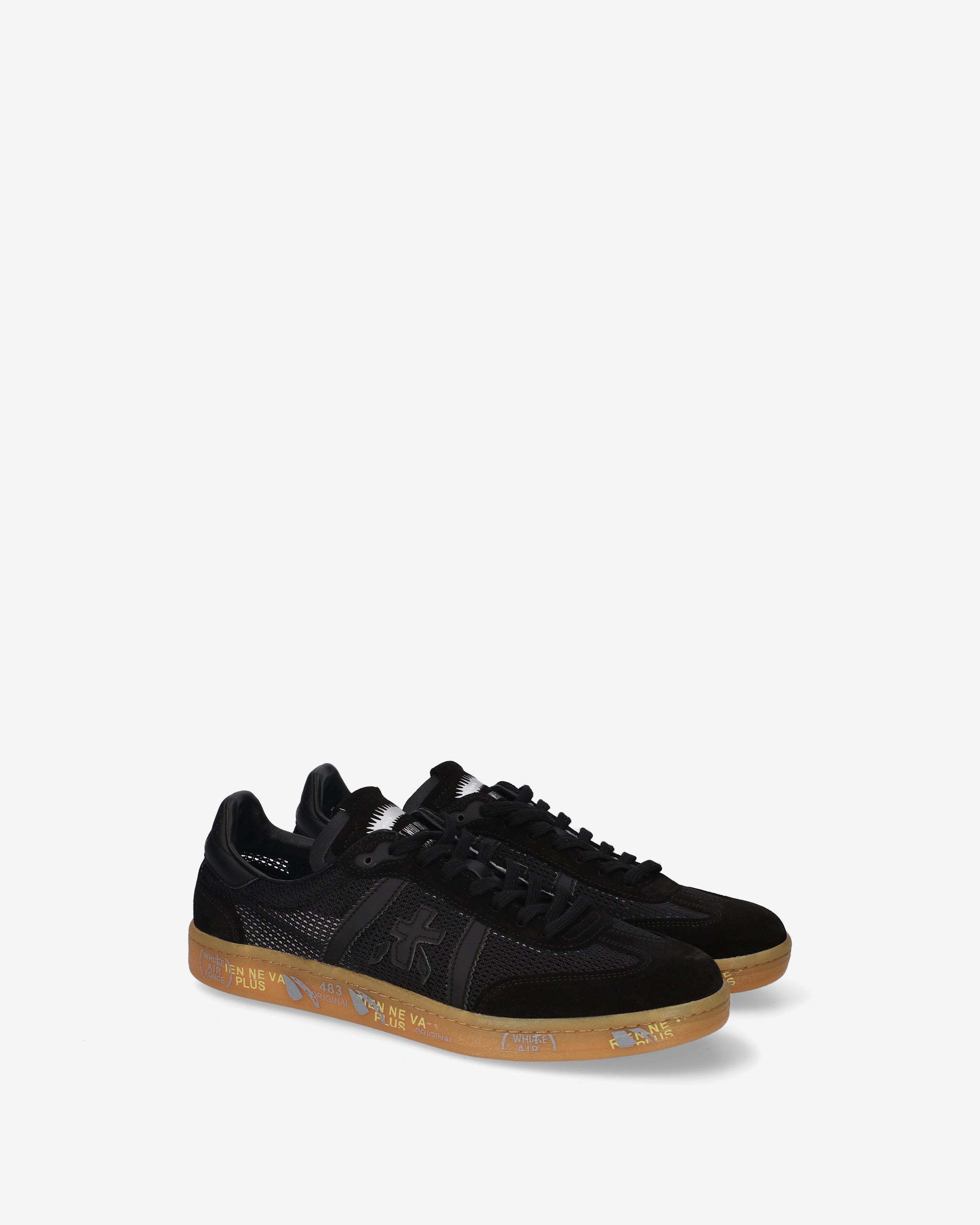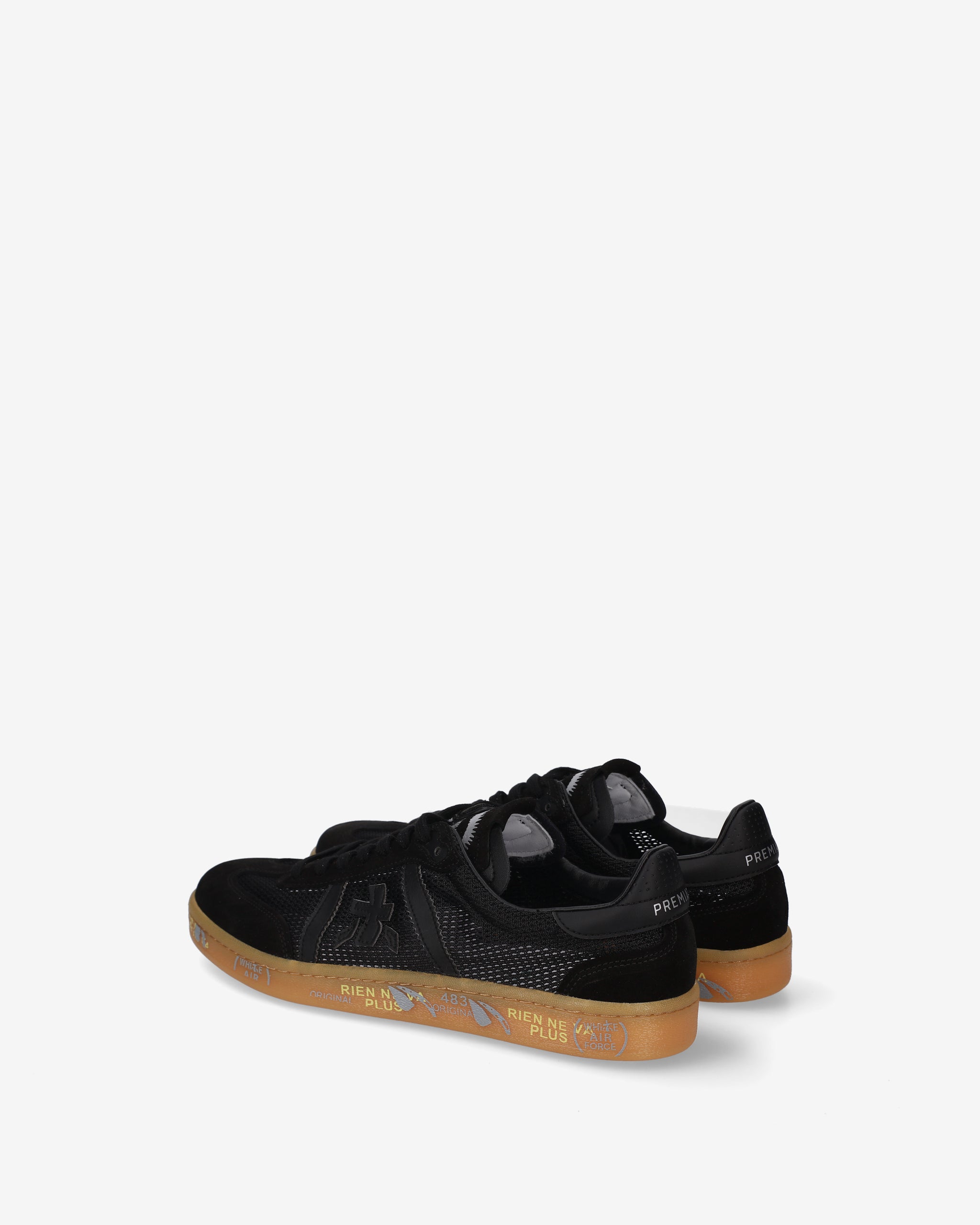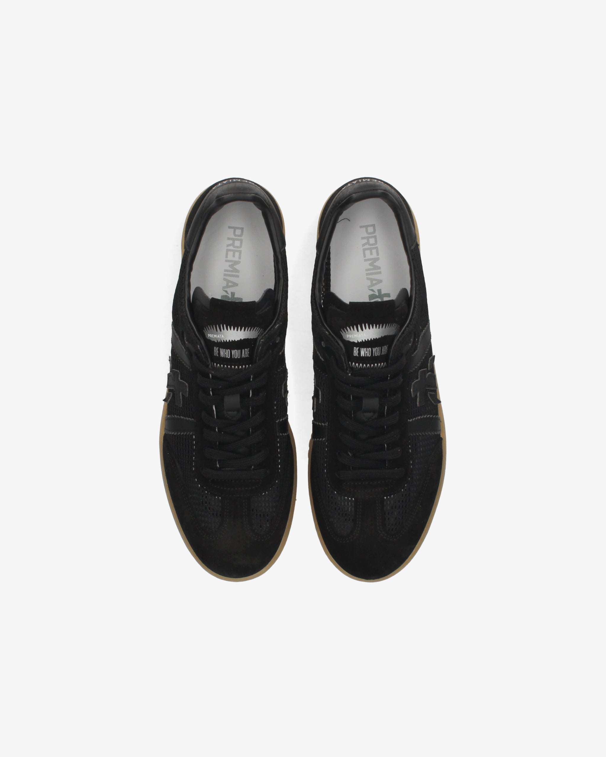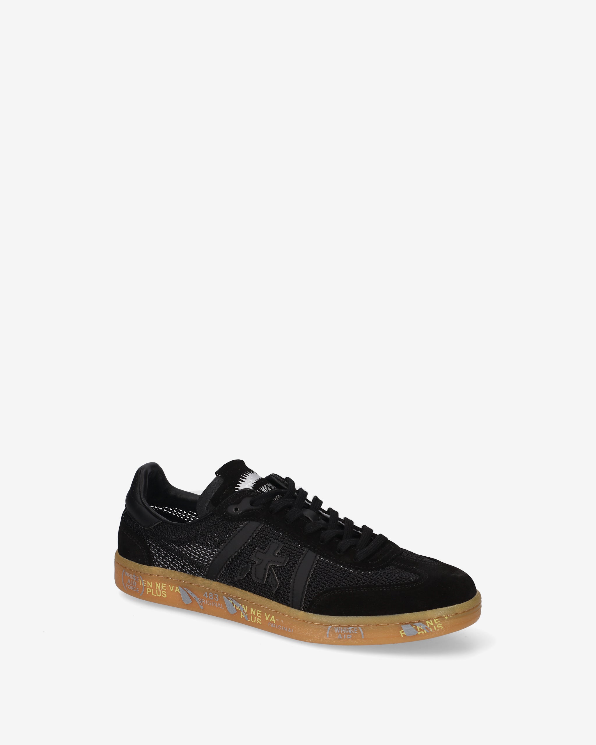 Bonnie with black perforated upper, tone-on-tone black details, and gum sole. A basic color for a clean and sophisticated look.