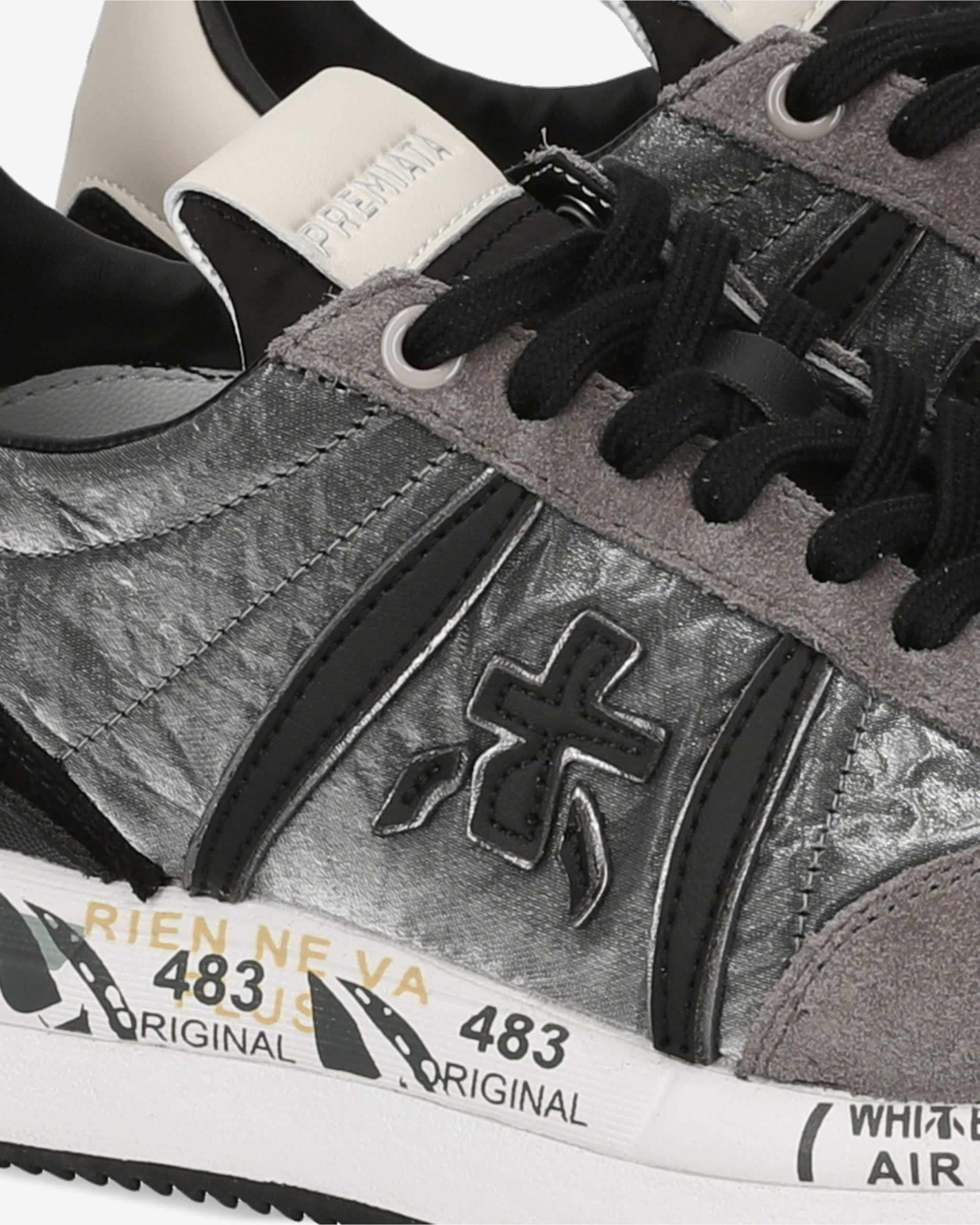 Quality materials and leathers characterize this sneaker, as does our entire history. The shoe is made unique by the mix of leathers and fabrics and shiny details. The bottom enhances the look, contributing a casual glam spirit and slimming the silhouette.