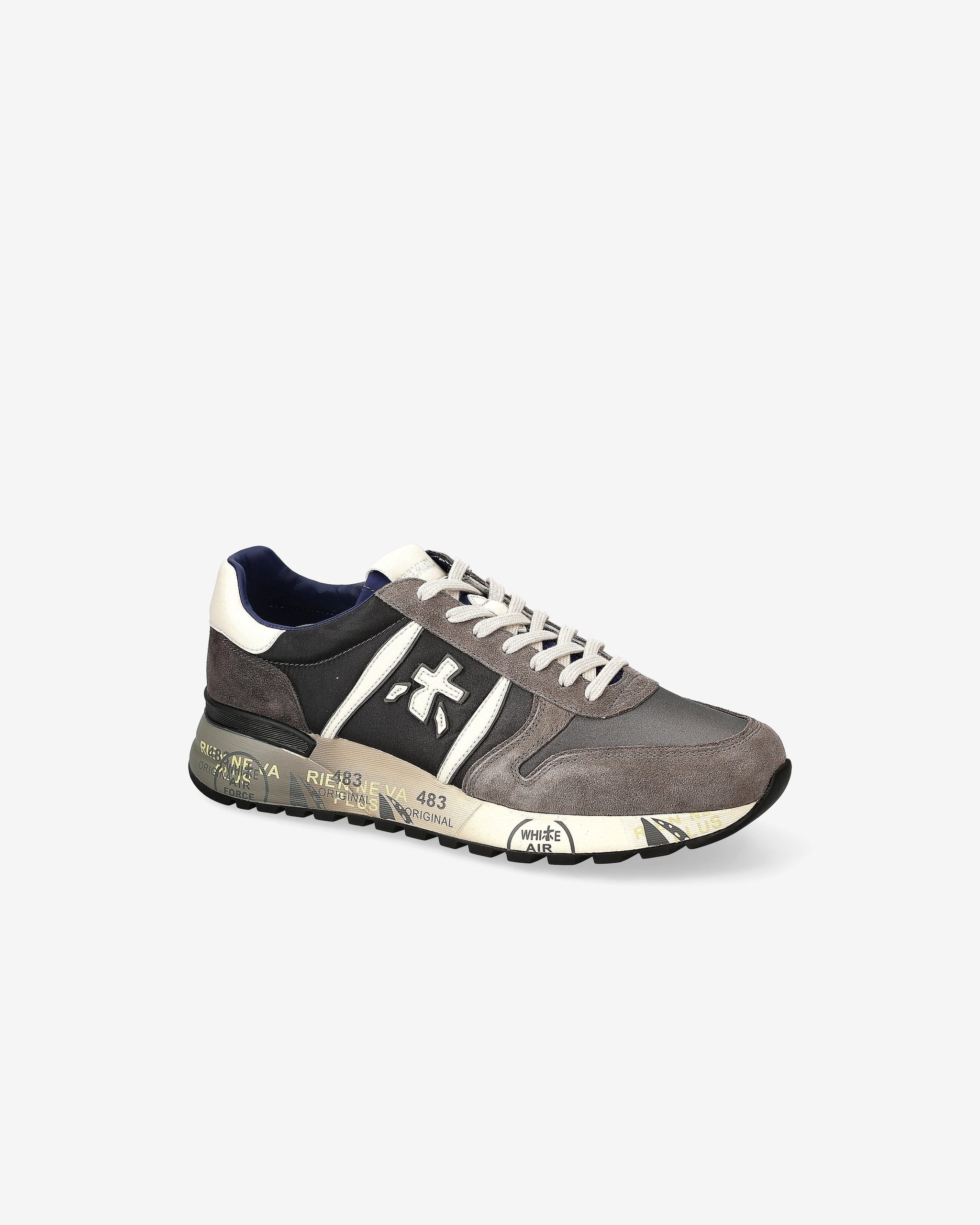 Lander sneakers made of soft suede leather and nylon in the shade of gray. The look is enhanced by the unmistakable Premiata logo and colorful details on the sole. Ergonomic and super lightweight outsole.