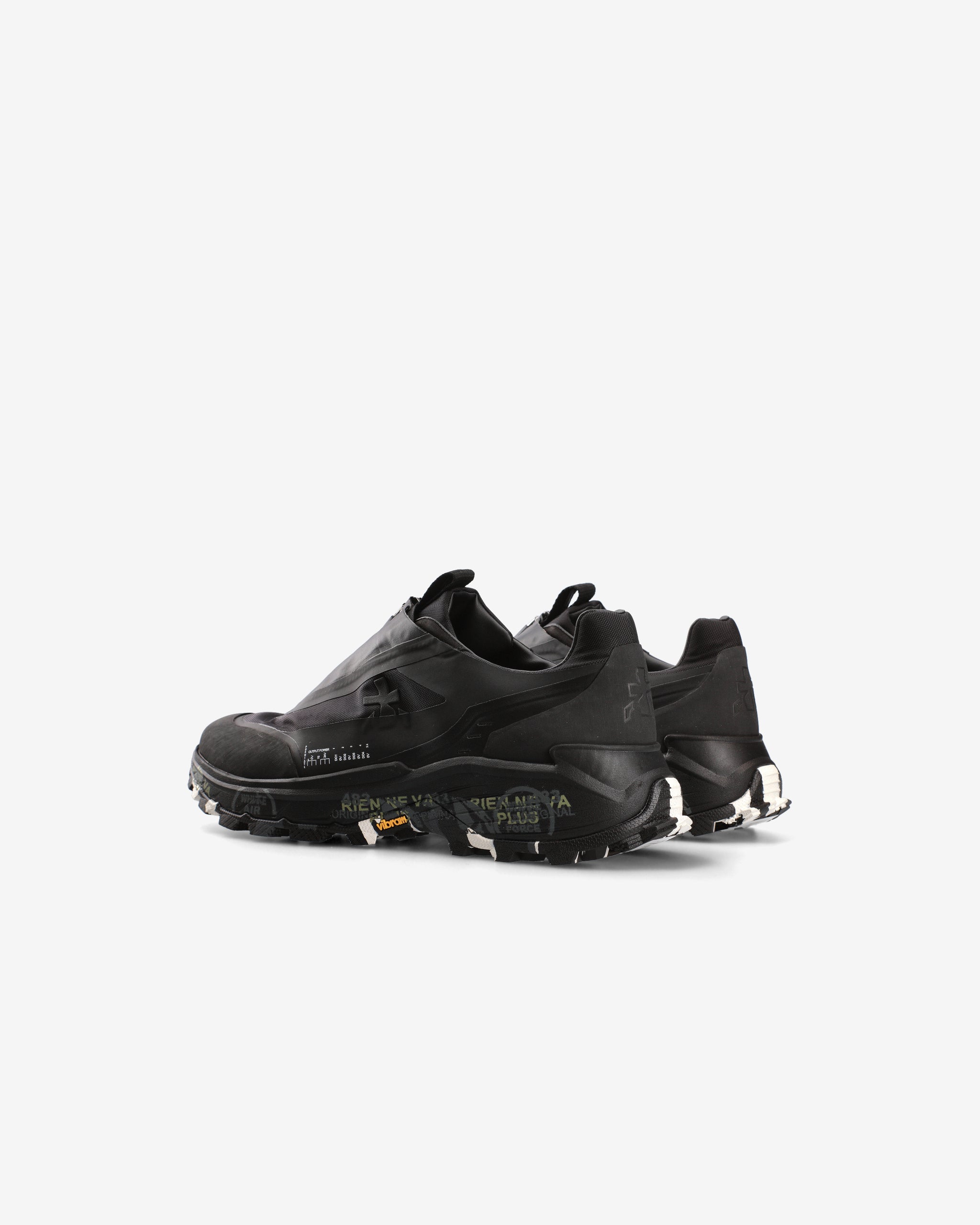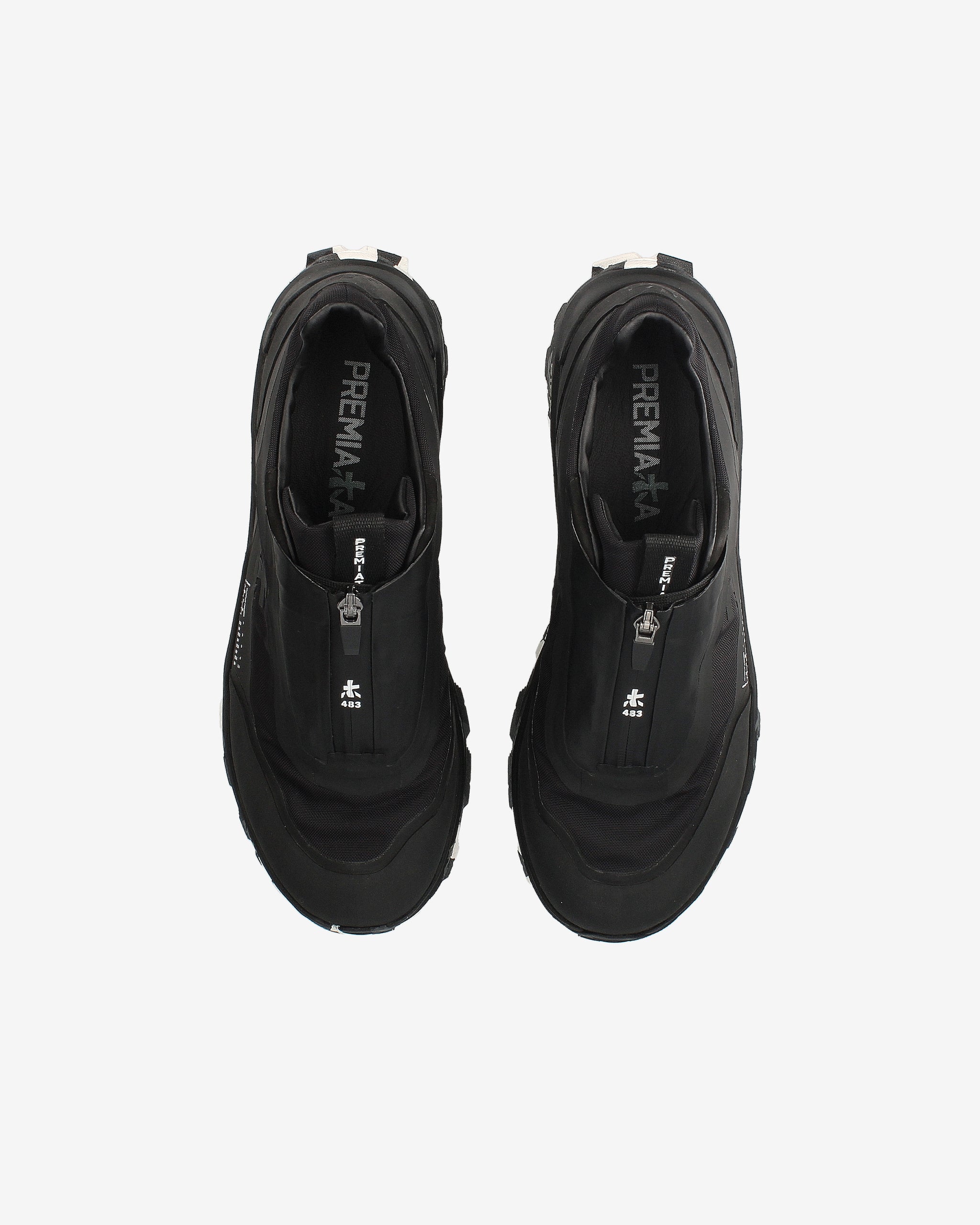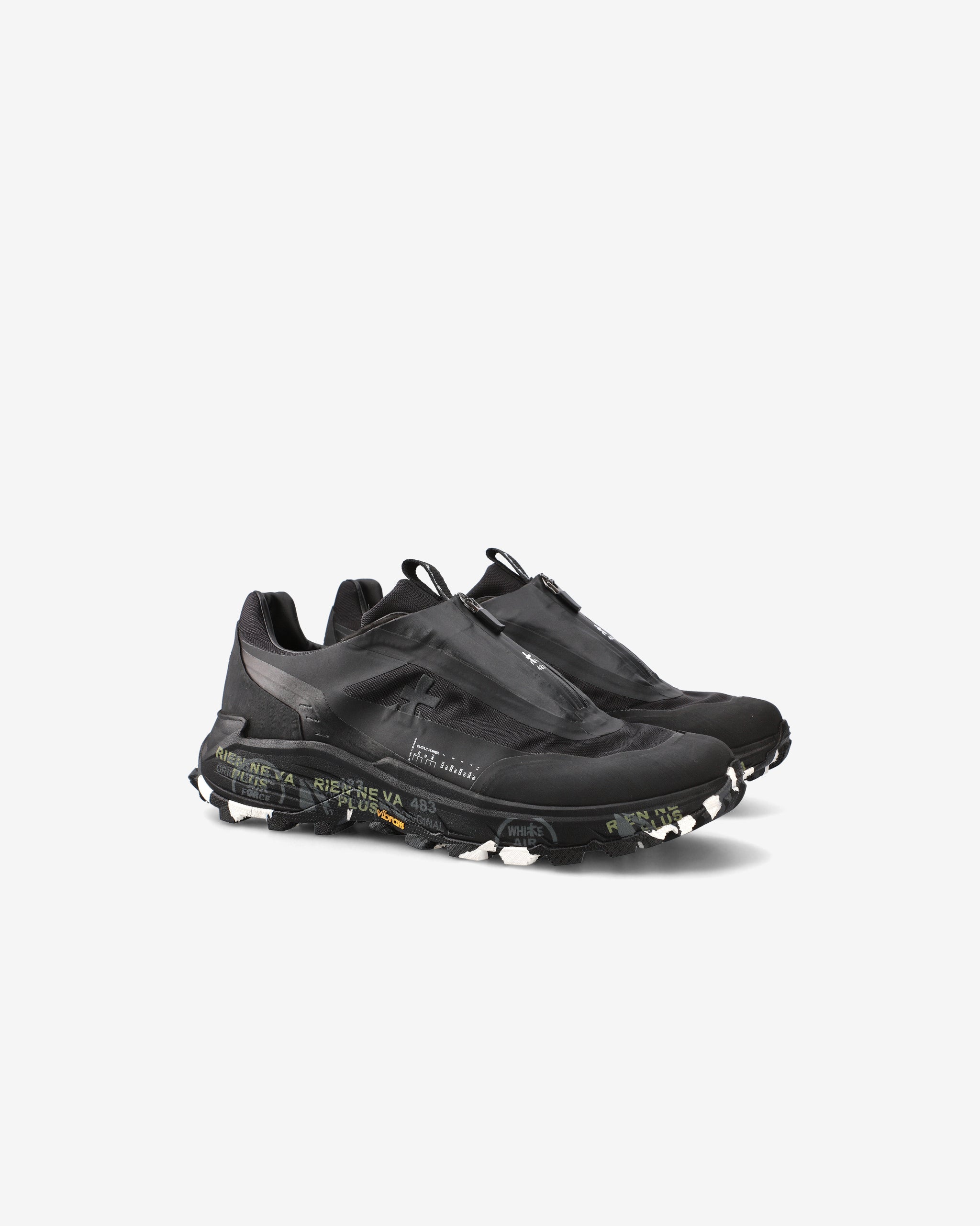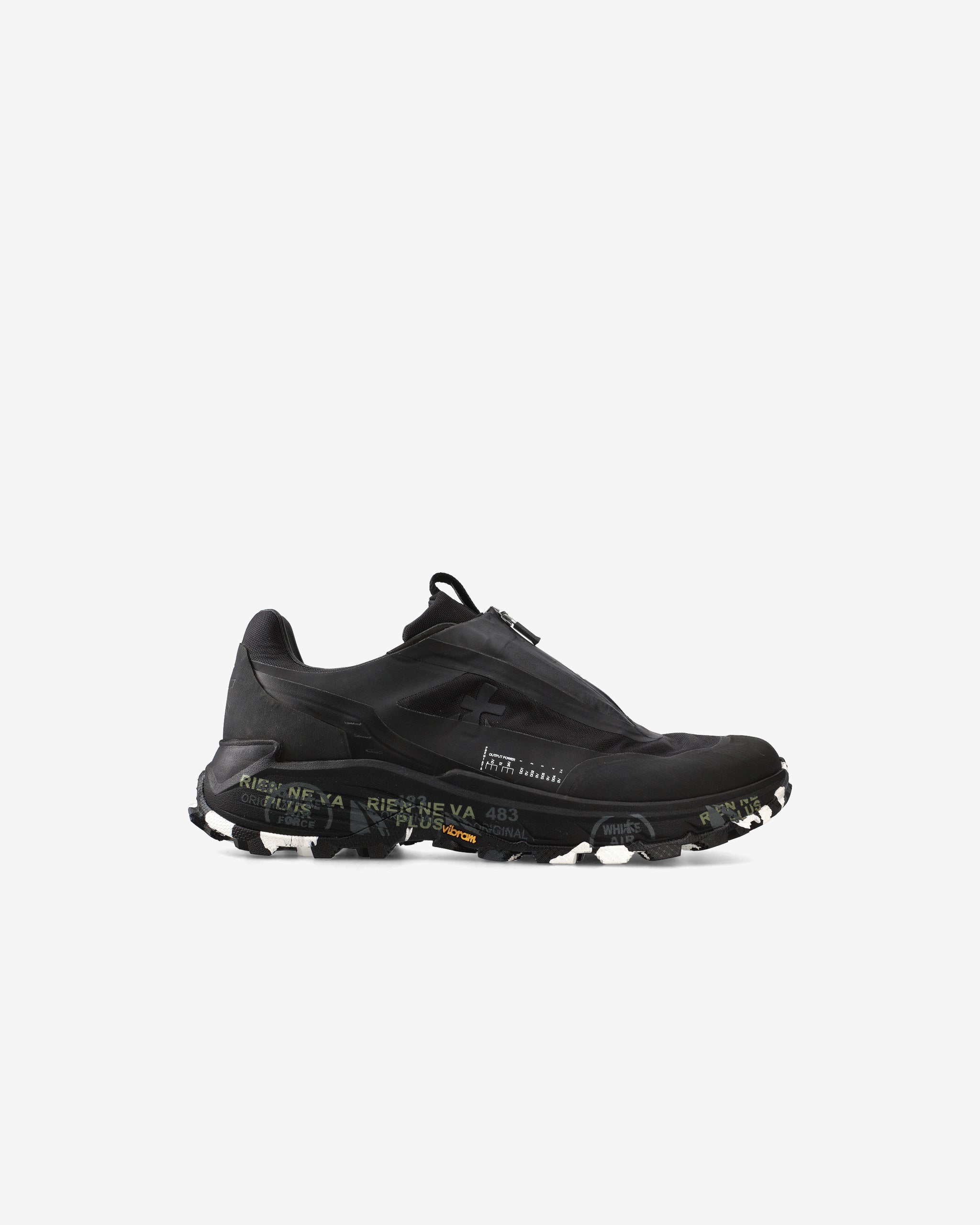 This model of men's sneakers combines urban style with technical features for outdoor use. These shoes feature a zipper closure that covers the normal lacing. Heat-sealed inserts are used in a technical manner, but offer a color detail on the upper. The Vibram bottom is a type of sole renowned for its excellent traction and wear resistance. They are ideal for those who want a fashionable look in the city without sacrificing technical details.