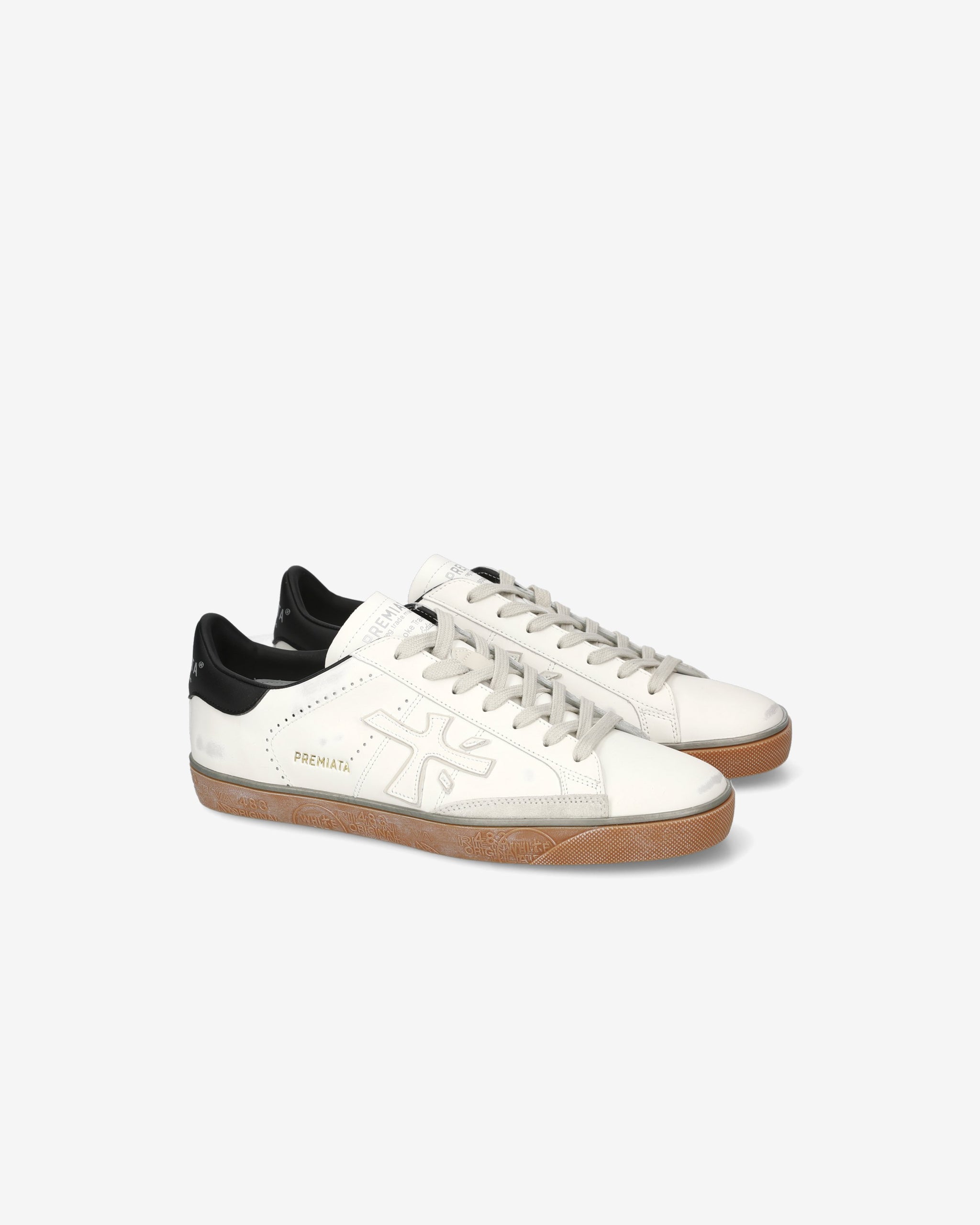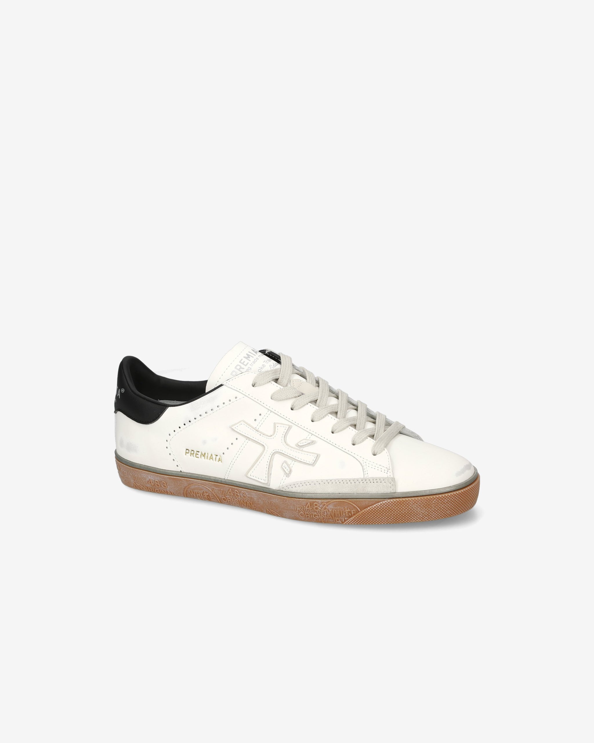 Iconic and Avant-garde. Suitable for a street and youthful look. These leather upper Steven sneakers feature a ton sur ton logo and contrasting heel.