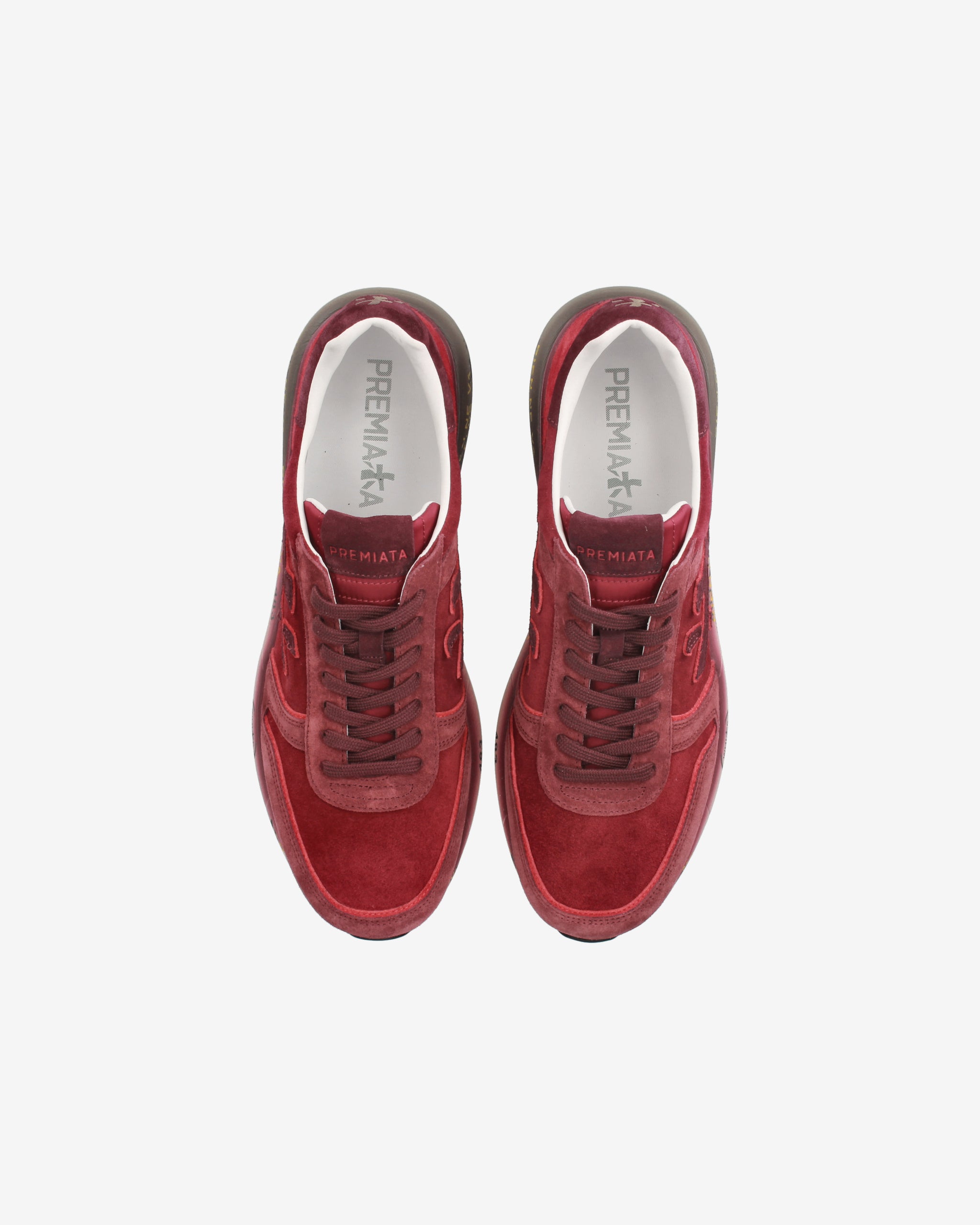 Mick sneakers made of a mix of quality materials and leathers. The shoe is made in the shade of red for a casual style. The iconic silhouette is embellished with the Premiata logo.