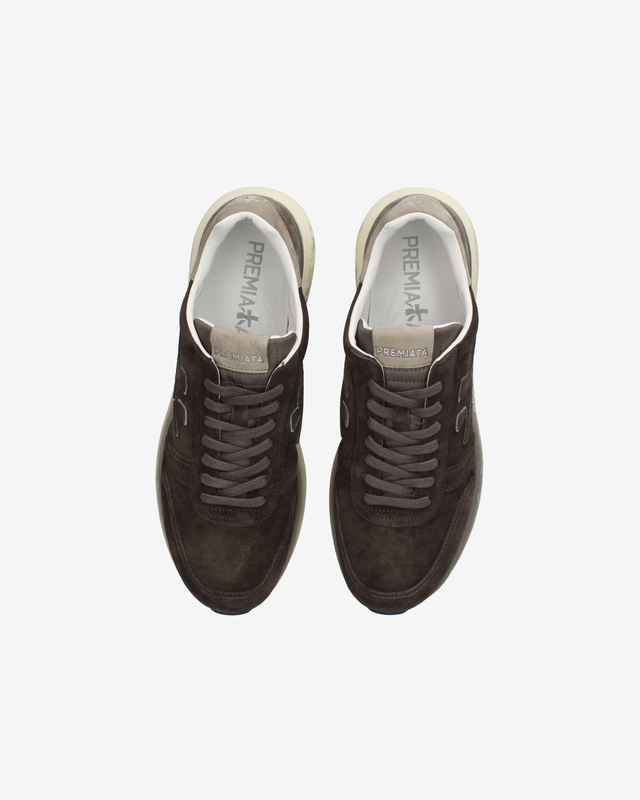 Mick sneakers made of a mix of quality materials and leathers. The shoe is made in the shade of brown for a casual style. The iconic silhouette is embellished with the Premiata logo.