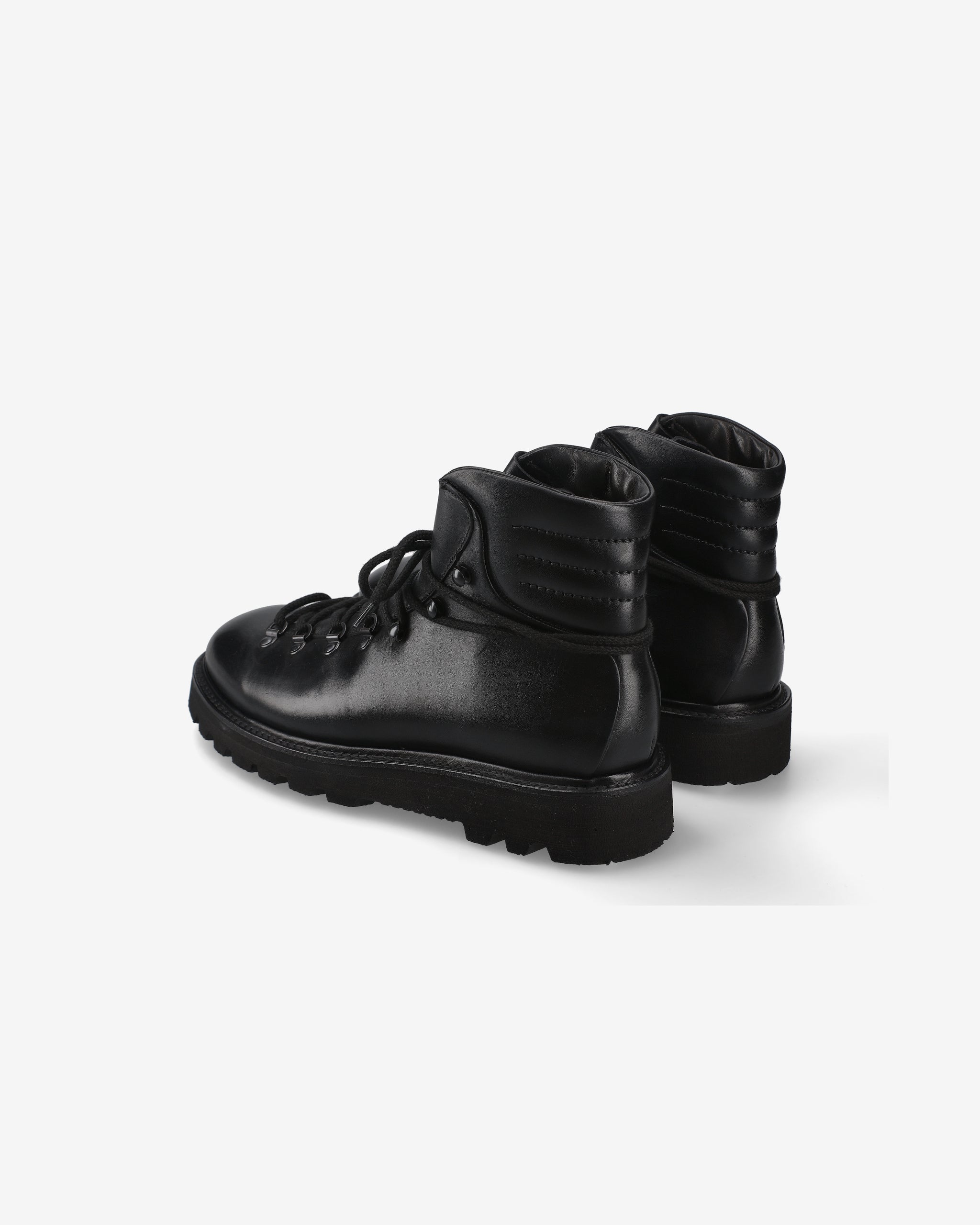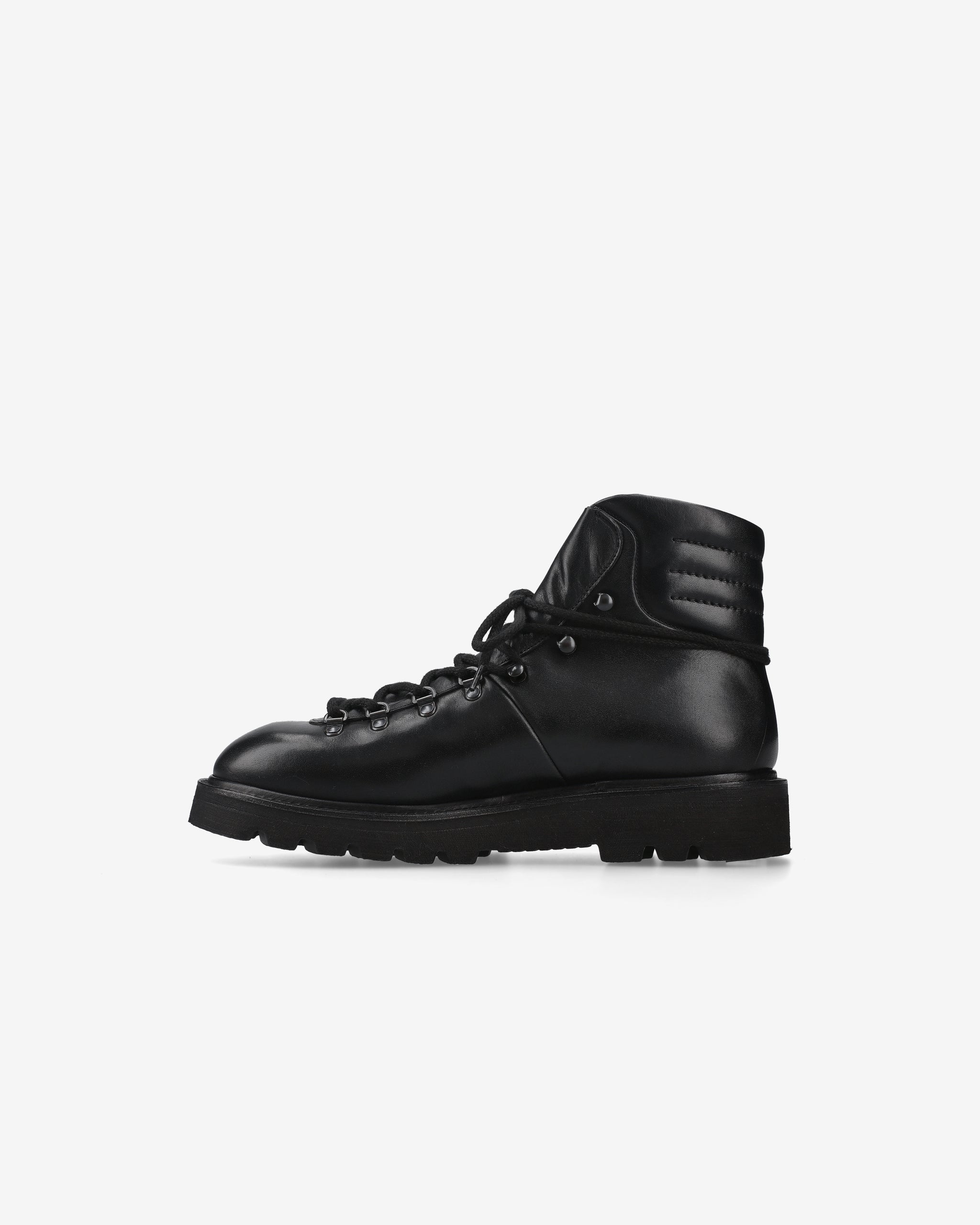 An essential yet personality-packed pedula made of black calf cowhide for a bold, timeless look. The Evalux fusbet ensures prolonged comfort, while waxed cotton laces and a leather insole complete the quality craftsmanship of the product. Goodyear workmanship ensures strength and durability, with a 40mm heel and 140mm high shaft perfect for tackling any terrain in style.