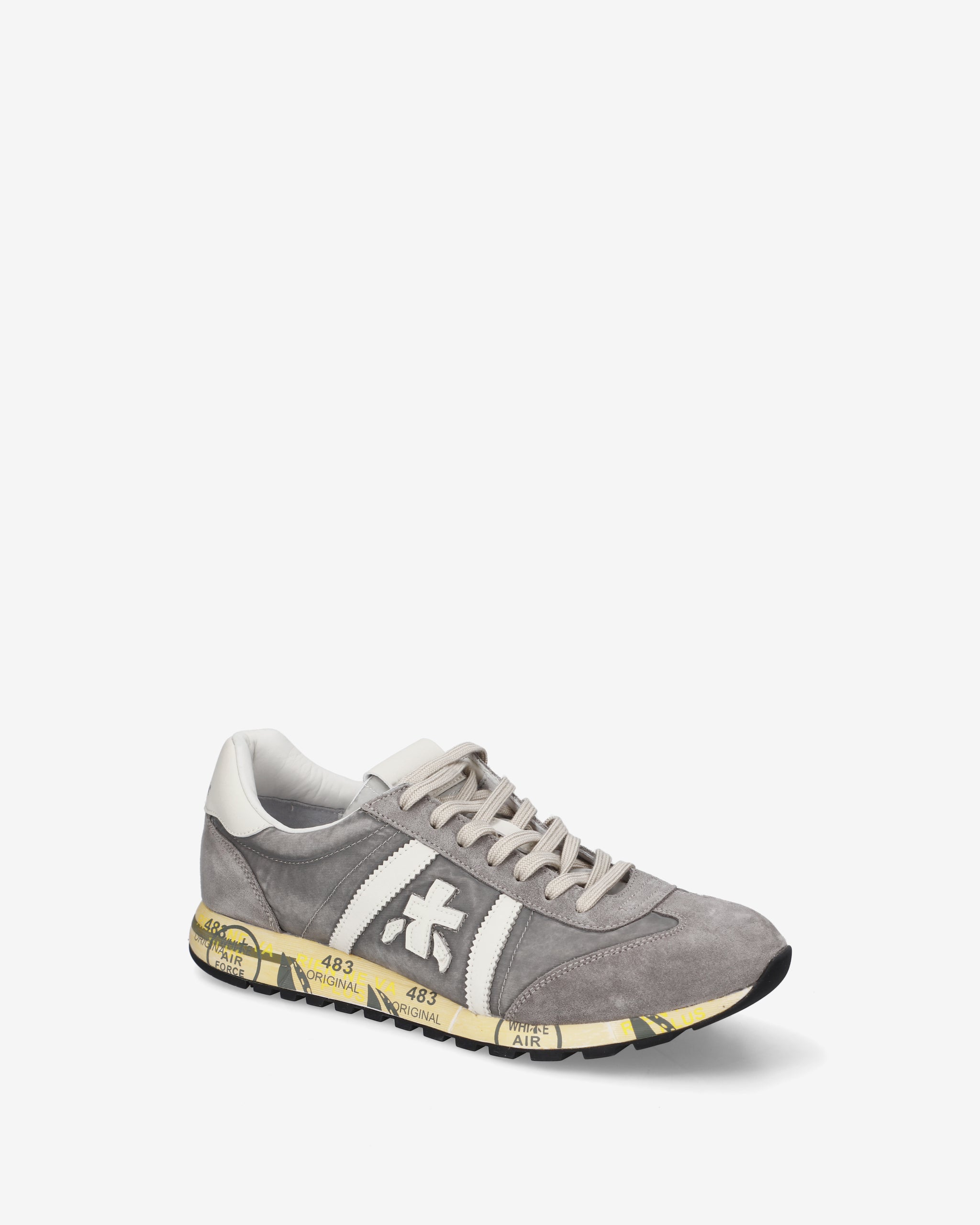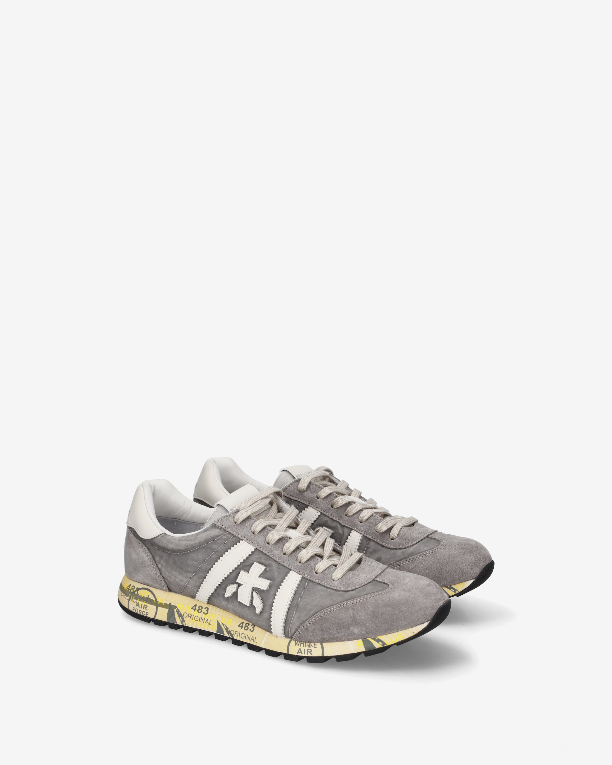 Timeless, iconic, and casual. They embody the Premiata Family manifesto. Their hybrid design and mix of versatile, simple yet sophisticated materials make them a must-have item. The fabric and suede upper, with the Premiata logo on the side, characterizes this emblem.