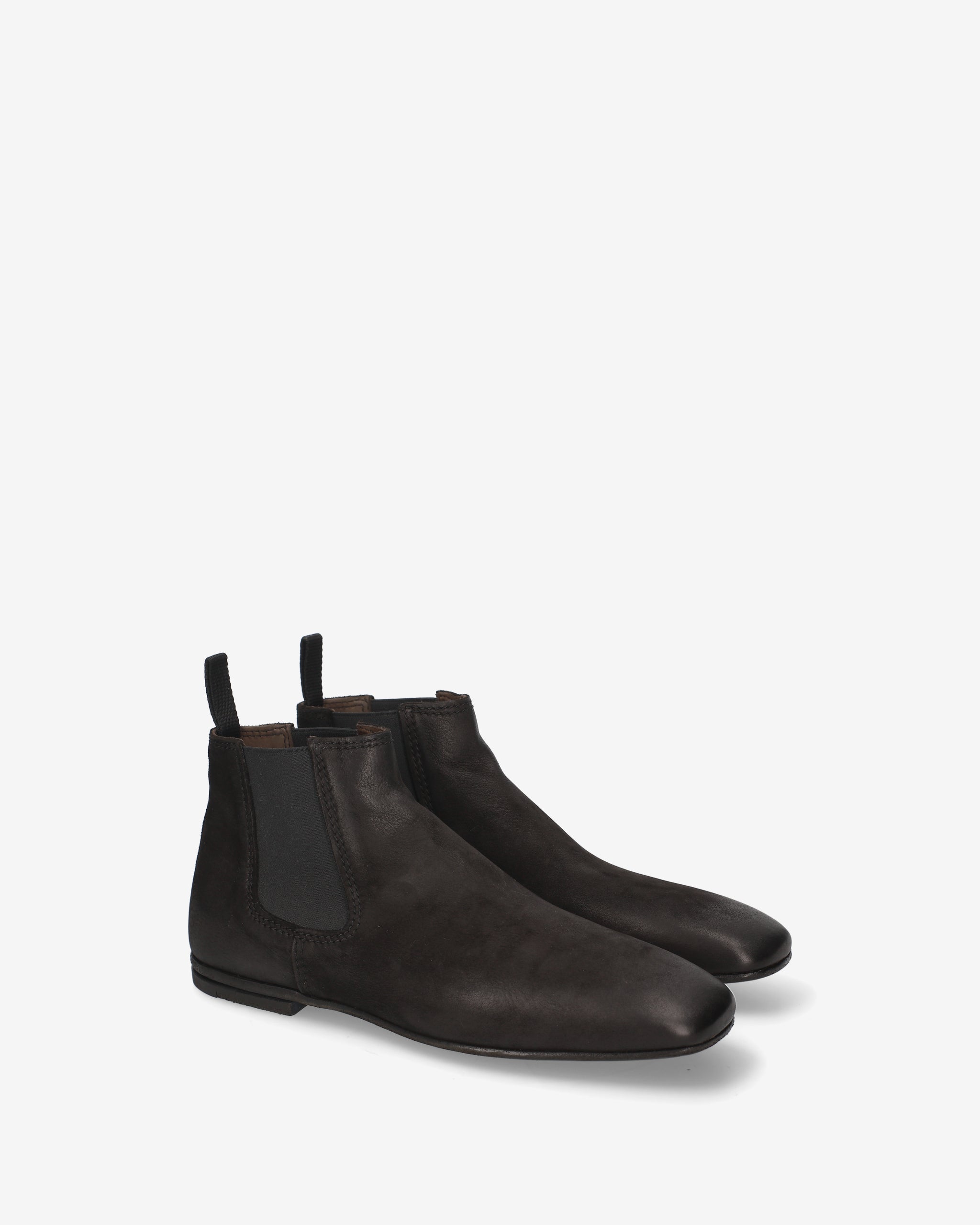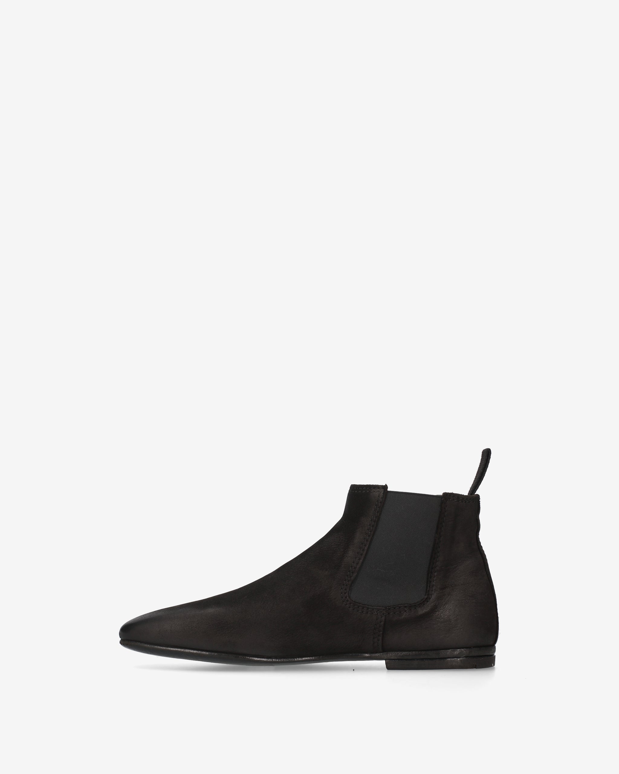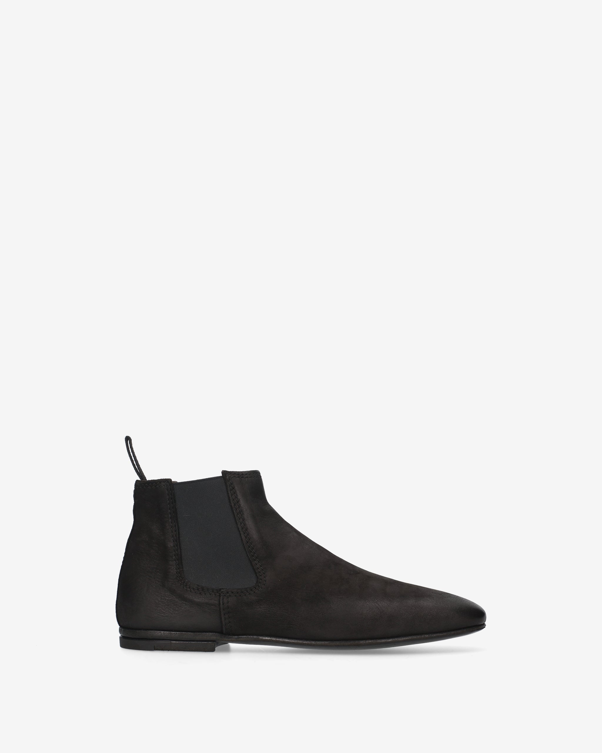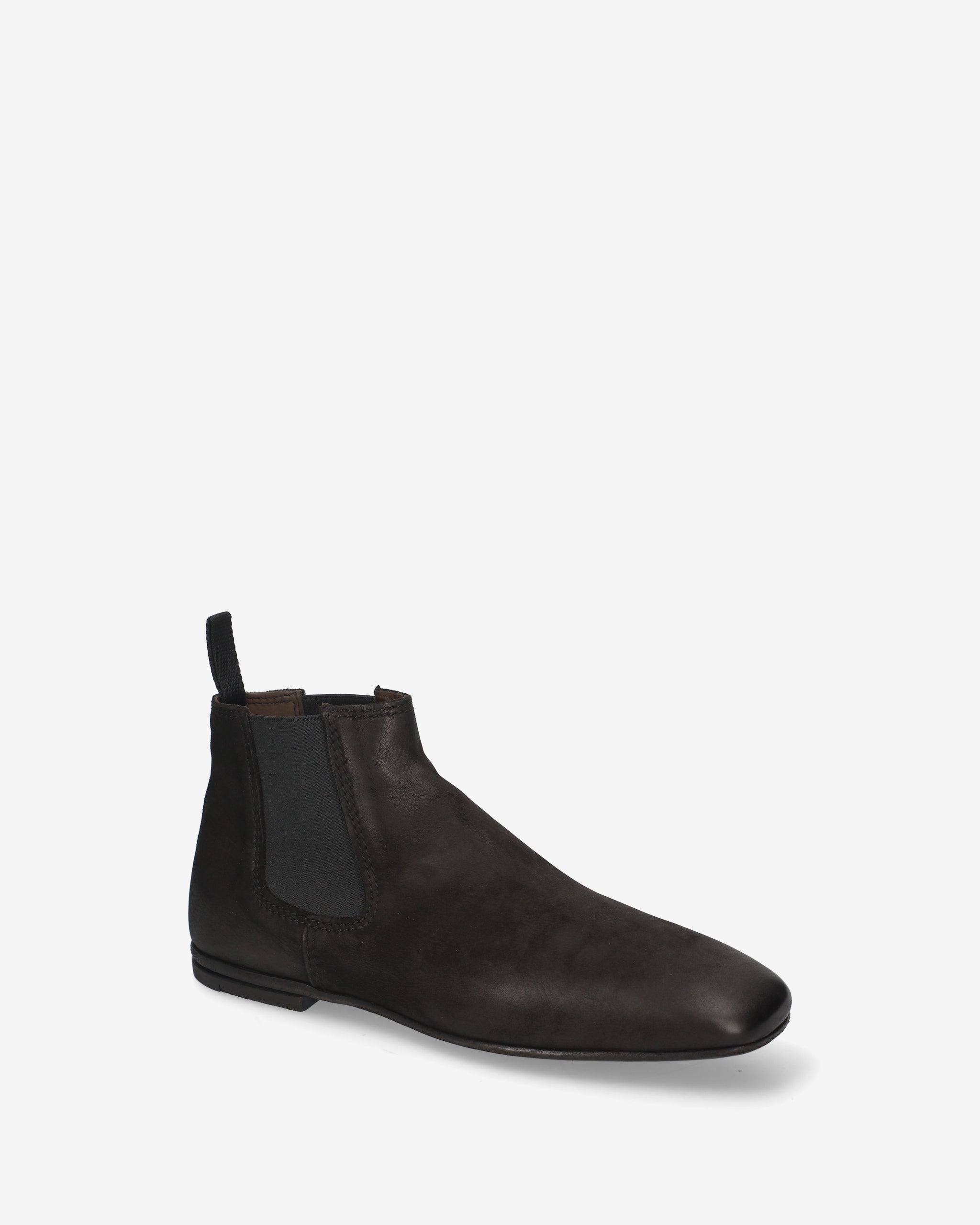 A Chelsea boot with a simple, contemporary design, featuring a tapered silhouette and distinctive leather grain that gives it a bold, artisanal character.