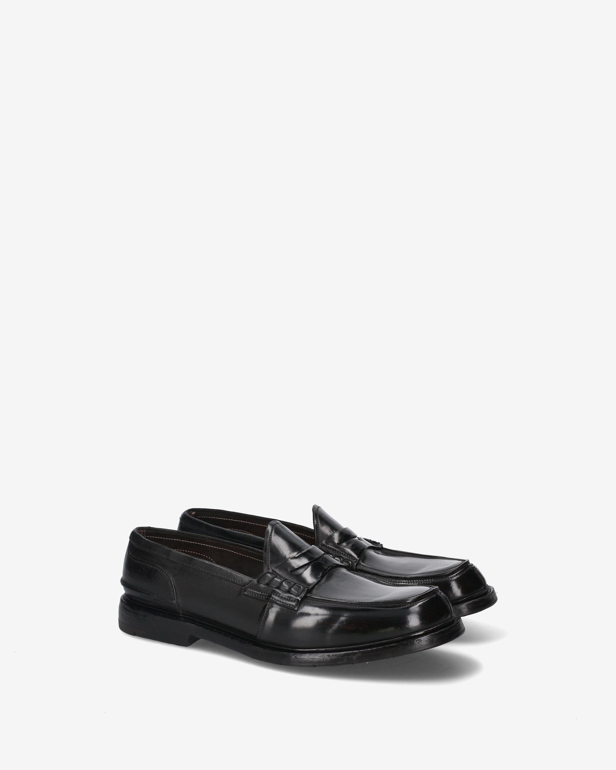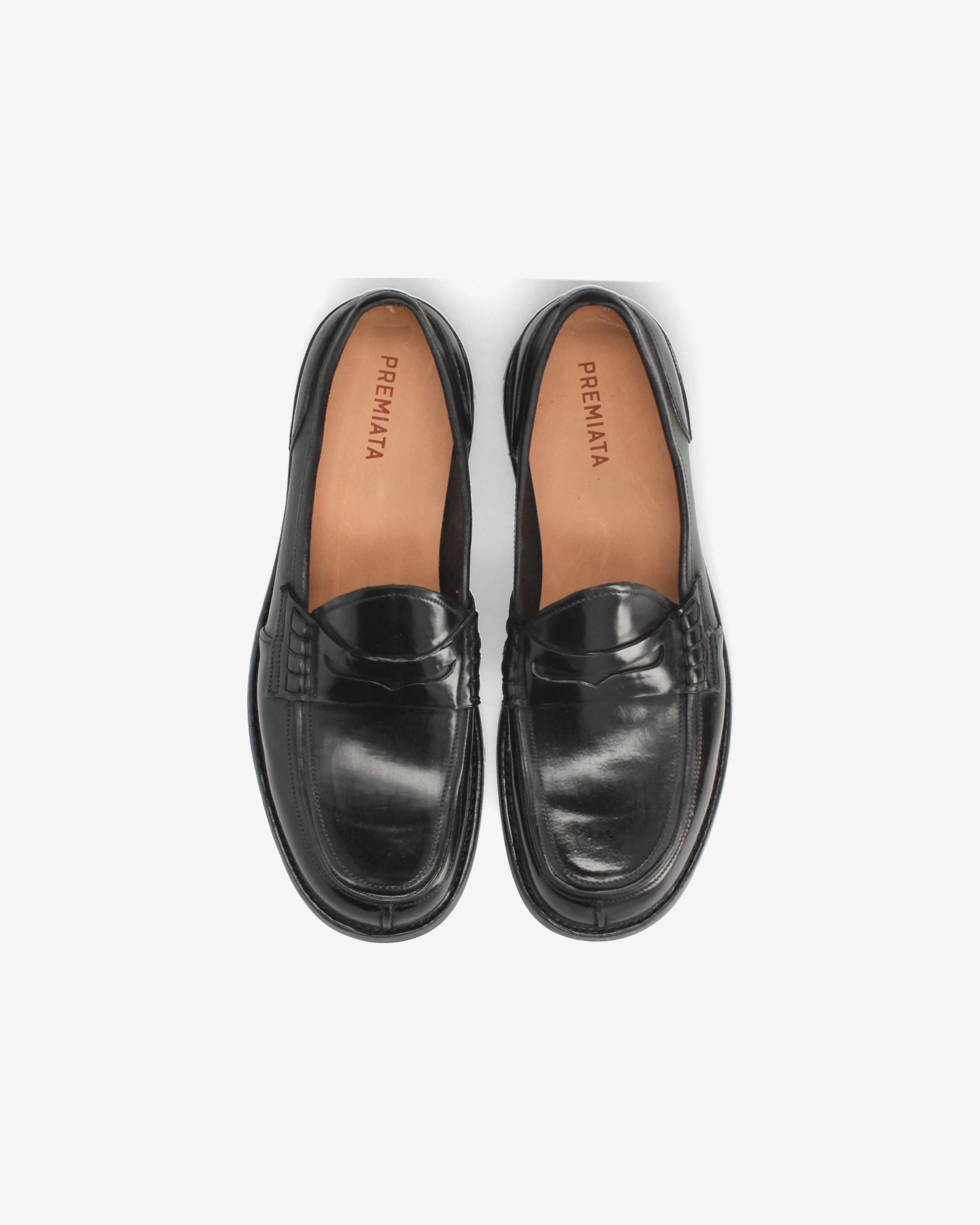 A Penny Loafer with a rigorous structure and bold aesthetic, expressing the highest quality in footwear through complex construction and premium materials. The glossy finish and artisanal details make it a distinctive piece in any formal wardrobe.