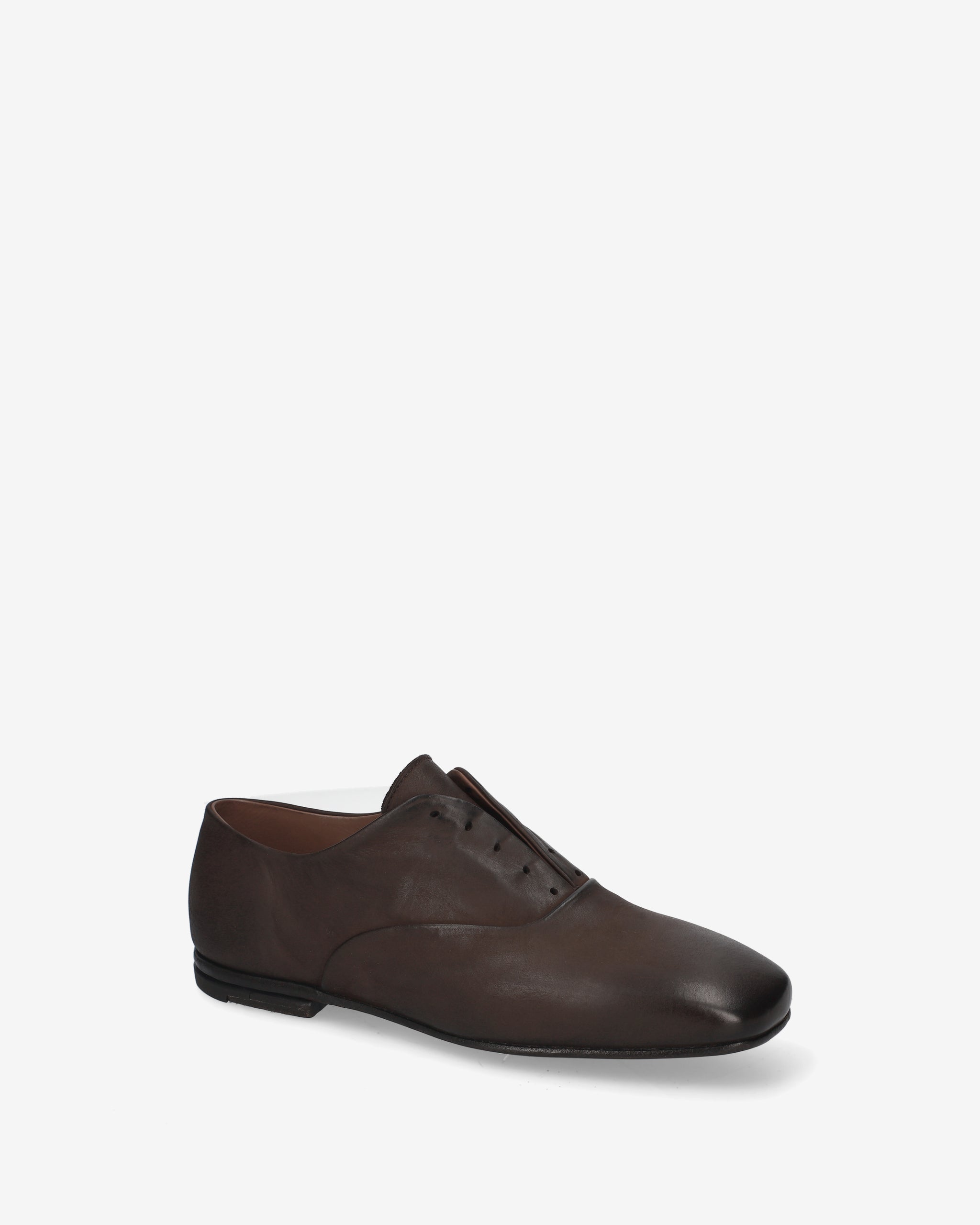 A lace-up shoe with an ultra-minimalist and deconstructed design, reinterpreting the classic Oxford in a contemporary and almost ethereal key. The clean lines and soft materials make it a choice of pure style and comfort.