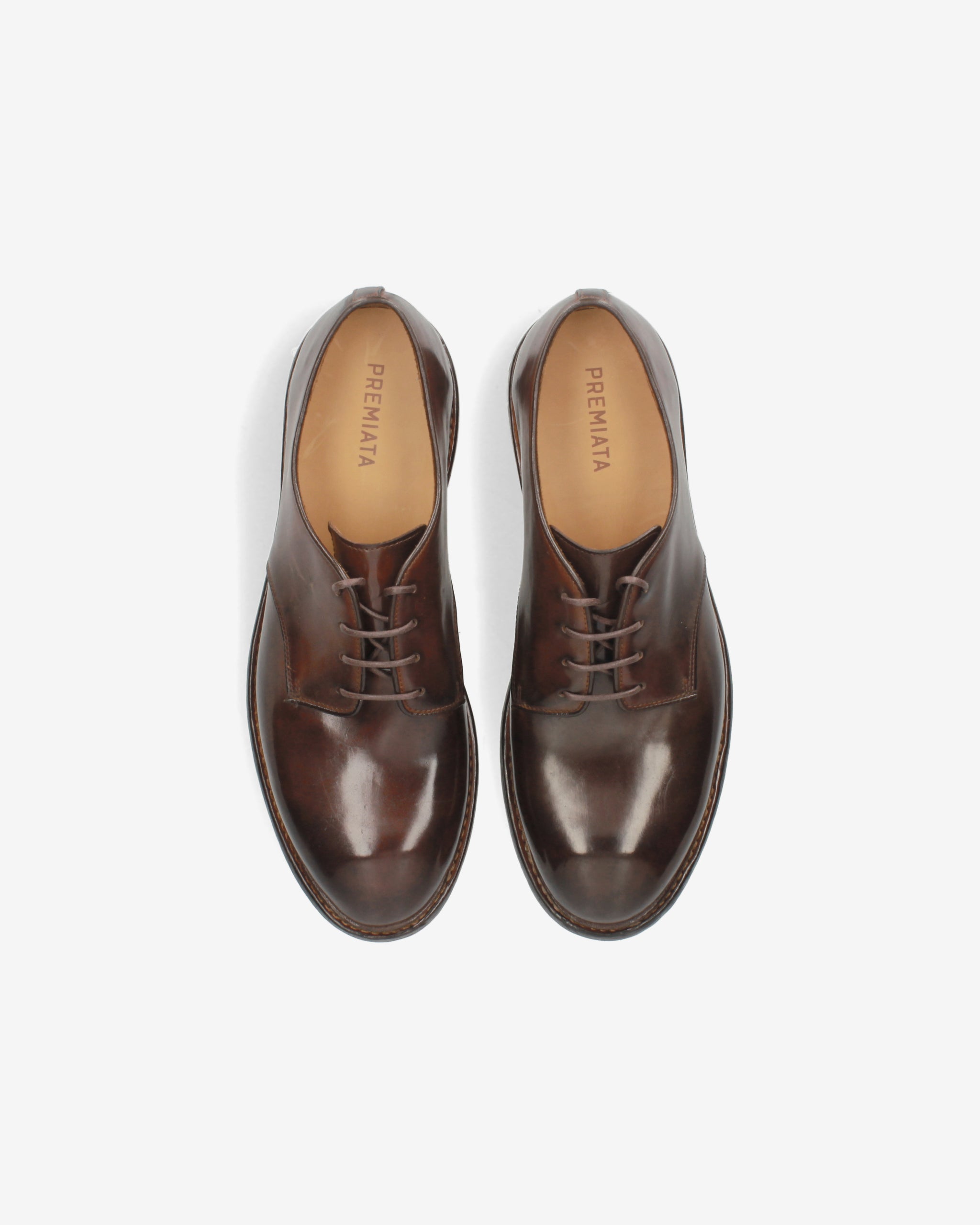 Classic Derby lace-up shoe, characterized by a vintage look and sturdy construction. The washed finish gives the leather a unique depth of color.