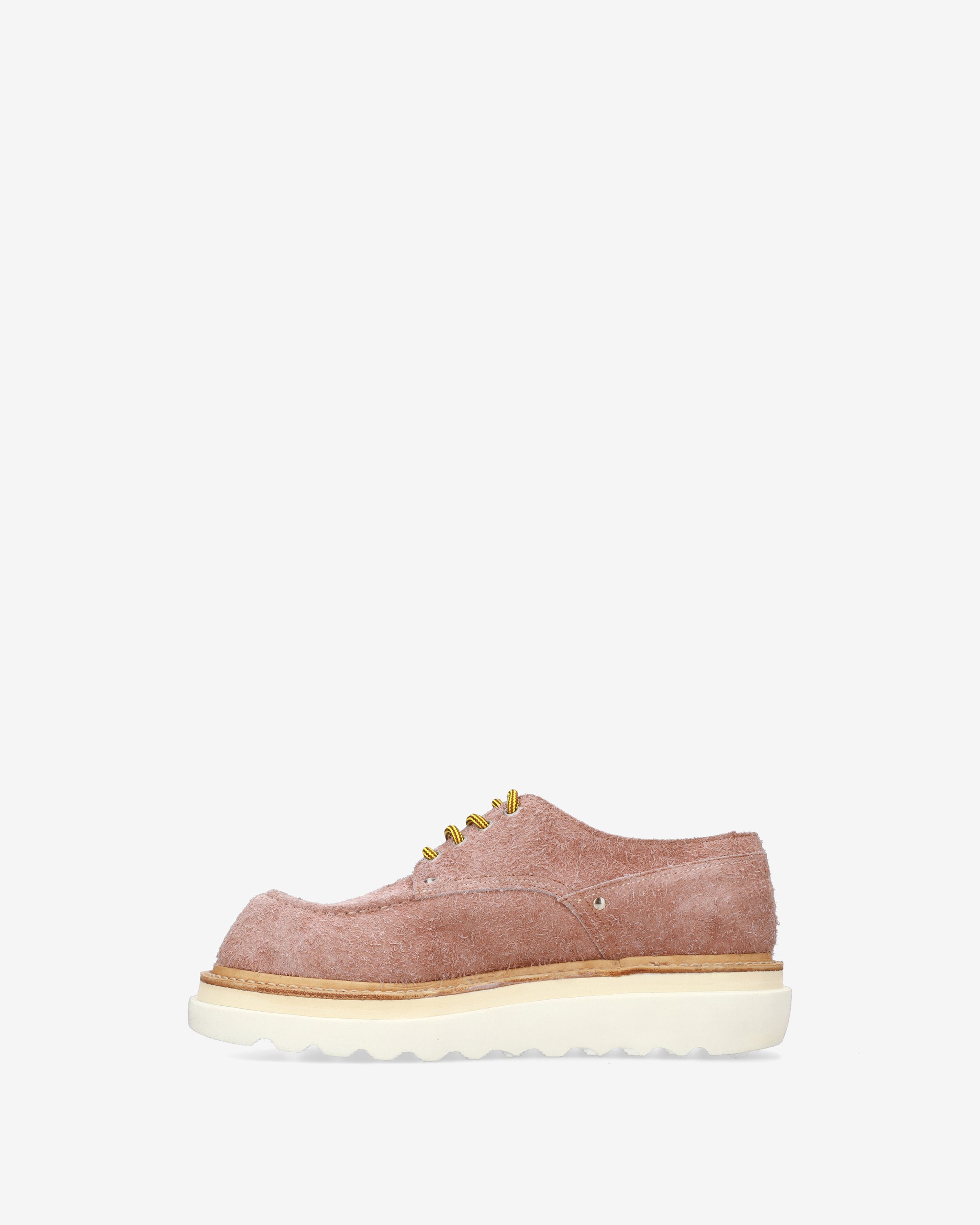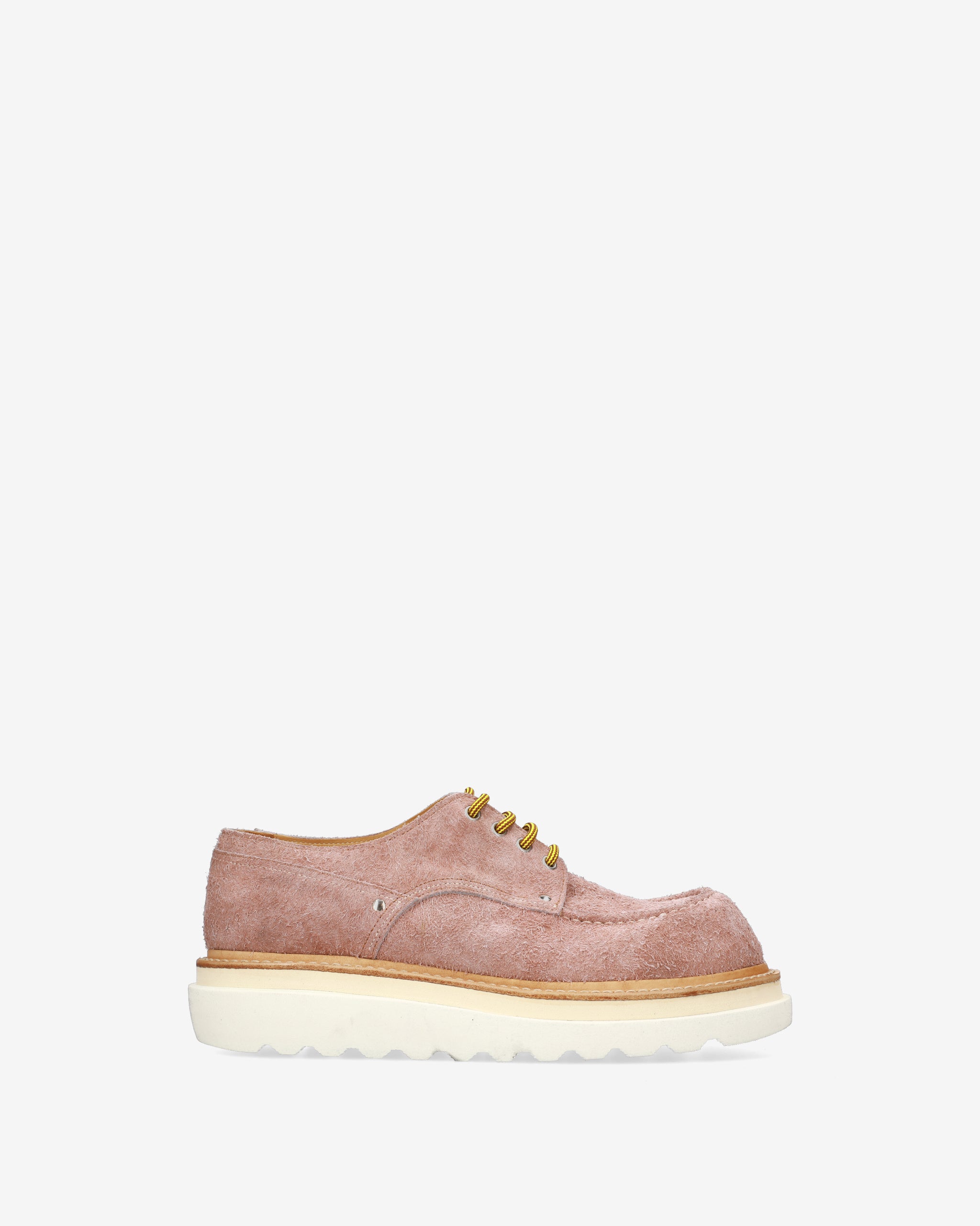 - Cream-colored rubber sole with lugged profile