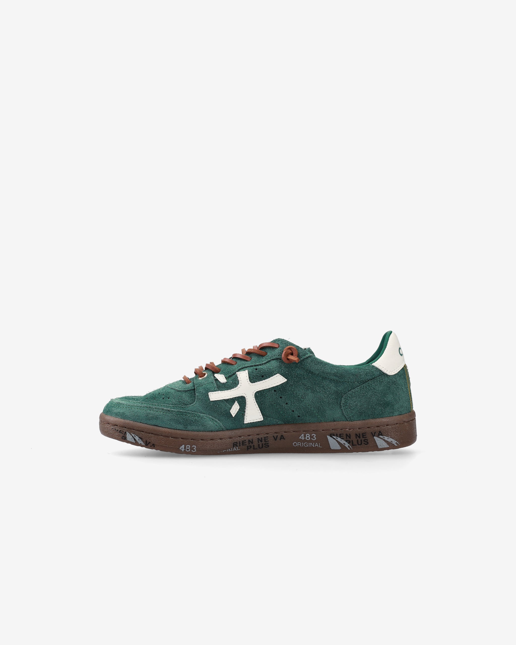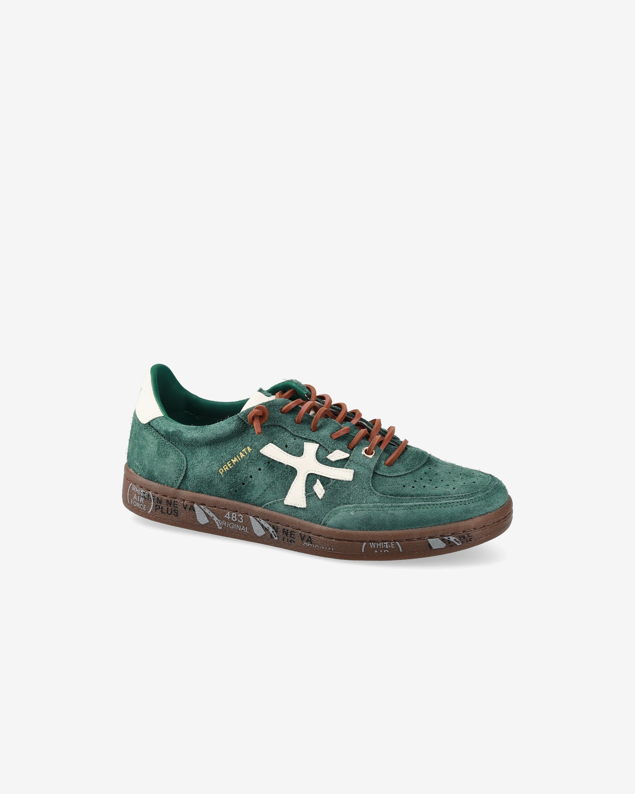 Vintage aesthetic and contemporary spirit. This sneaker combines essential lines and bold details, such as the oversized side logo and the Premiata custom sole. A model designed for those who want to stand out, without sacrificing everyday versatility.