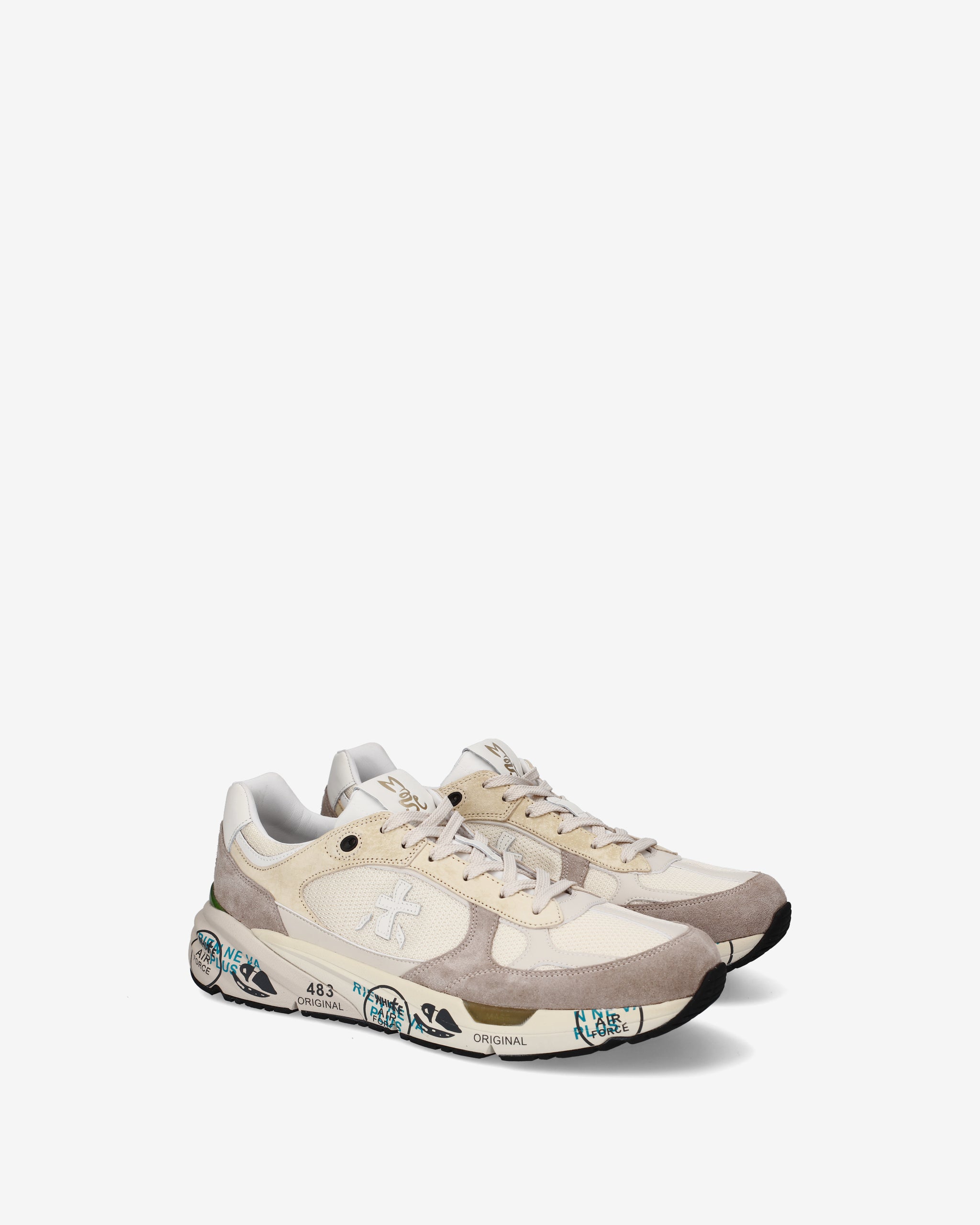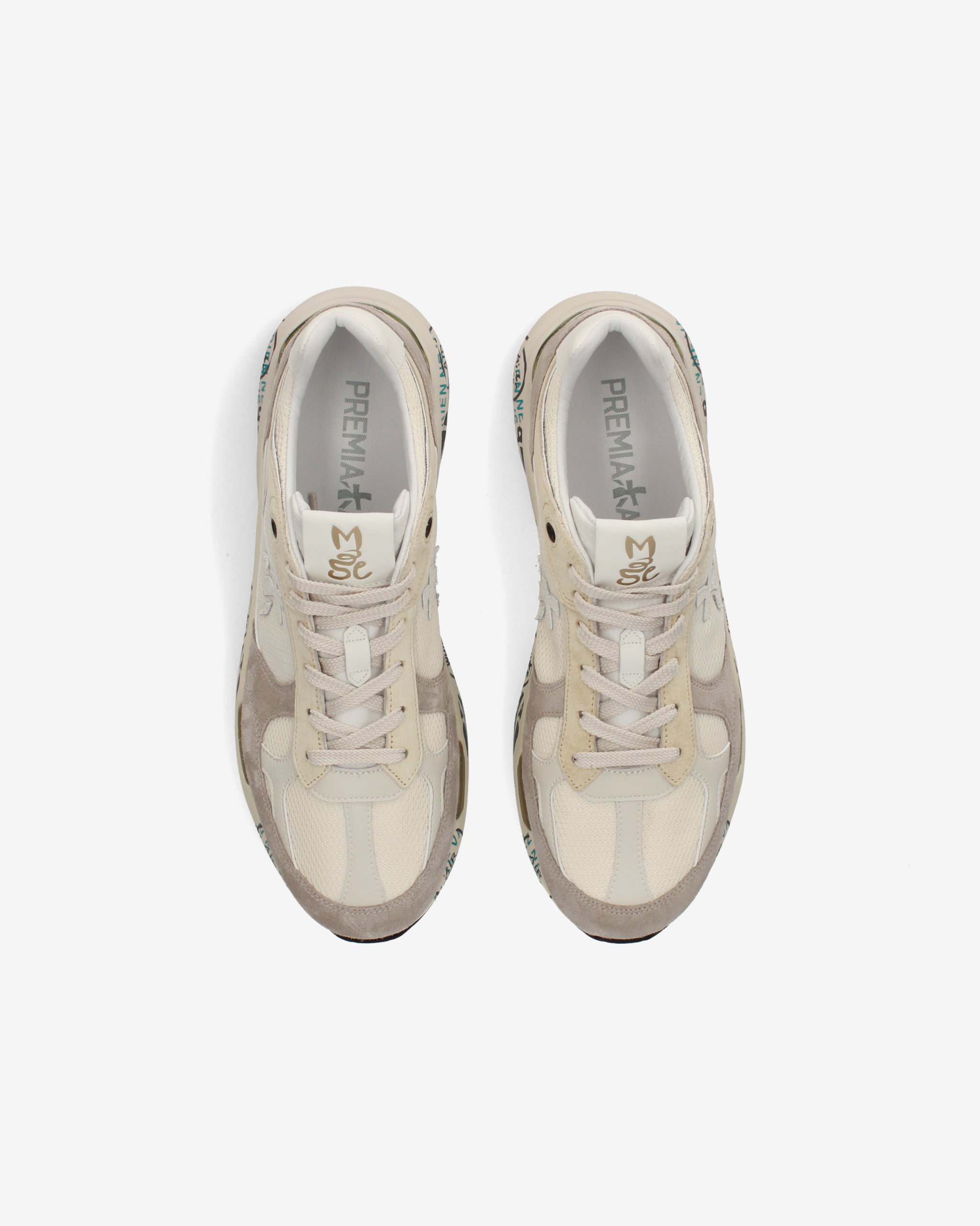 Echoing the mood of the nineties, they combine a modern silhouette with fine materials and lively details. Faithful to the Premiata design, they retain all the key elements: the logo decorating the sides, the MASE lettering on the label, and contrasting treatments and details that enhance their visibility.