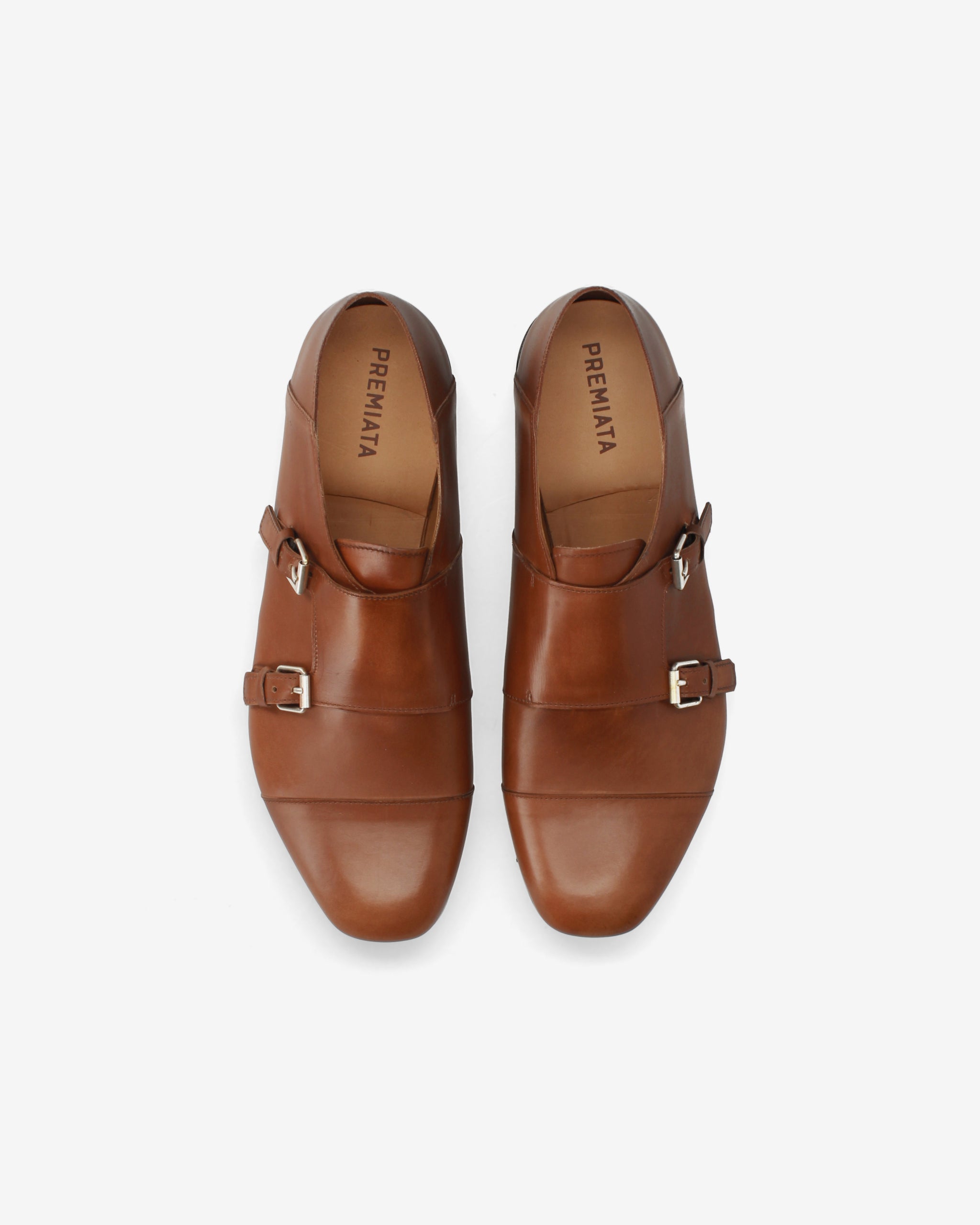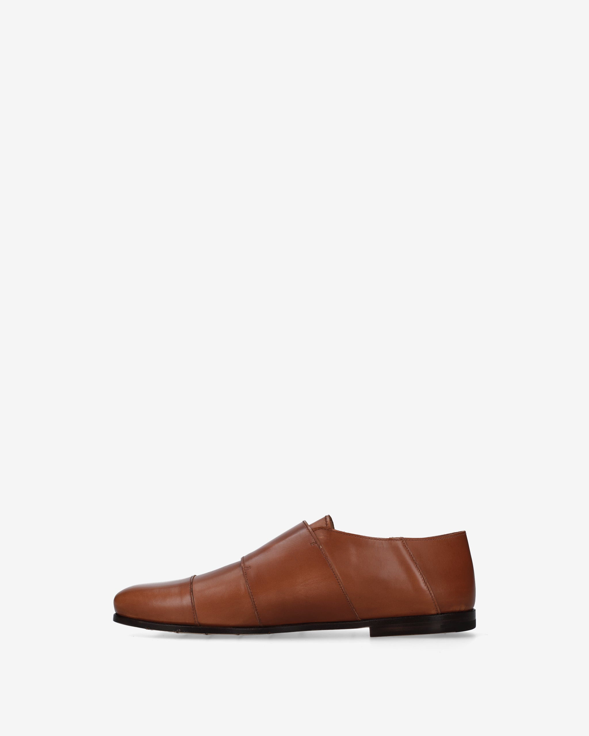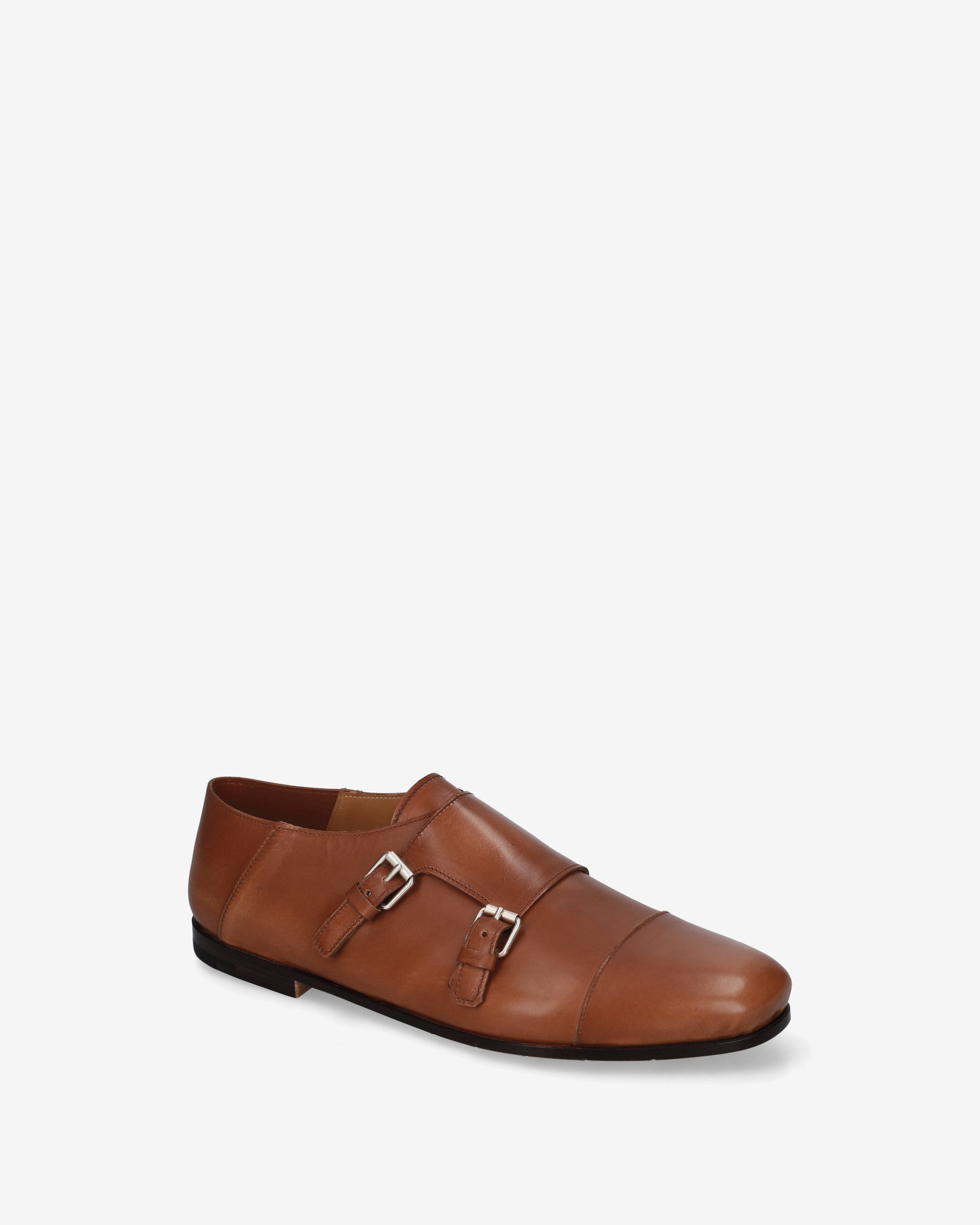 A refined take on the classic double-buckle shoe, featuring a sleek silhouette and a warm shade that highlights its fine craftsmanship