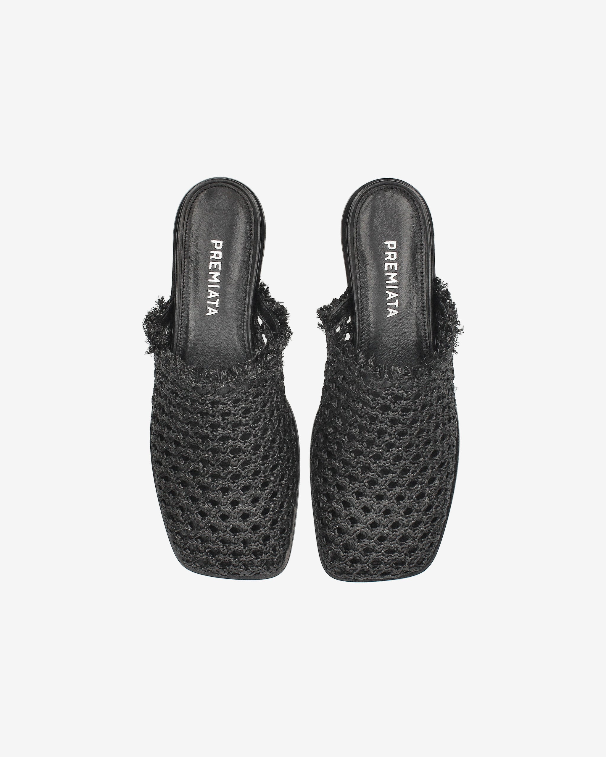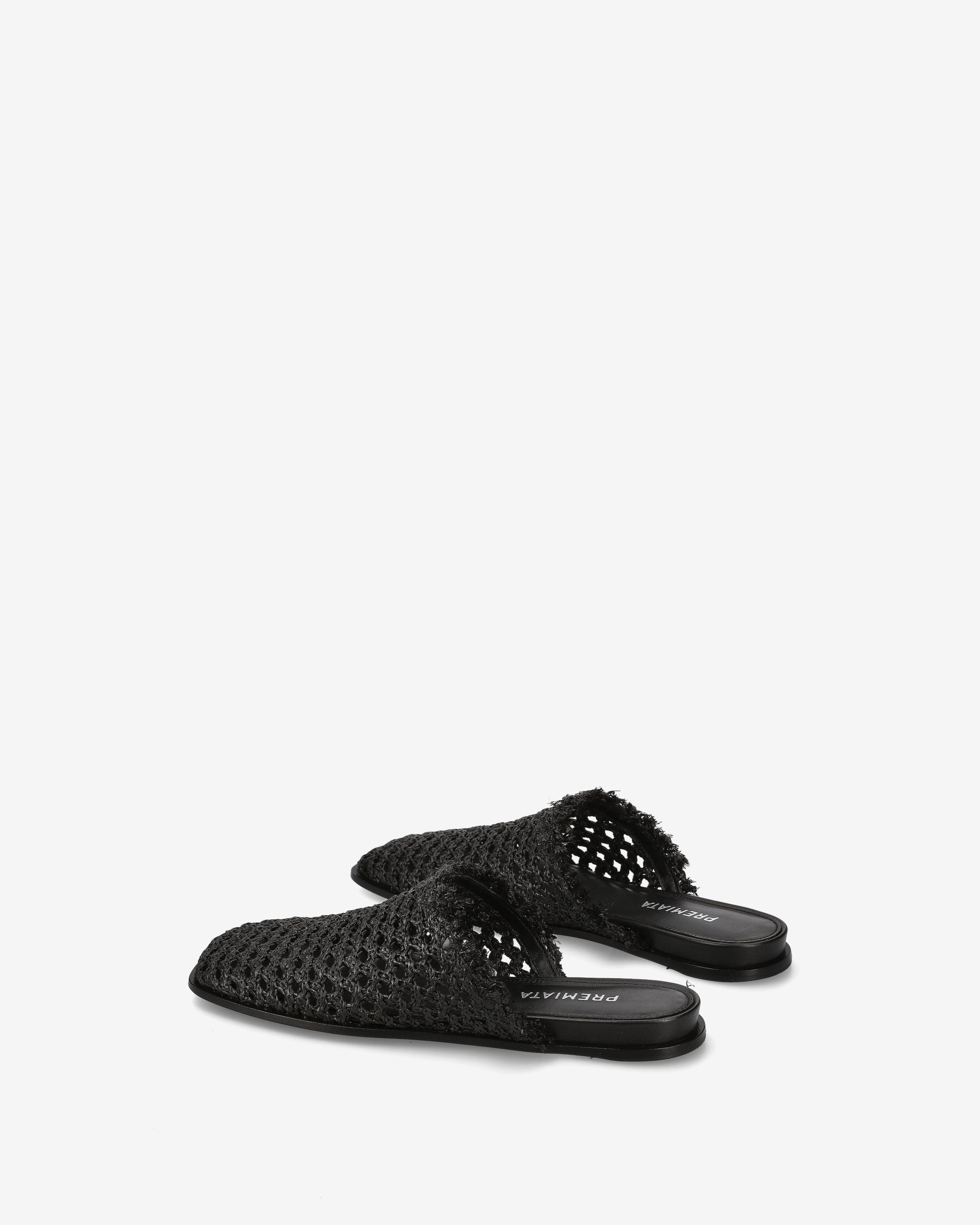 Elegant and versatile sabot sandals made from perforated woven raffia, with a raw-cut neckline finished with fringed details. The internal wedge has a flat square shape, ensuring comfort and style for every occasion.