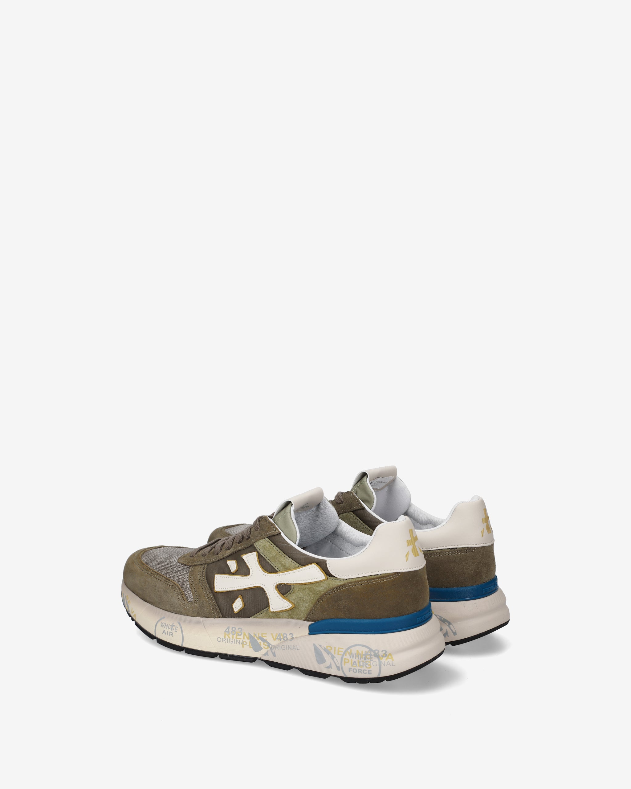 Un mix di materiali e pellami di qualità. La scarpa è realizzata nelle tonalità del verde per uno stile casual. L'iconica silhouette è arrichita dal logo Premiata.