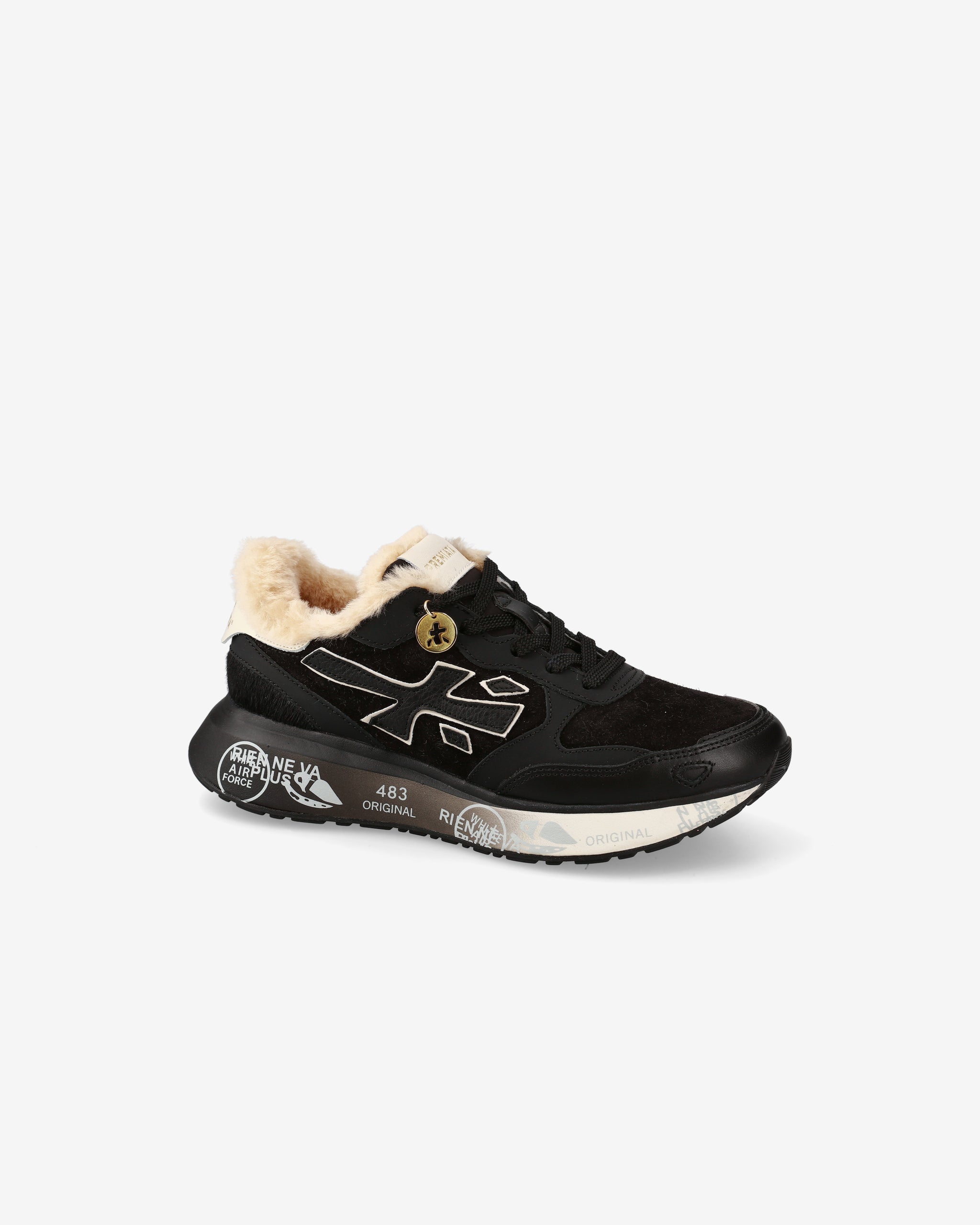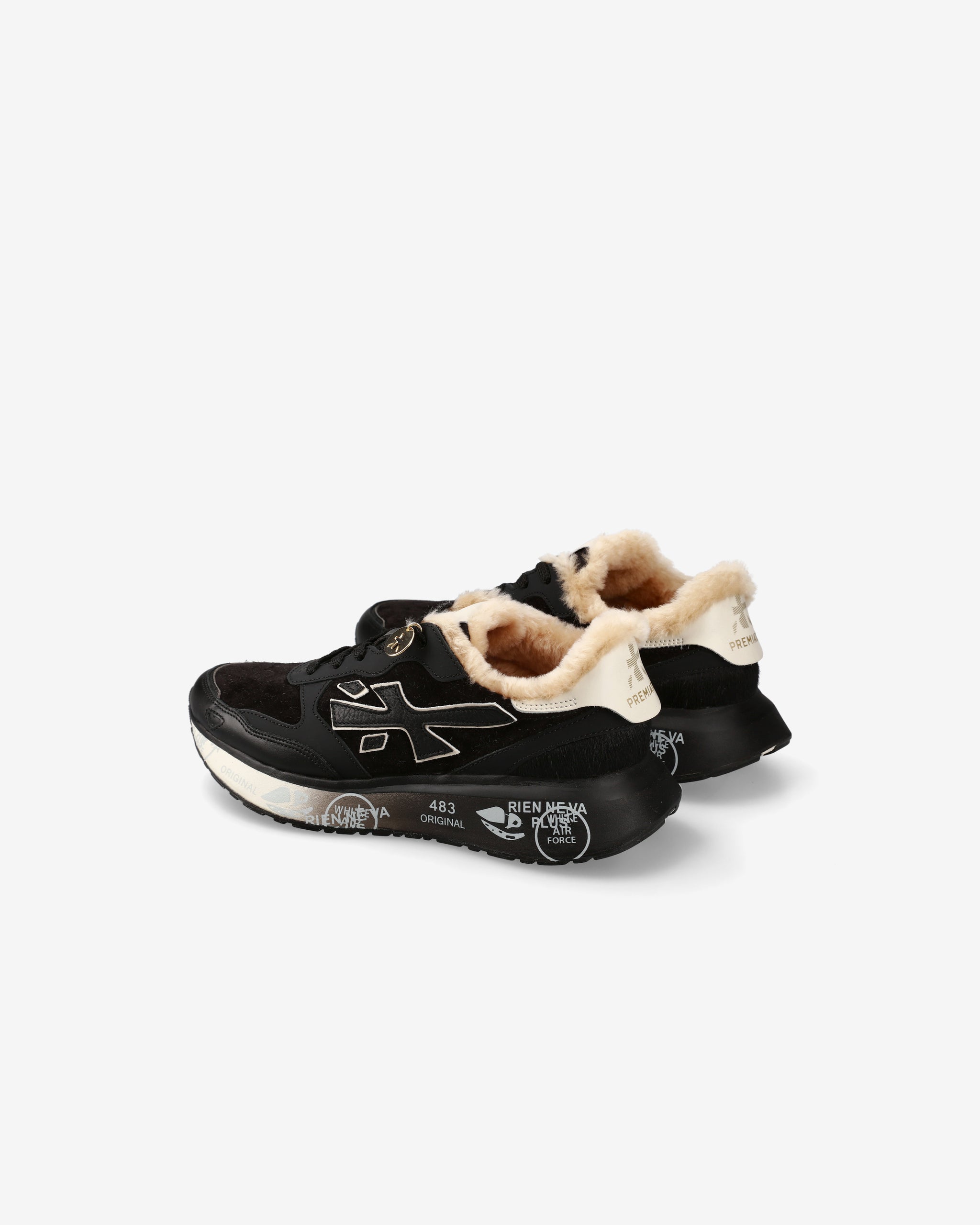 La suola, arricchita dagli iconici dettagli stile Premiata, esalta l'identità urban e casual-chic.