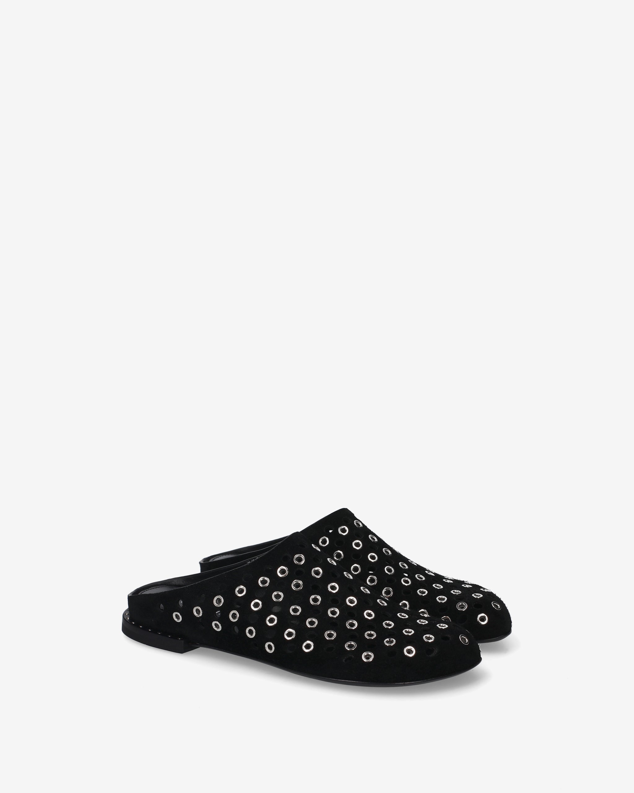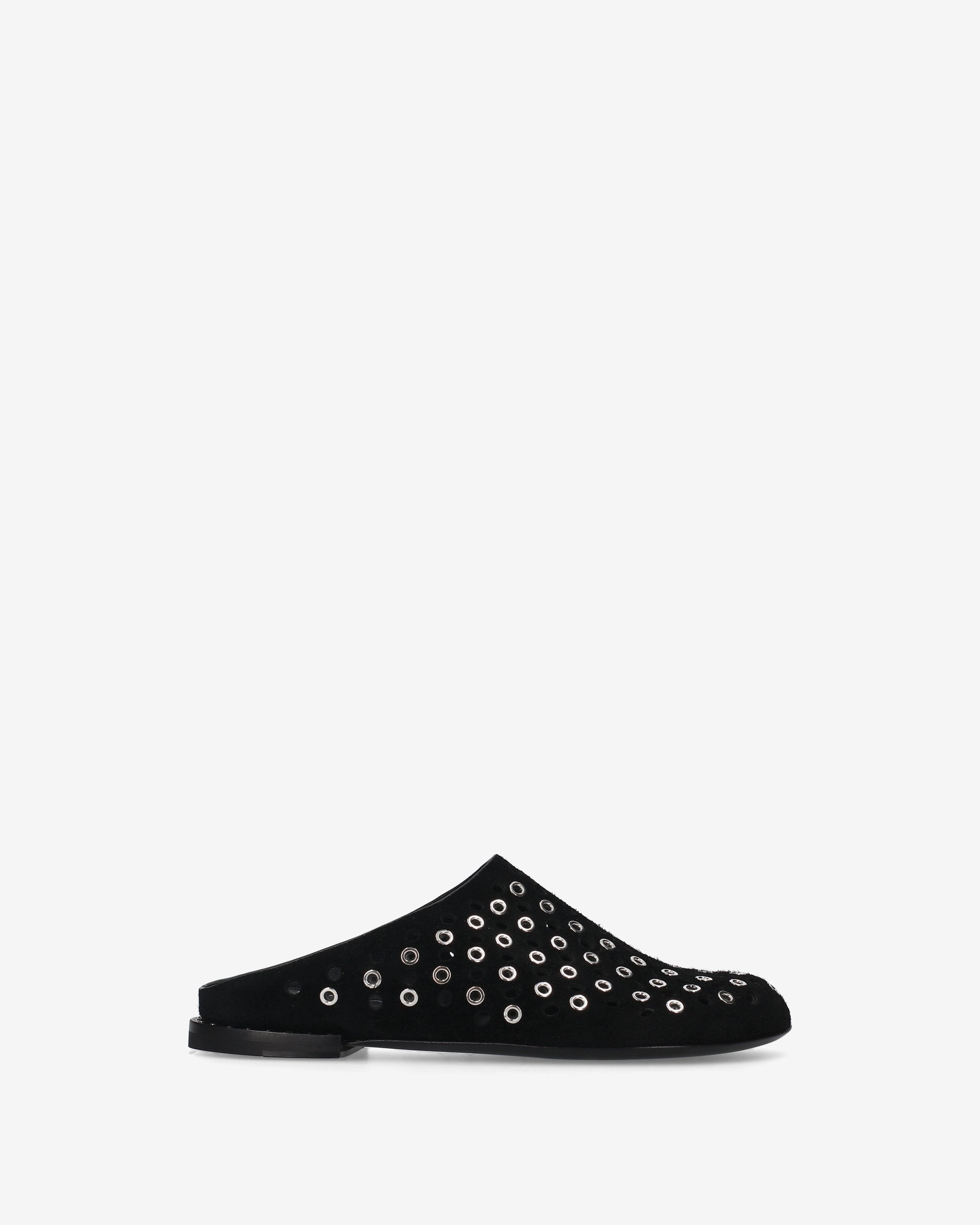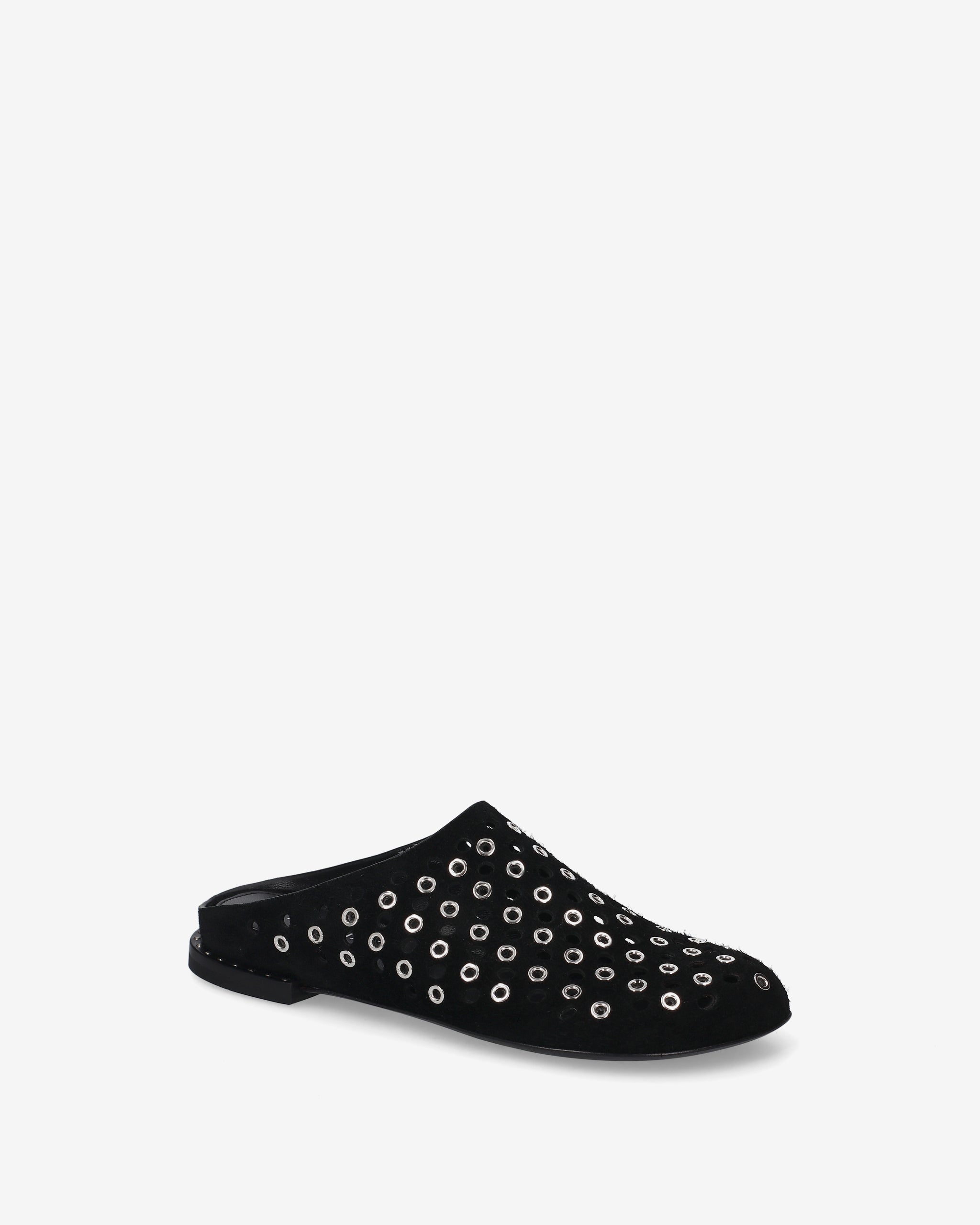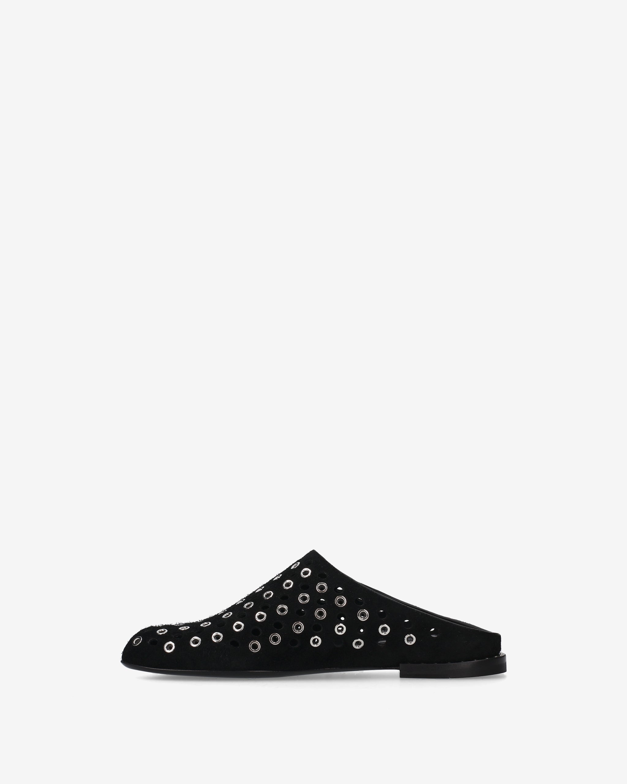 Questo sabot flat unisce l'estetica artigianale della pelle scamosciata a un design traforato dal carattere deciso. La struttura essenziale lo rendono un accessorio versatile per look ricercati.