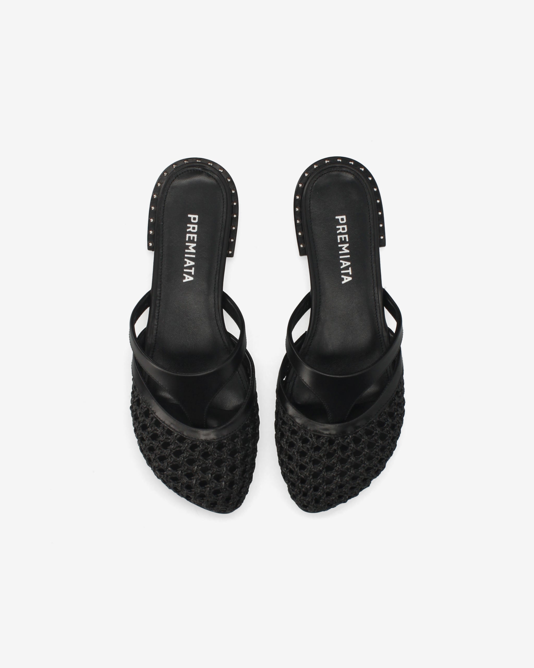 Questo sabot flat combina l'eleganza materica dell'intreccio con un design geometrico a listini. Una calzatura leggera e sofisticata, perfetta per arricchire outfit con un tocco di artigianalità contemporanea.
