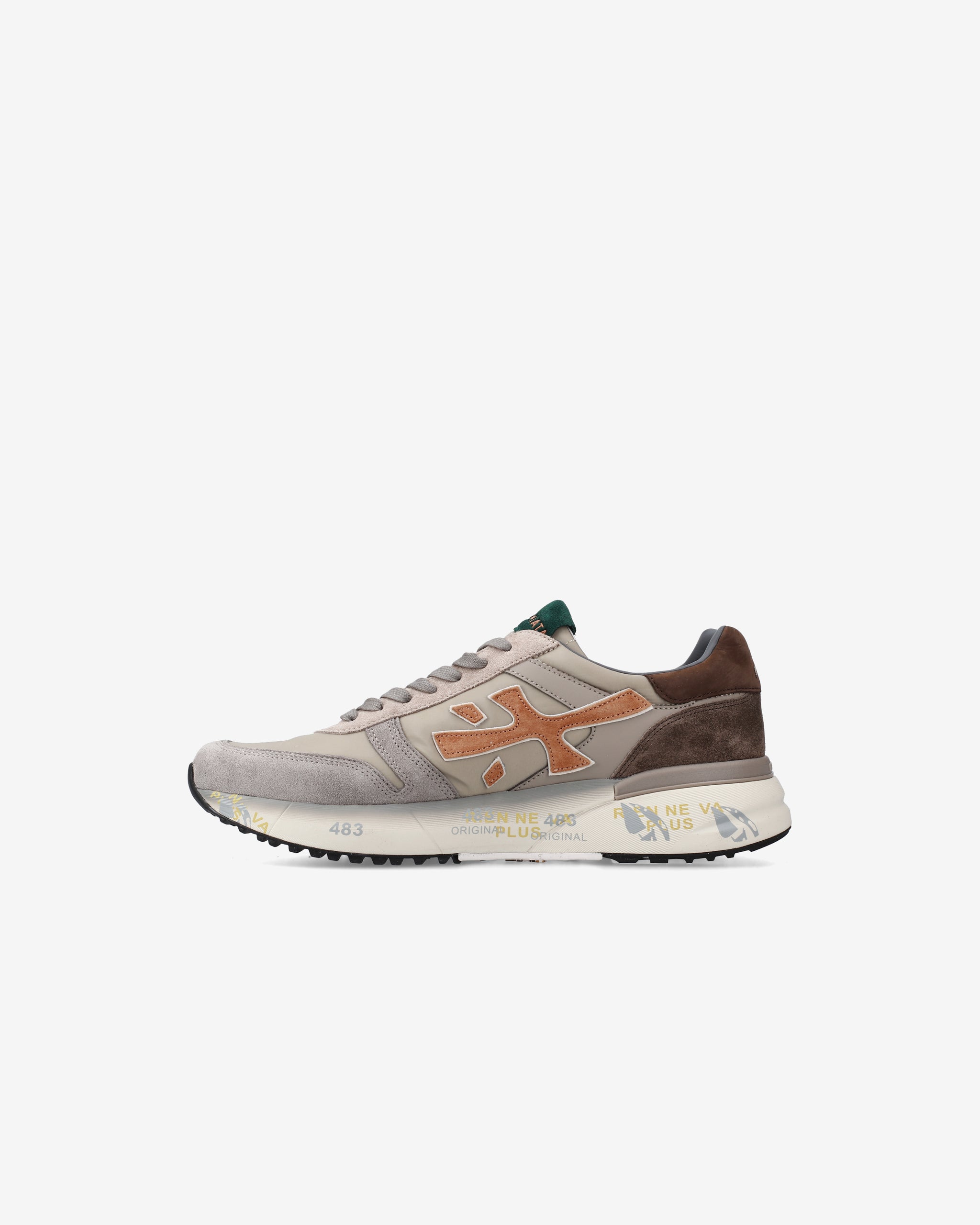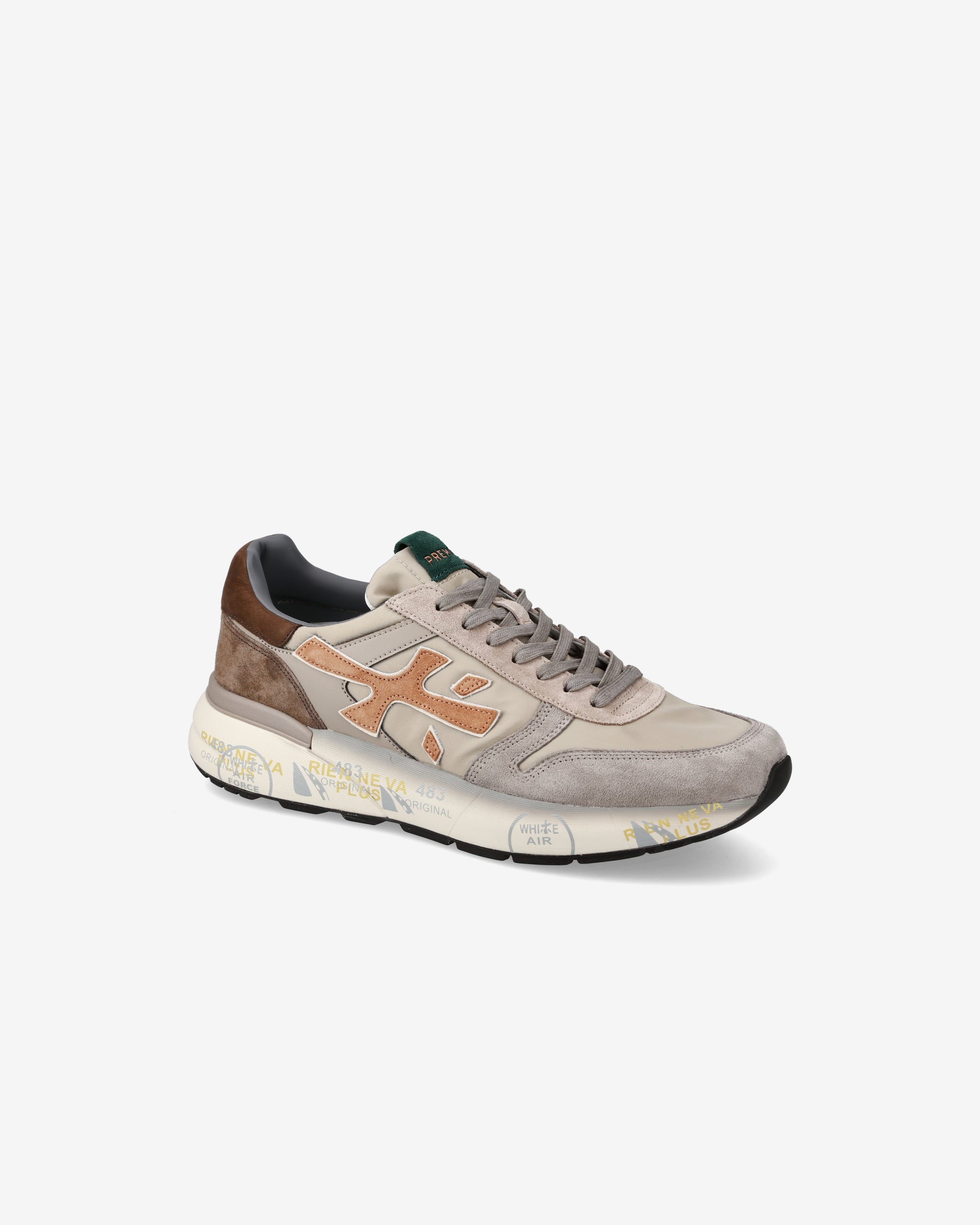 Sneakers Mick in mix di materiali e pellami di qualità. La scarpa è realizzata nella tonalità del taupe per uno stile casual. L'iconica silhouette è arricchita dal logo Premiata.