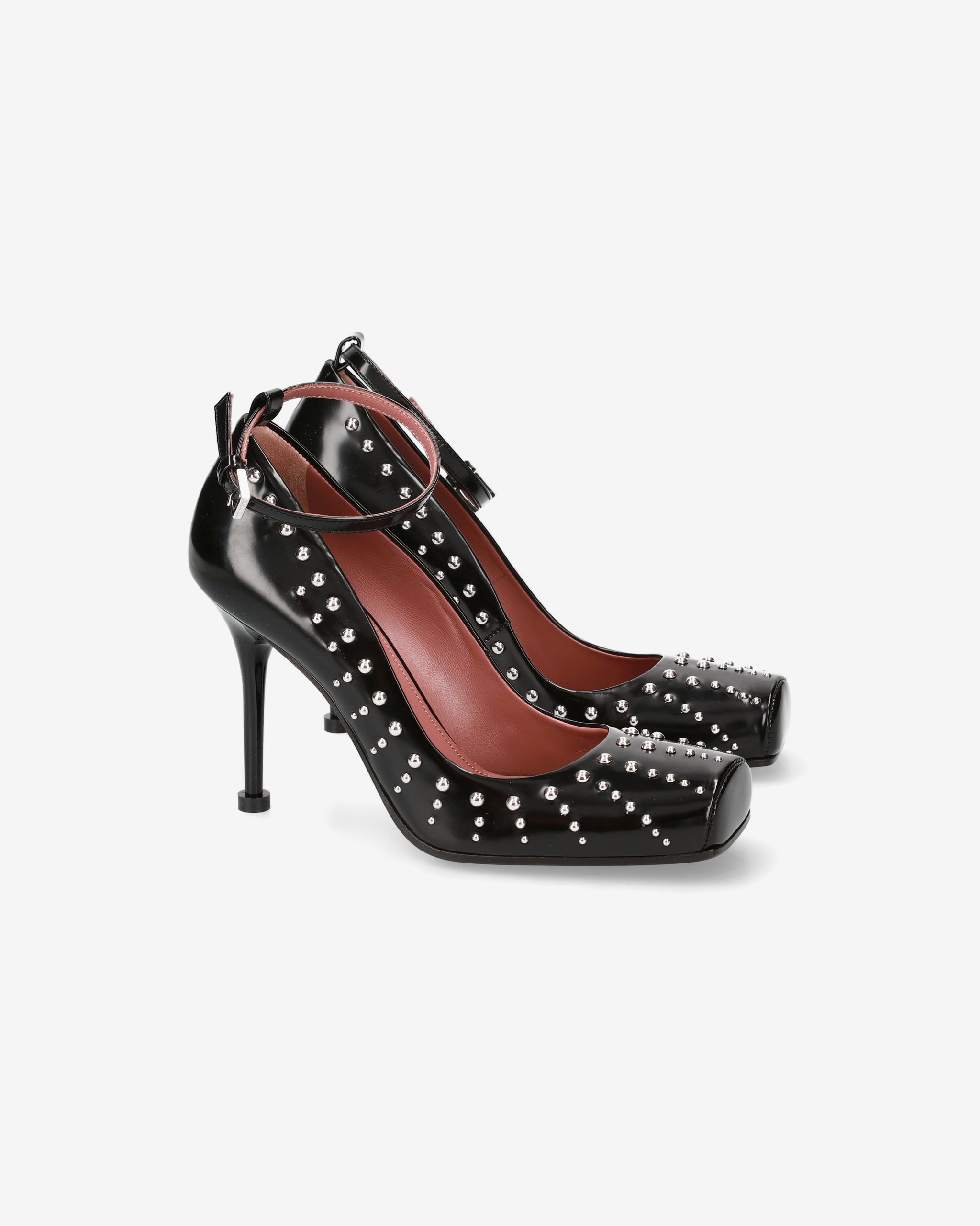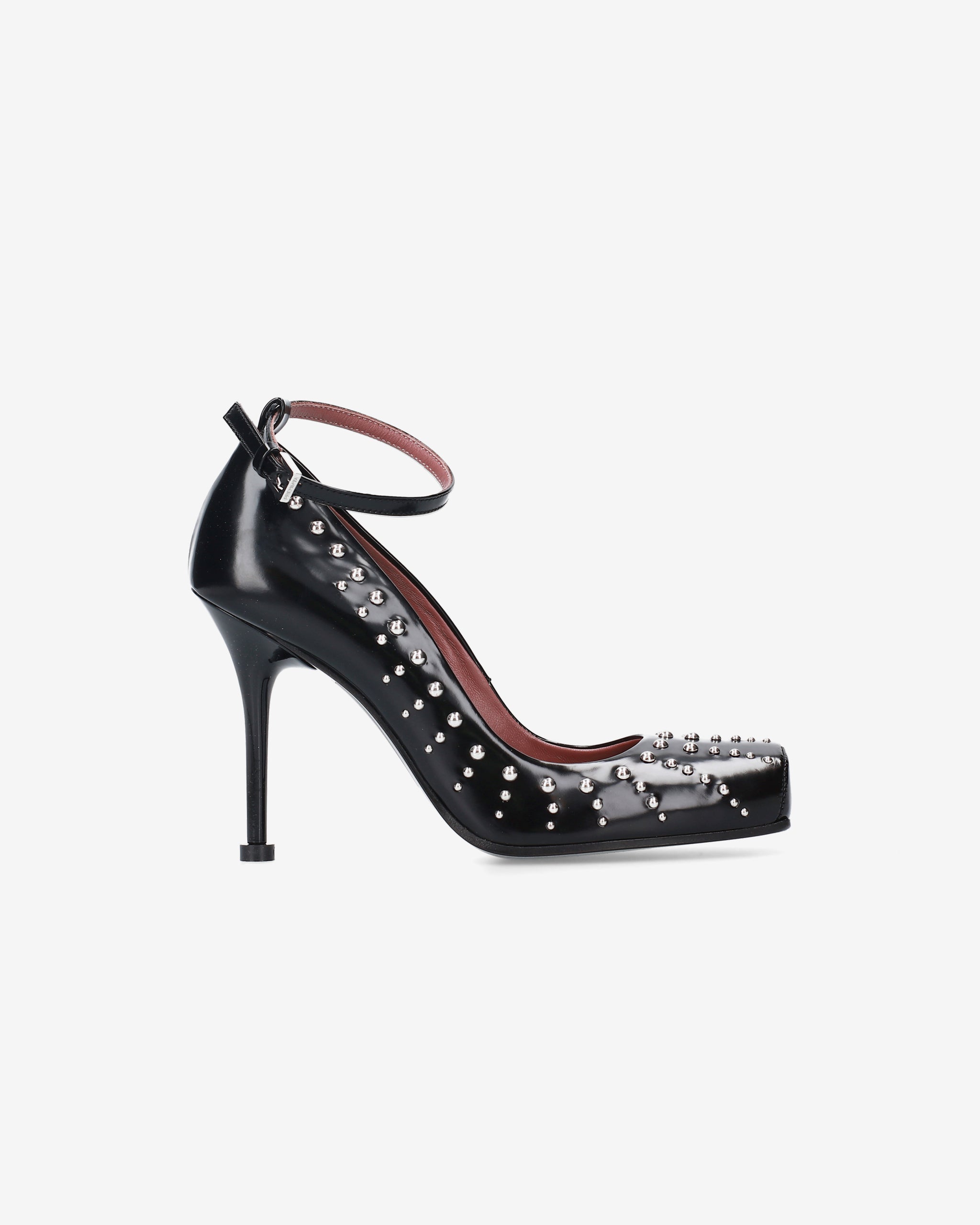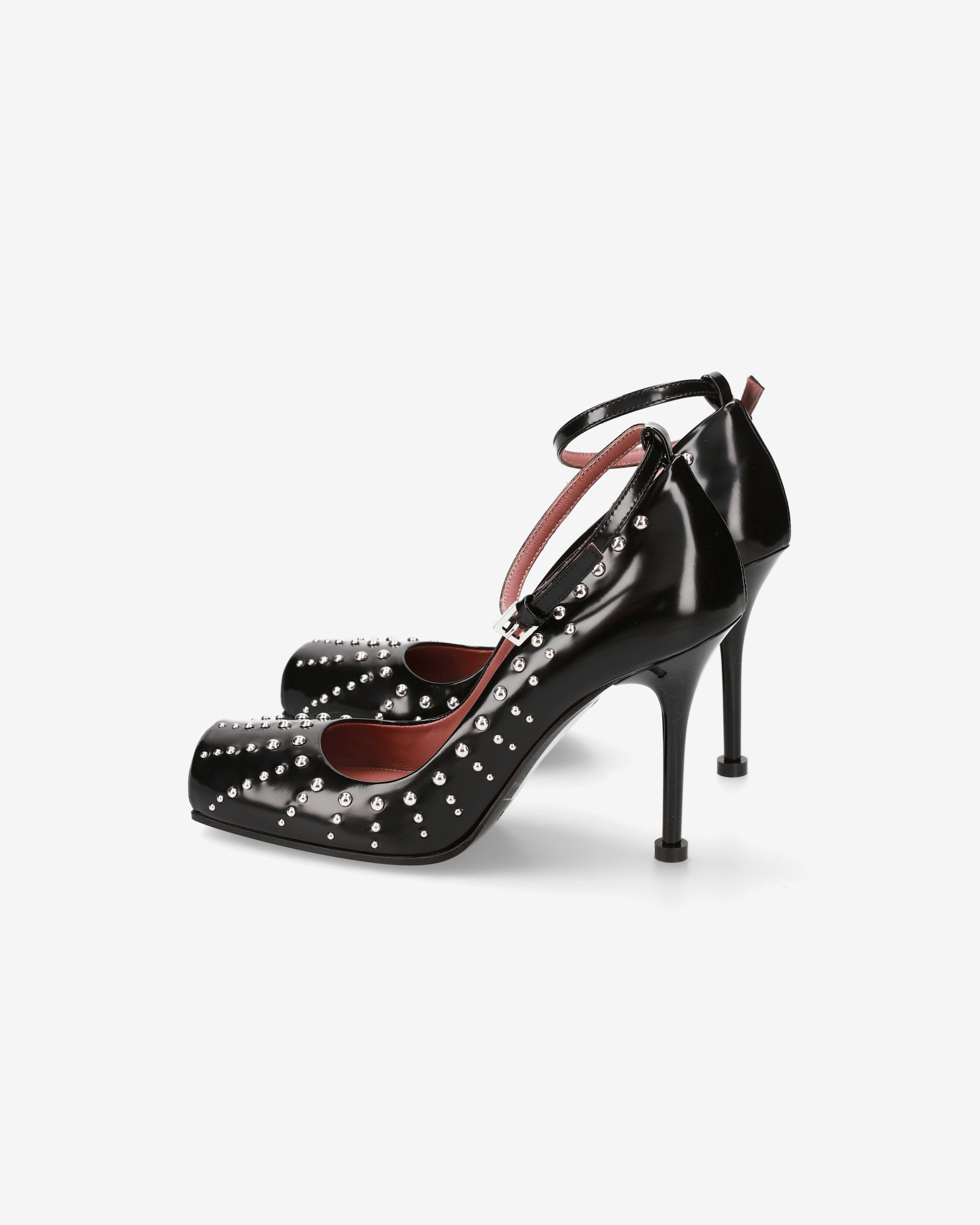 Scarpe da donna dal design grintoso e moderno, ideali per aggiungere un tocco di carattere ai look invernali. Realizzate in pelle nera con borchie decorative, uniscono stile deciso e comfort per un utilizzo quotidiano.