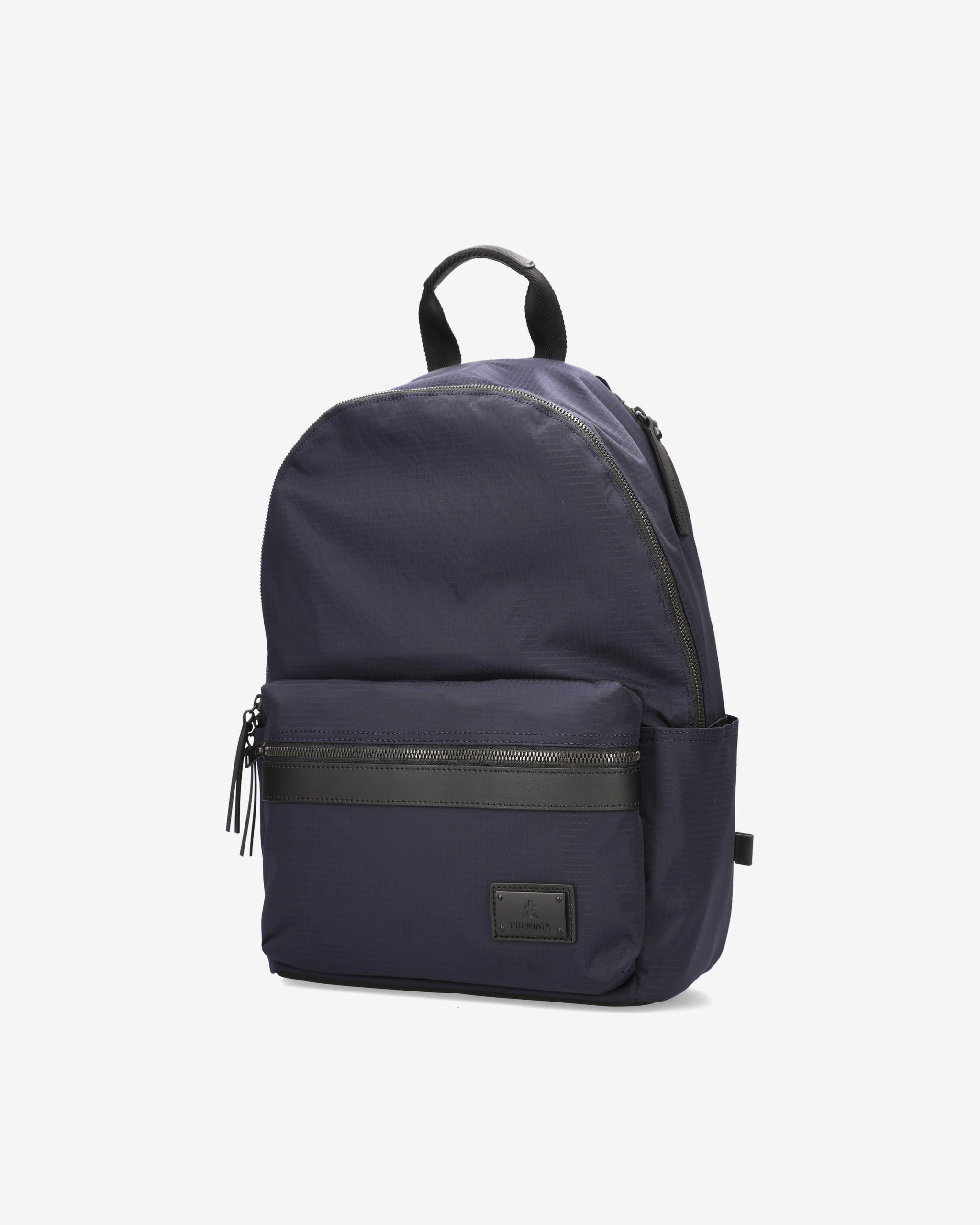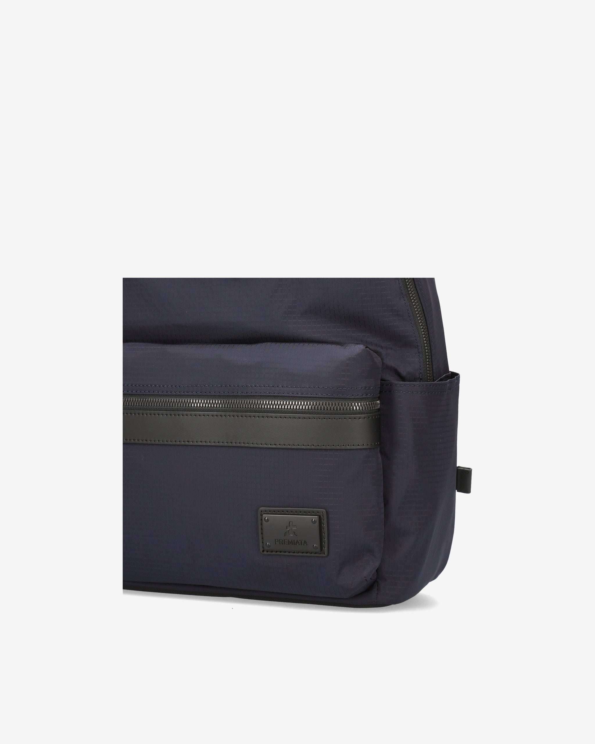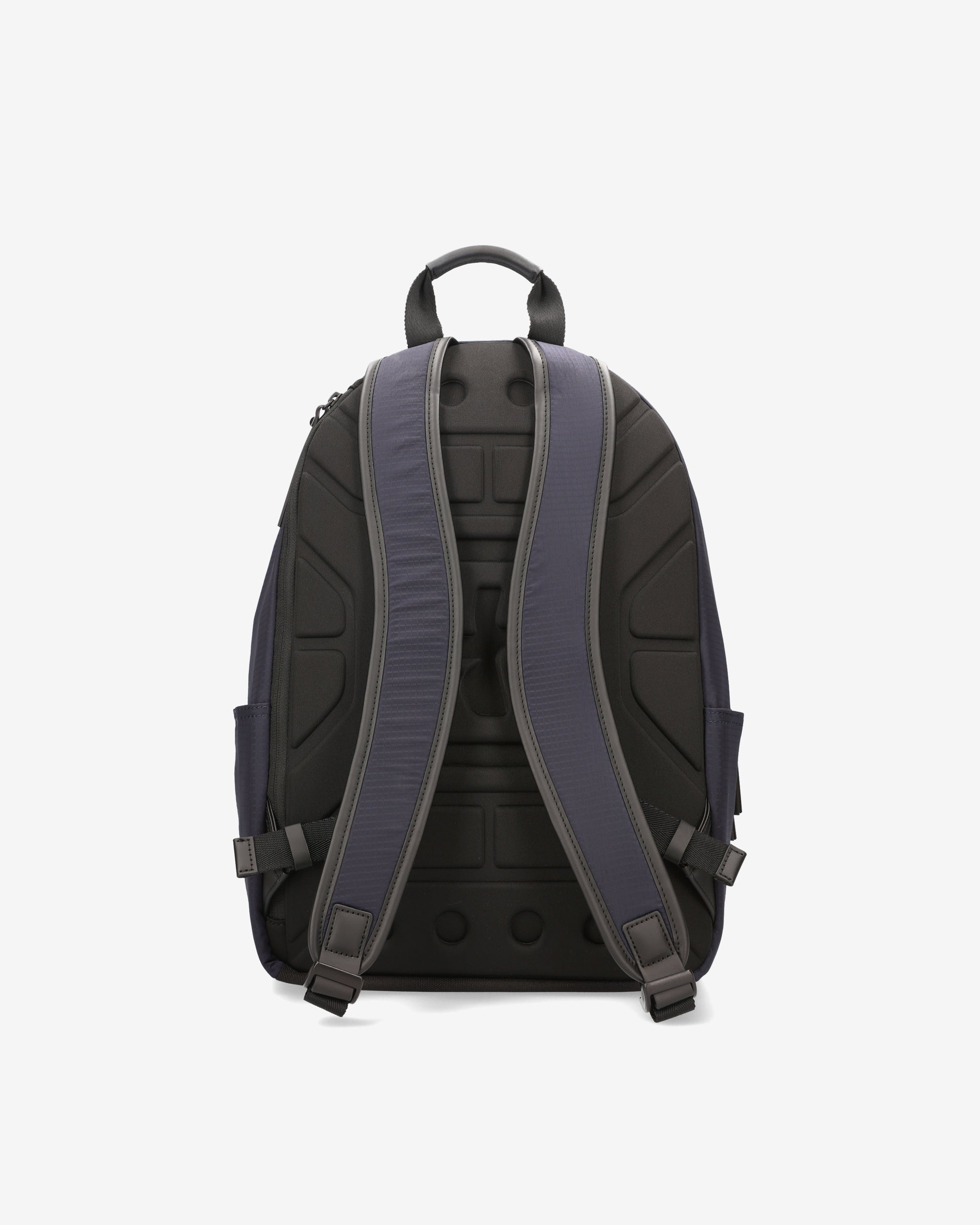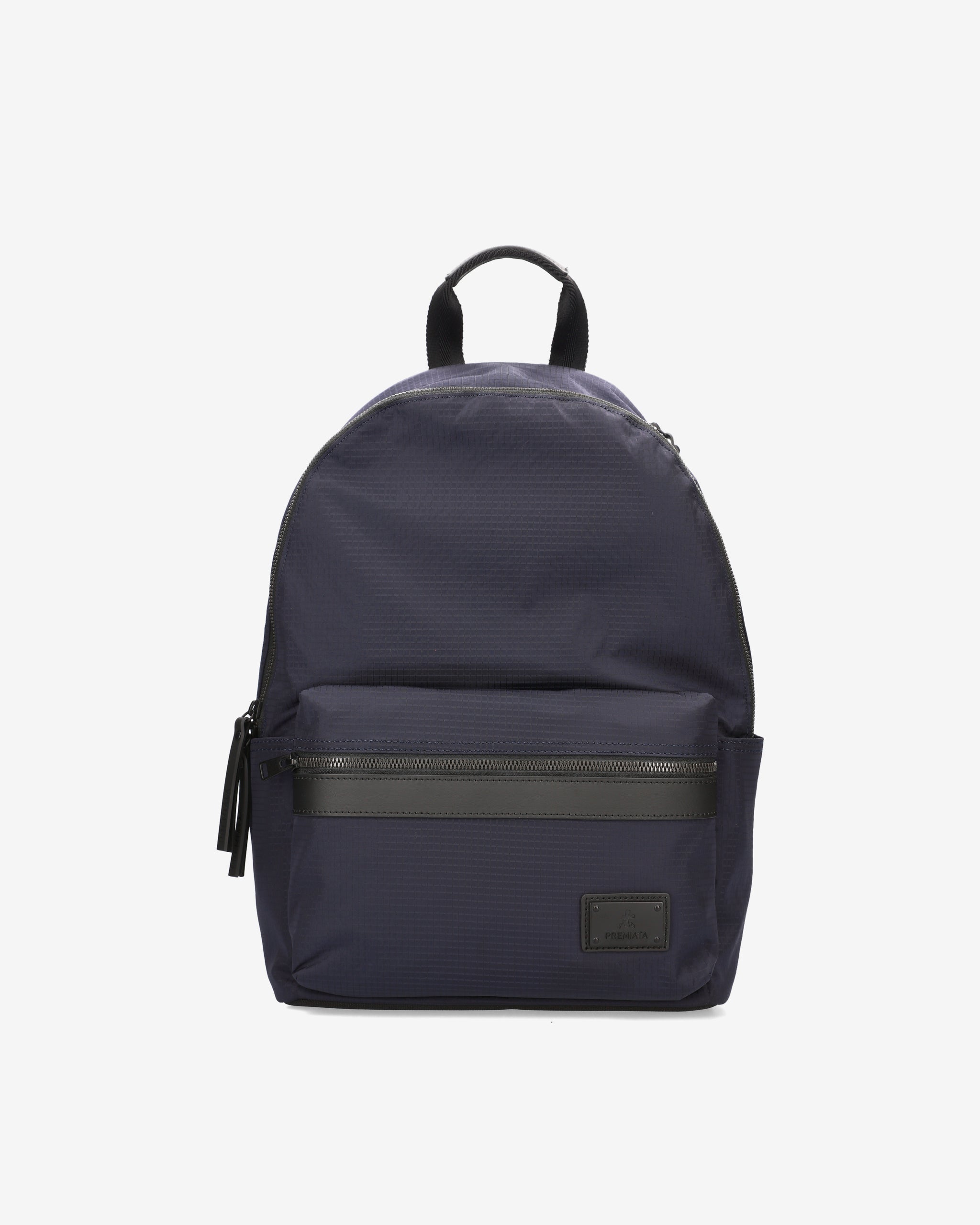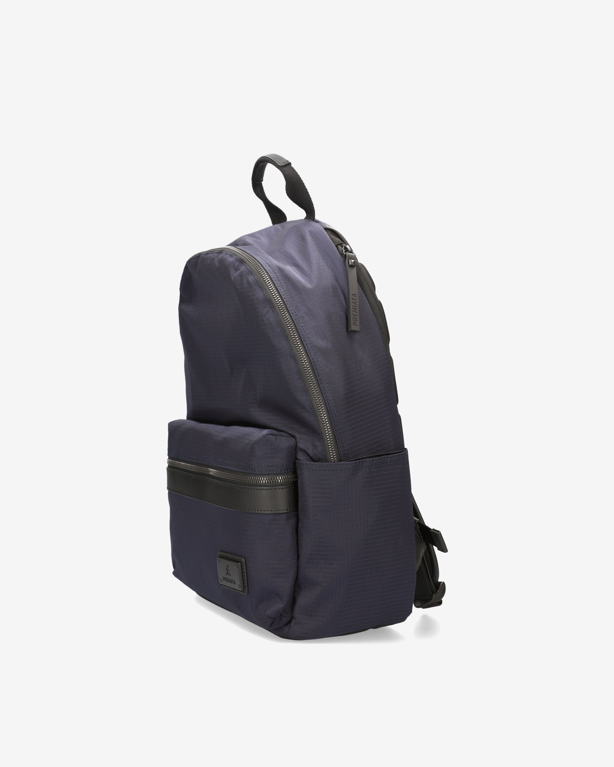 Un modello capiente e versatile in gabardine di ripstop nylon di prima qualità con trattamento antisfilacciamento e idrorepellente. Spallacci imbottiti in EVA per un maggiore comfort. Tasche frontali impermeabili con finiture in pelle di vitello e chiusure in metallo opaco.