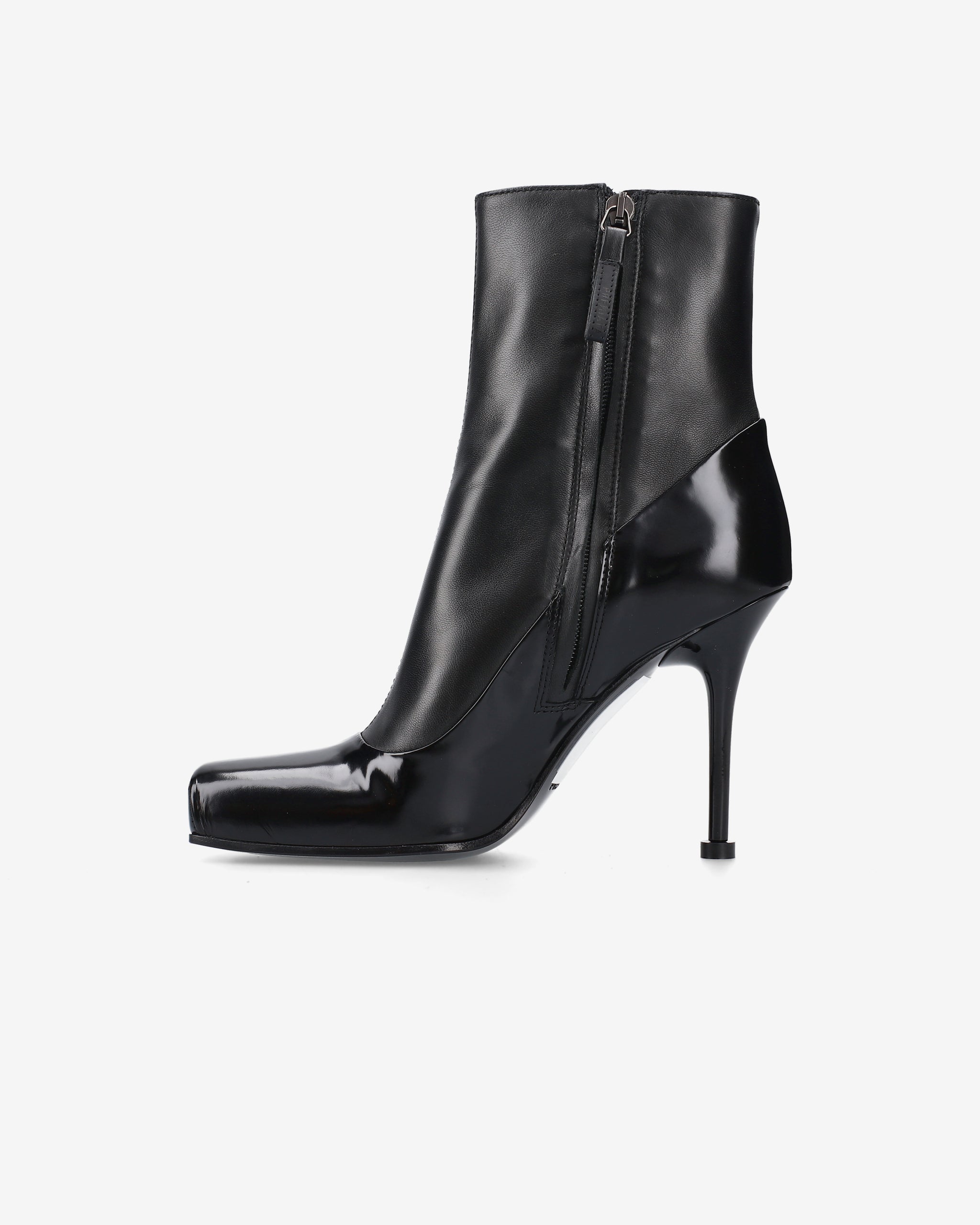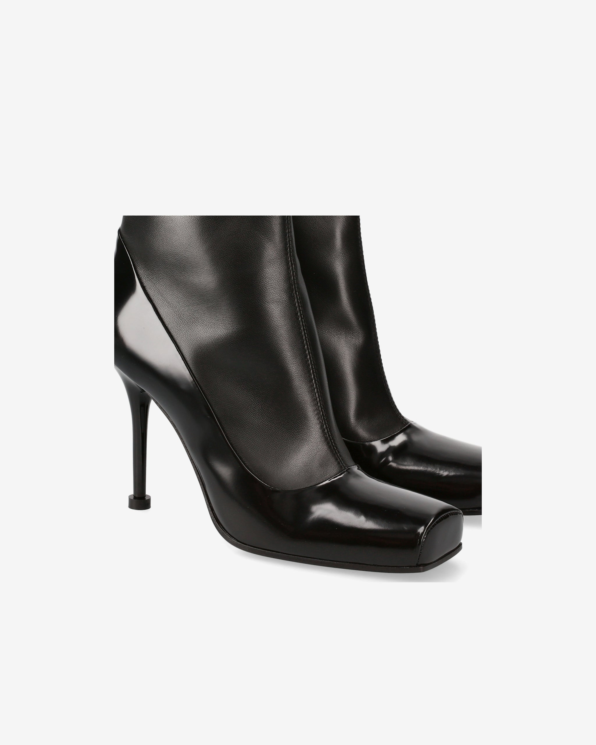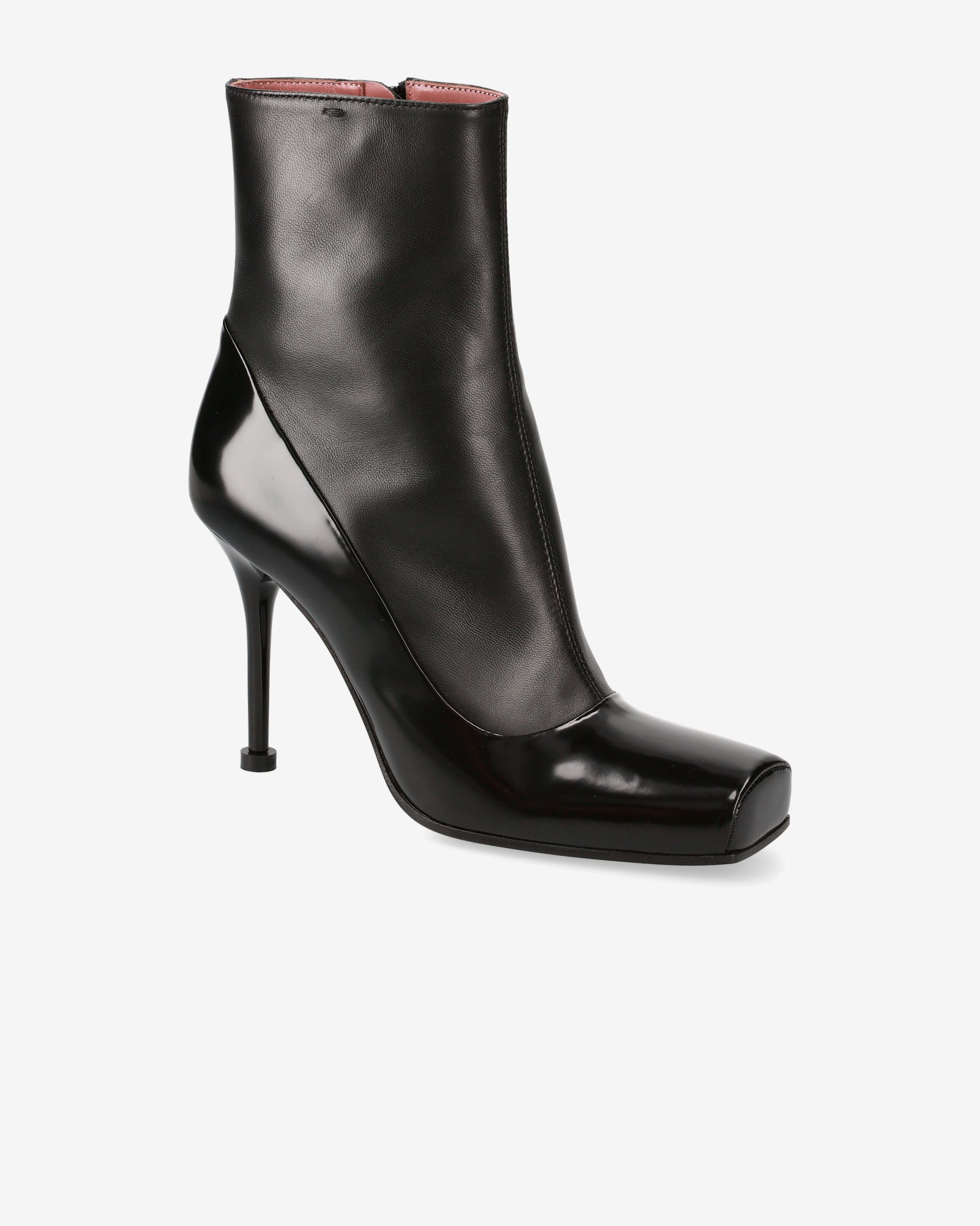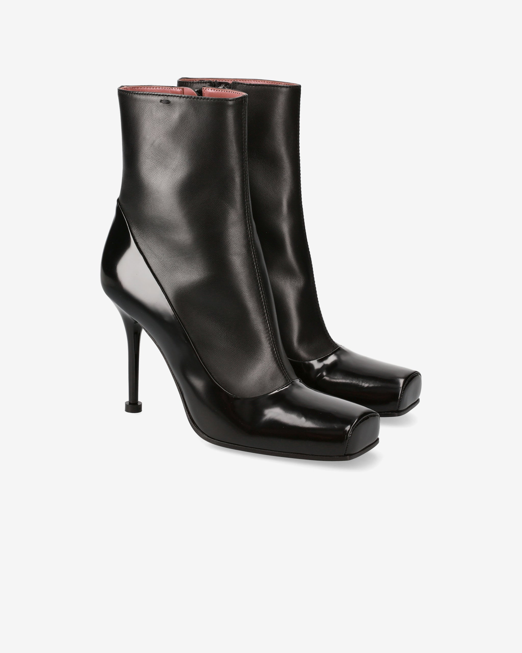 Stivaletti da donna dal design elegante e contemporaneo, ideali per completare look invernali con un tocco di stile. Realizzati in pelle nera, uniscono comfort e versatilità per un utilizzo quotidiano durante la stagione fredda.
