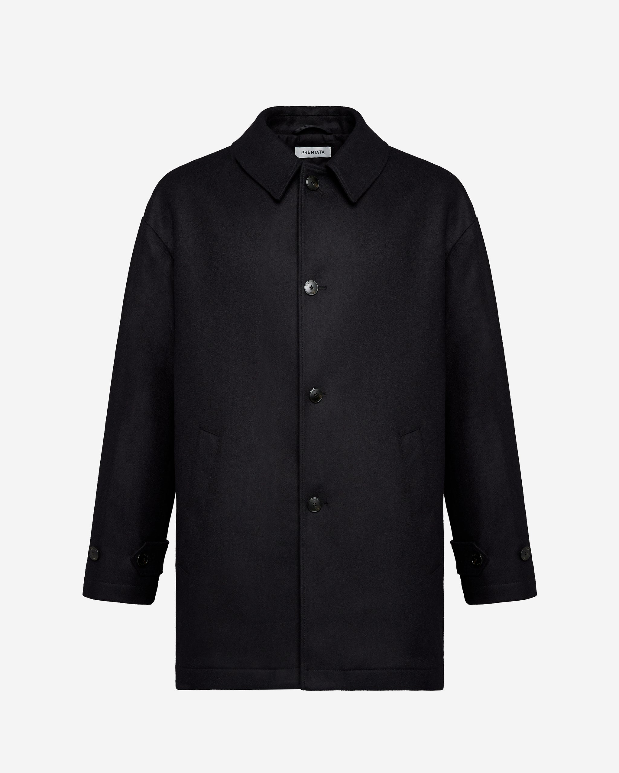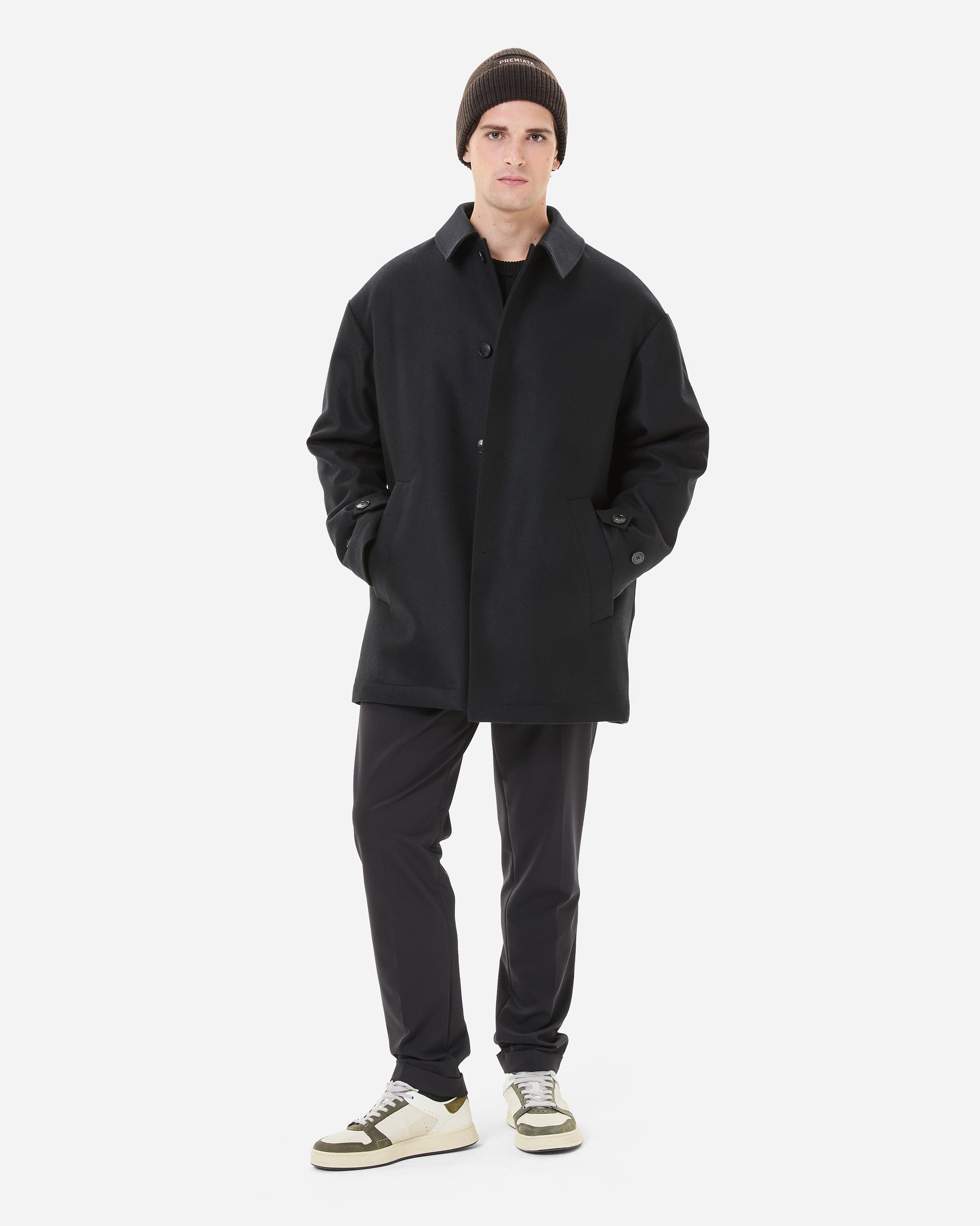 - Collo a camicia con lunetta cucita e sottocollo impunturato