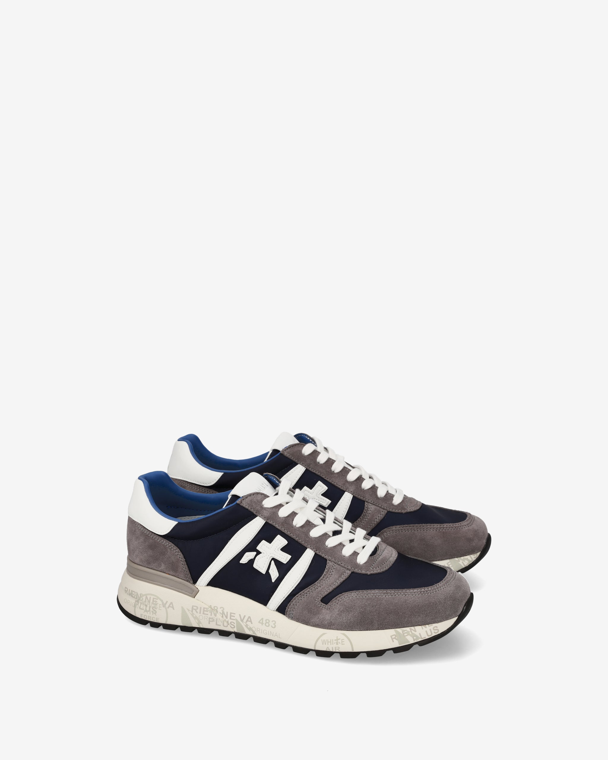 Sneakers Lander in pellame morbido scamosciato e nylon. Il look è arricchito dall’inconfondibile logo Premiata. Suola ergonomica e super leggera.