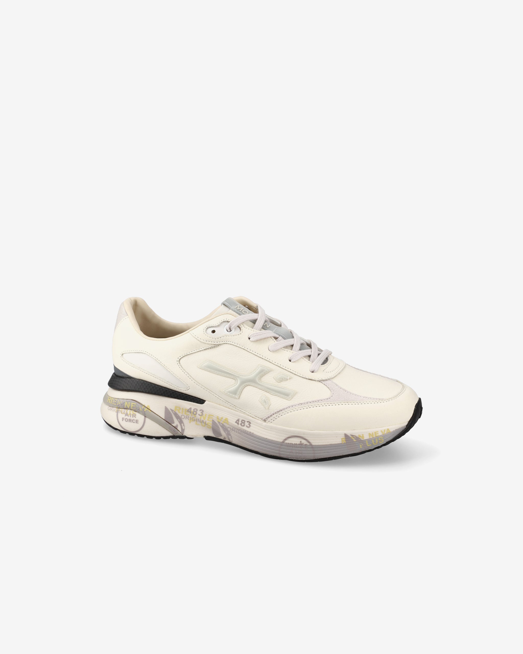 Ideate per stupire. La Moerun si basa sulla leggerezza del movimento, la stabilità e la sensazione ammortizzante data dall'innovazione del fondo. La nuova silhouette è ricca di dettagli: logo sul laterale esterno, scritta PREMIATA sul laterale interno e nome del modello sull'etichetta.