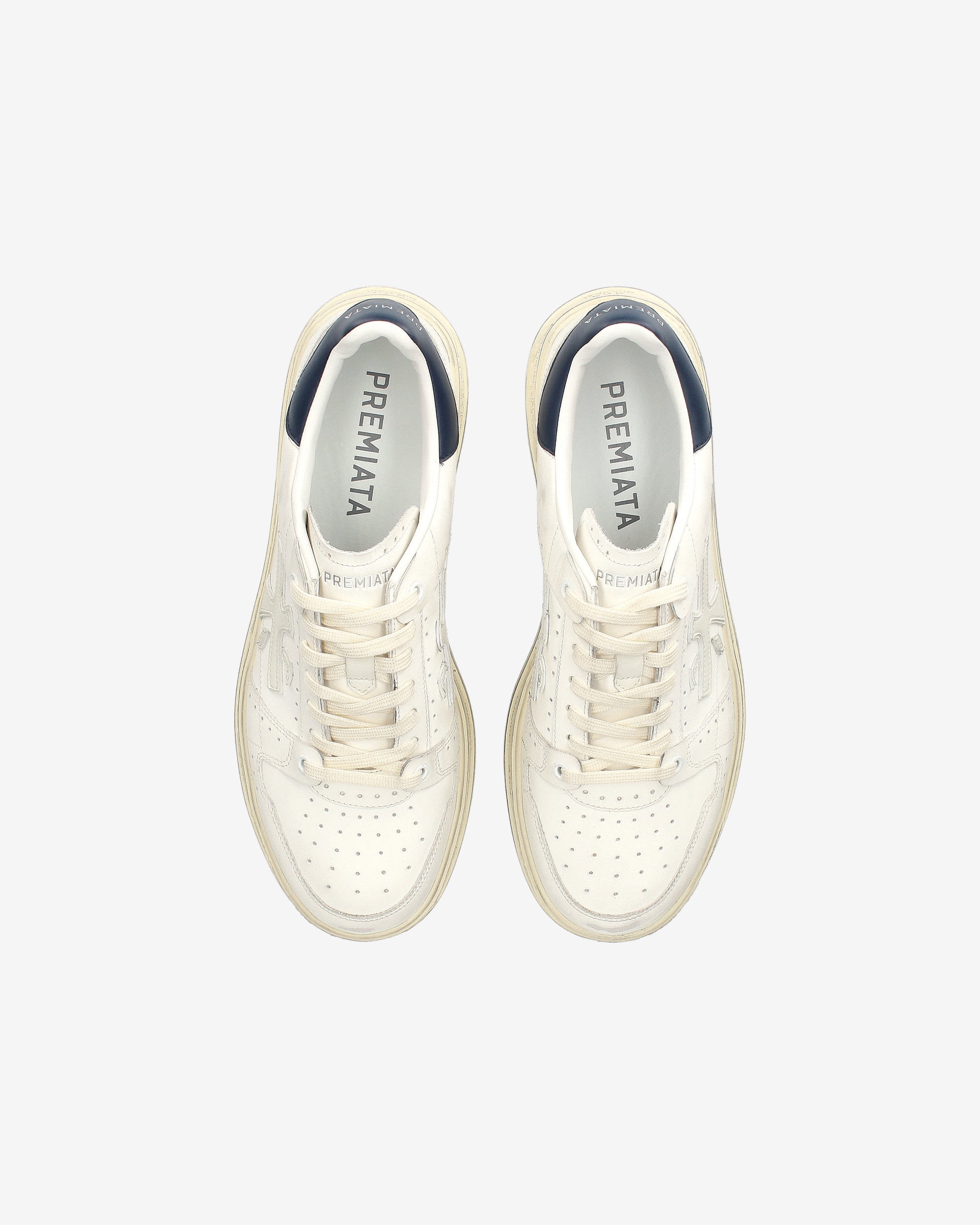 Creata per reinterpretare il mondo Sport in chiave couture, ricca di dettagli come, per esempio, i numerosi fori che ne caratterizzano il design. Fori che si ispirano alle lavorazioni “Brogue” del mondo classico in cui Premiata affonda le proprie radici.