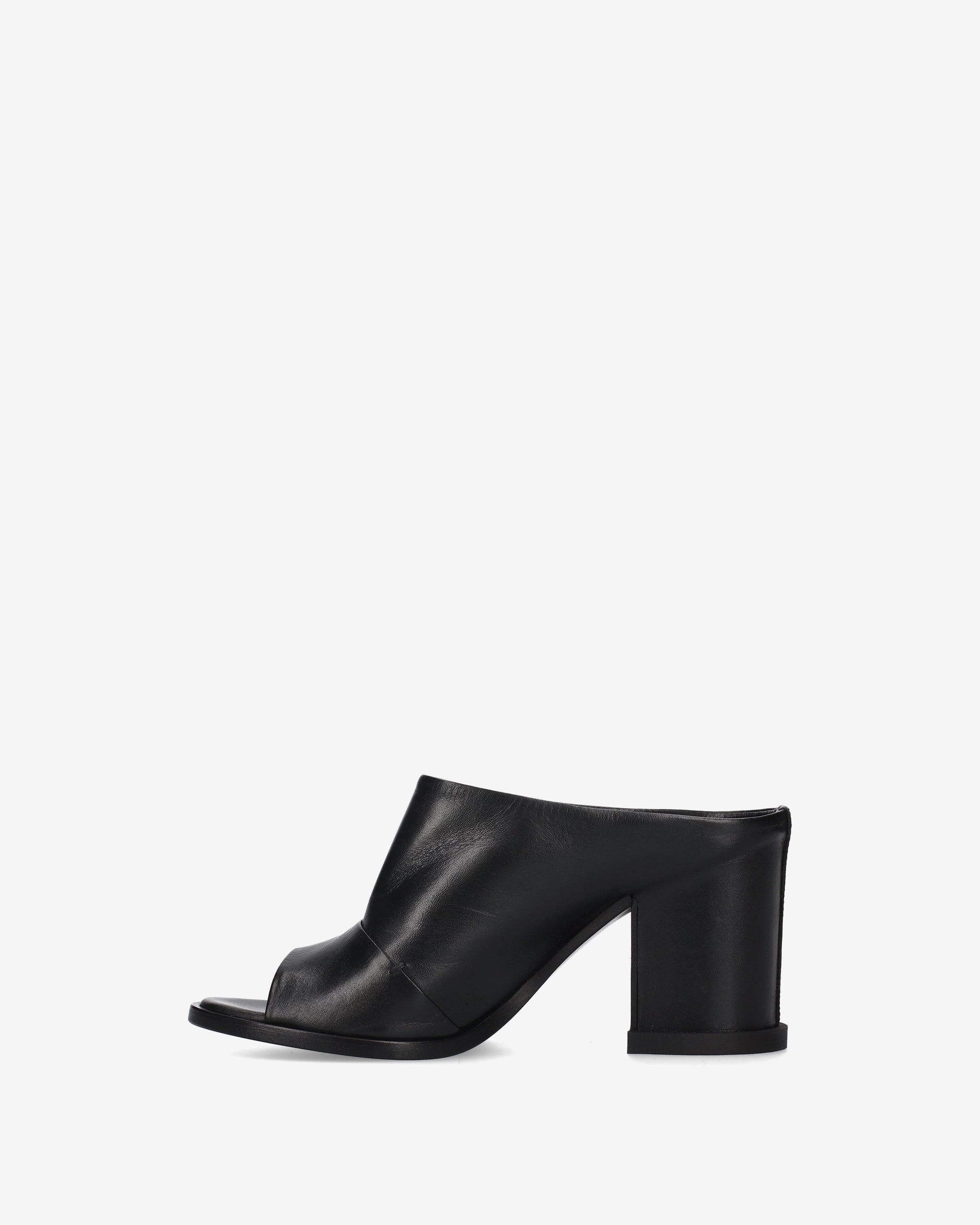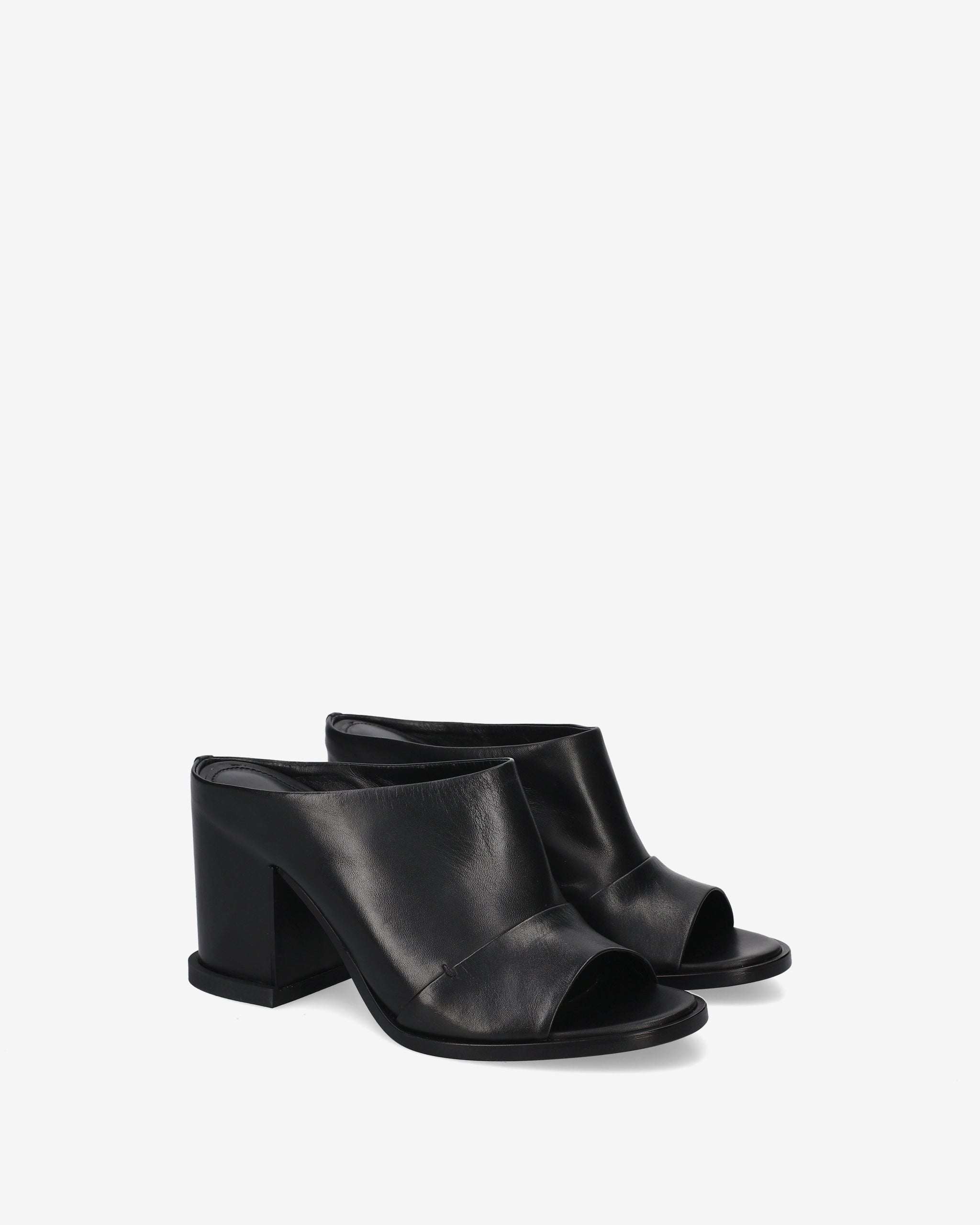 Elegante sabot spuntato realizzato in pregiato vitello, con una struttura da 80mm caratterizzata da un tacco inglobato nella tomaia. Un design sofisticato che unisce comfort e stile per un look contemporaneo.