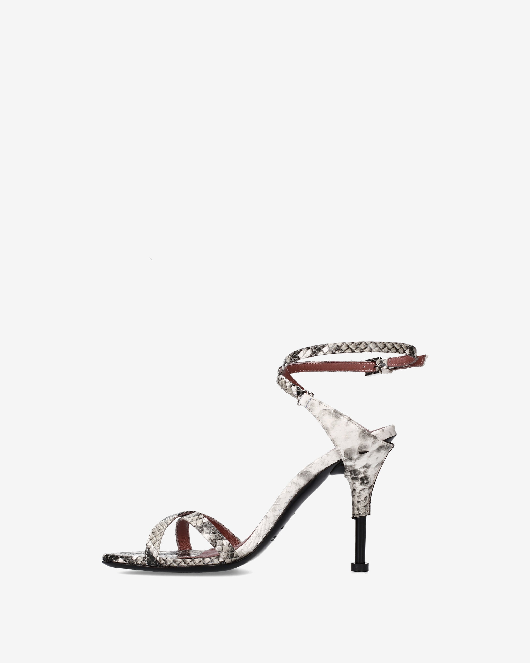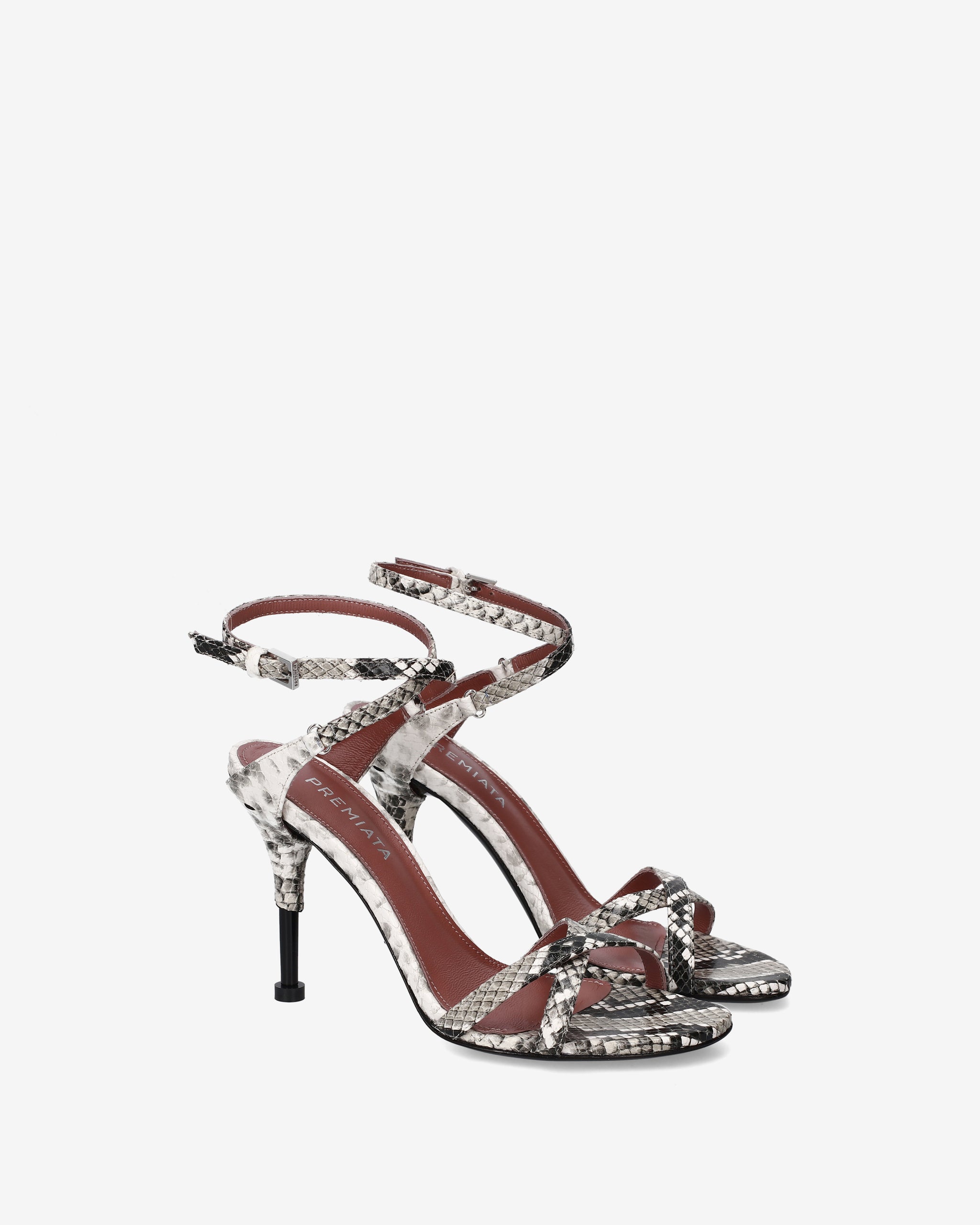 Sandali con tacco in pelle stampa pitone