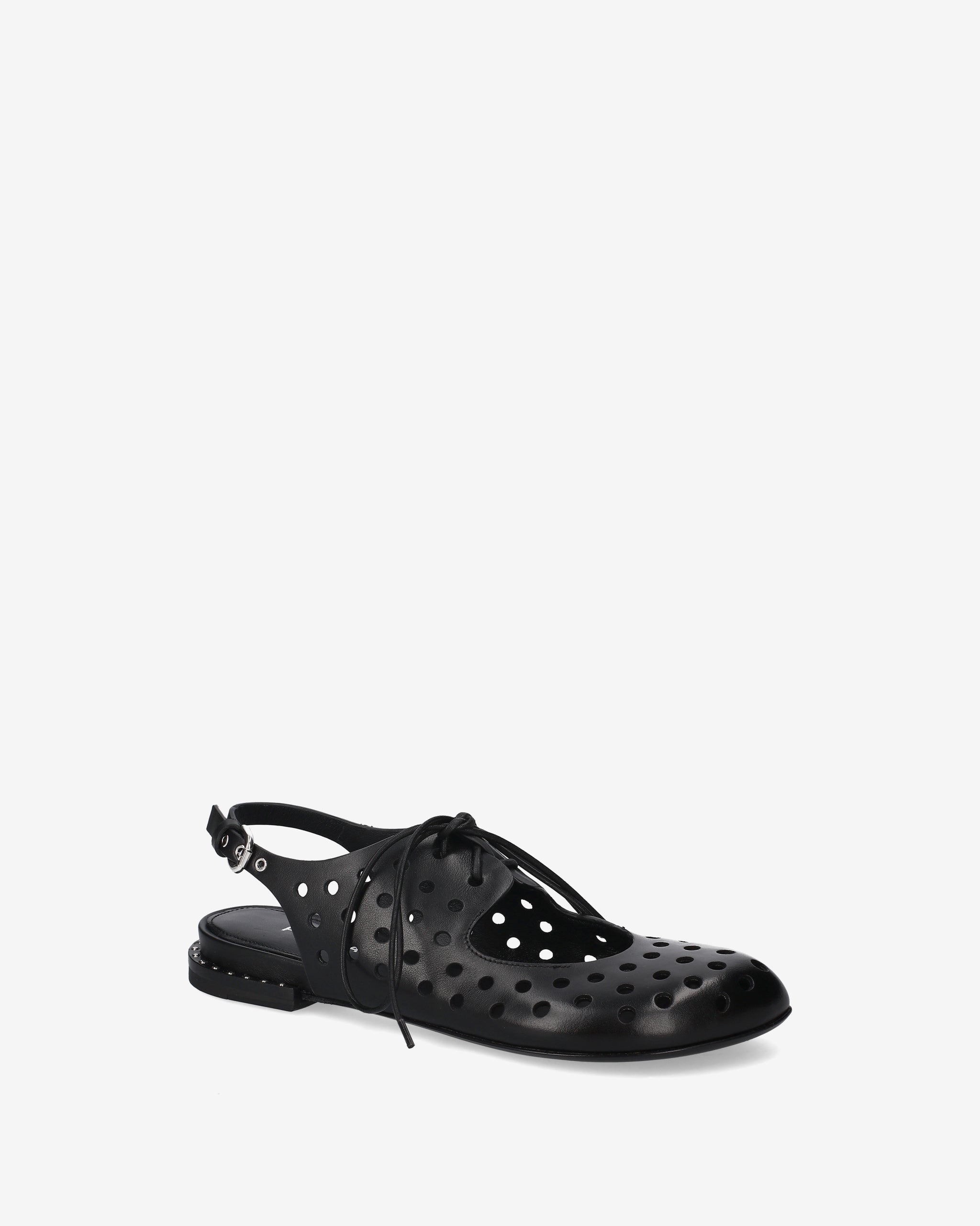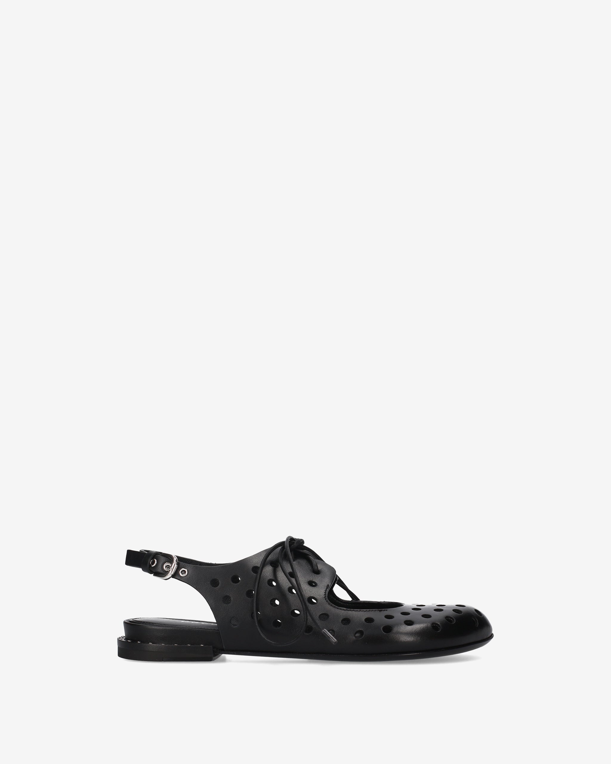 Unisce l’estetica di una scarpa stringata alla freschezza di una slingback. Caratterizzato da un'audace tomaia in pelle nera con lavorazione traforata, è l'accessorio ideale per chi cerca un design d'avanguardia senza rinunciare al comfort quotidiano.