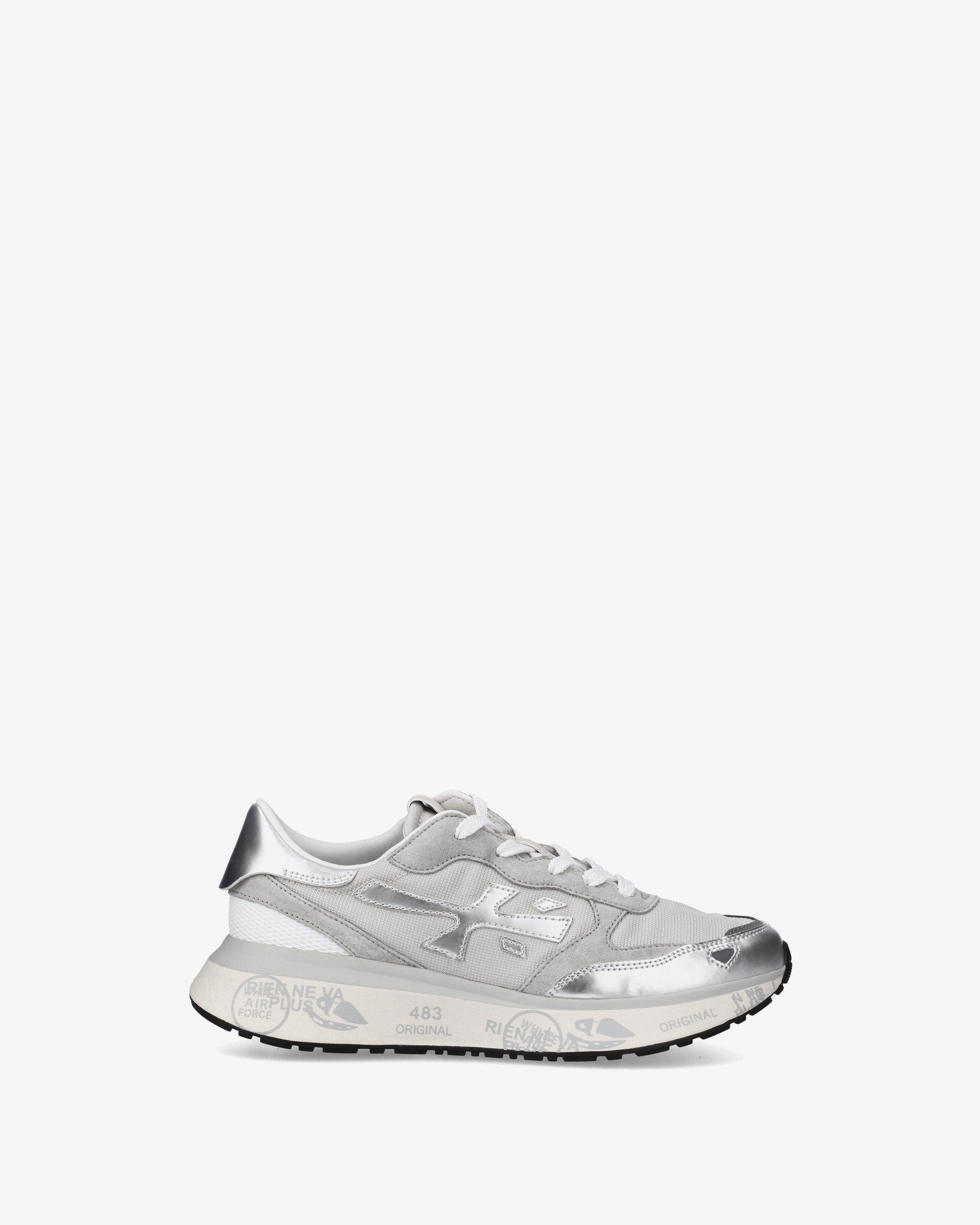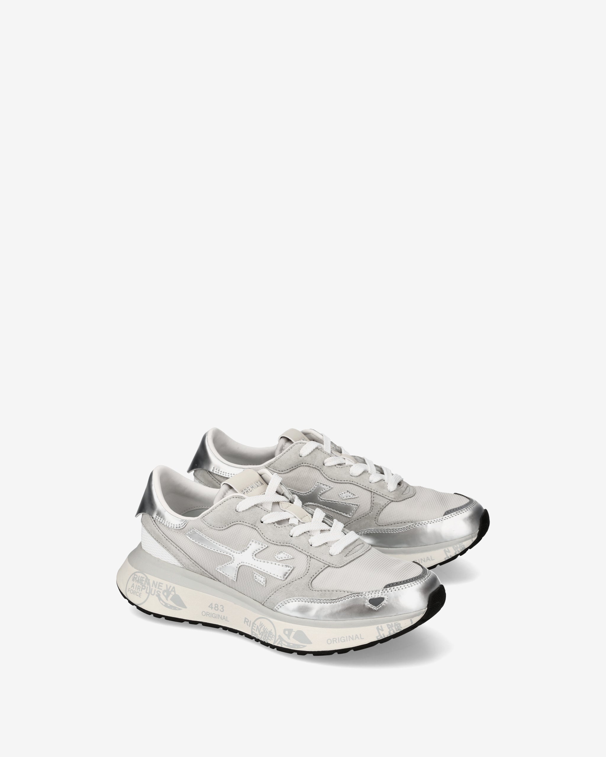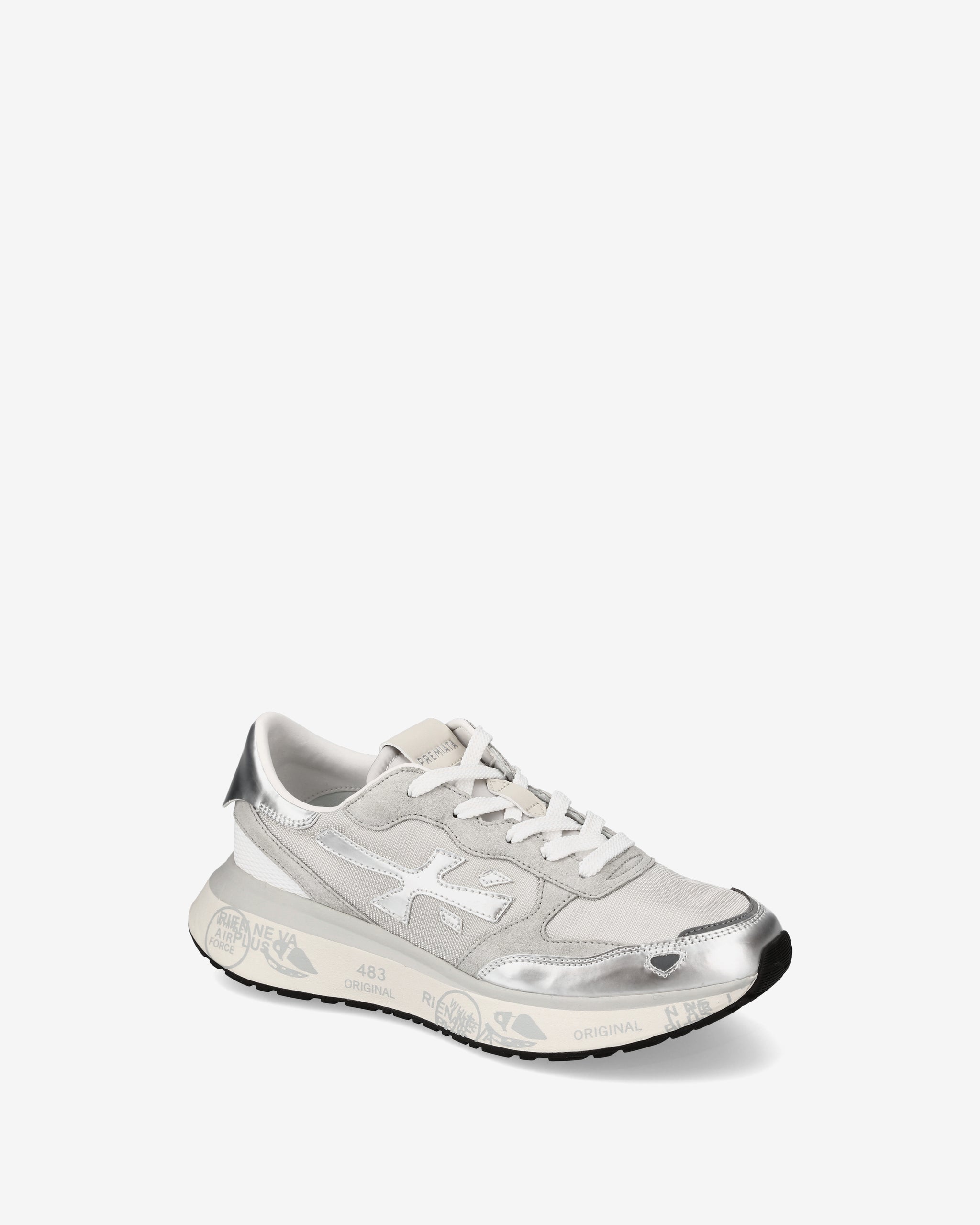 Stile e funzionalità si fondono in una sneaker rétro running rivisitata in chiave moderna. Realizzata con materiali di alta qualità, combina suede, pelle e tessuto per un look distintivo. La suola, arricchita dagli iconici dettagli stile Premiata, esalta l'identità urban e casual-chic.
