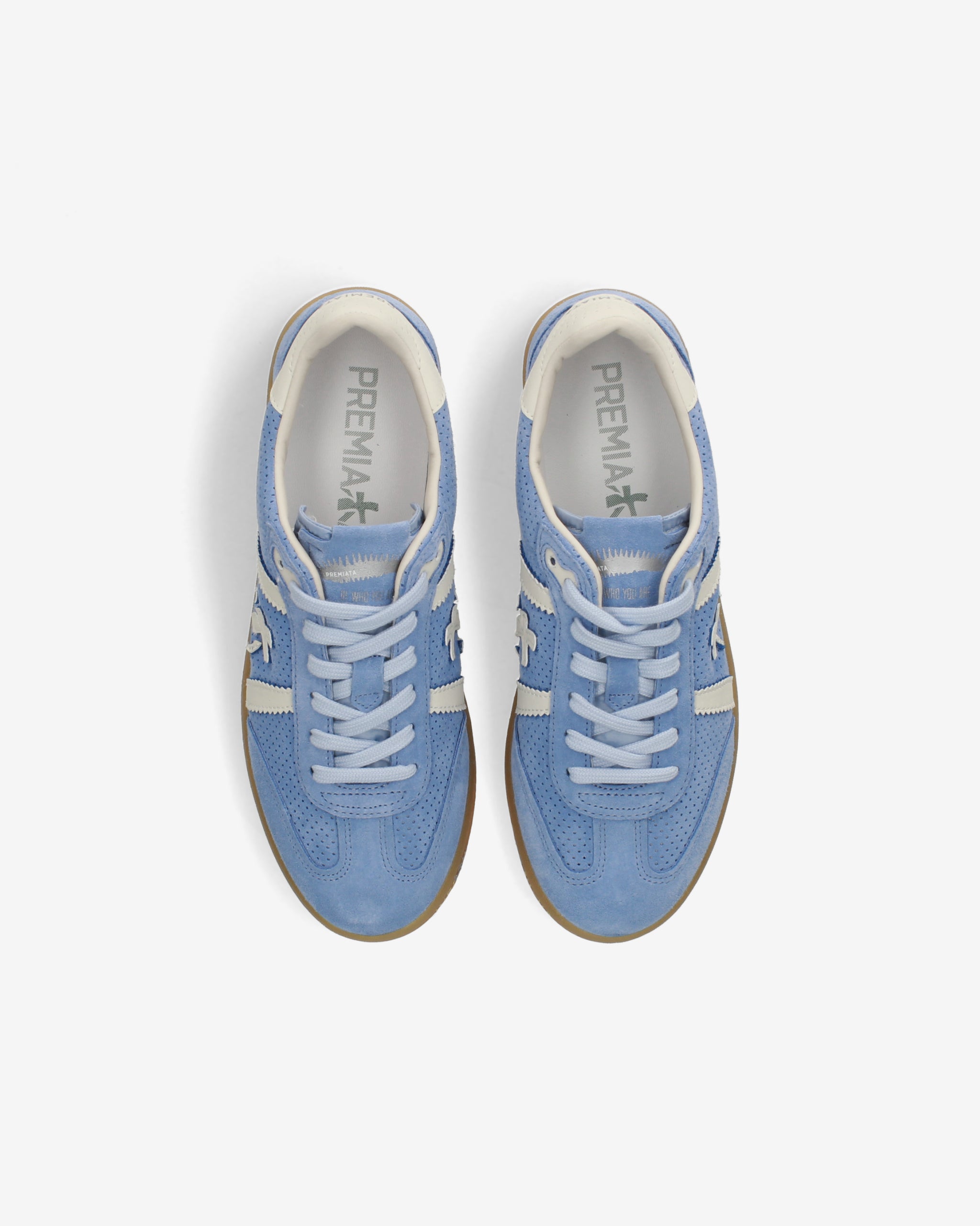 Bonnie con tomaia in traforato azzurro, dettagli bianchi a contrasto e suola gum. Un mix di colori eccentrici per un’estetica nuova e sofisticata.
