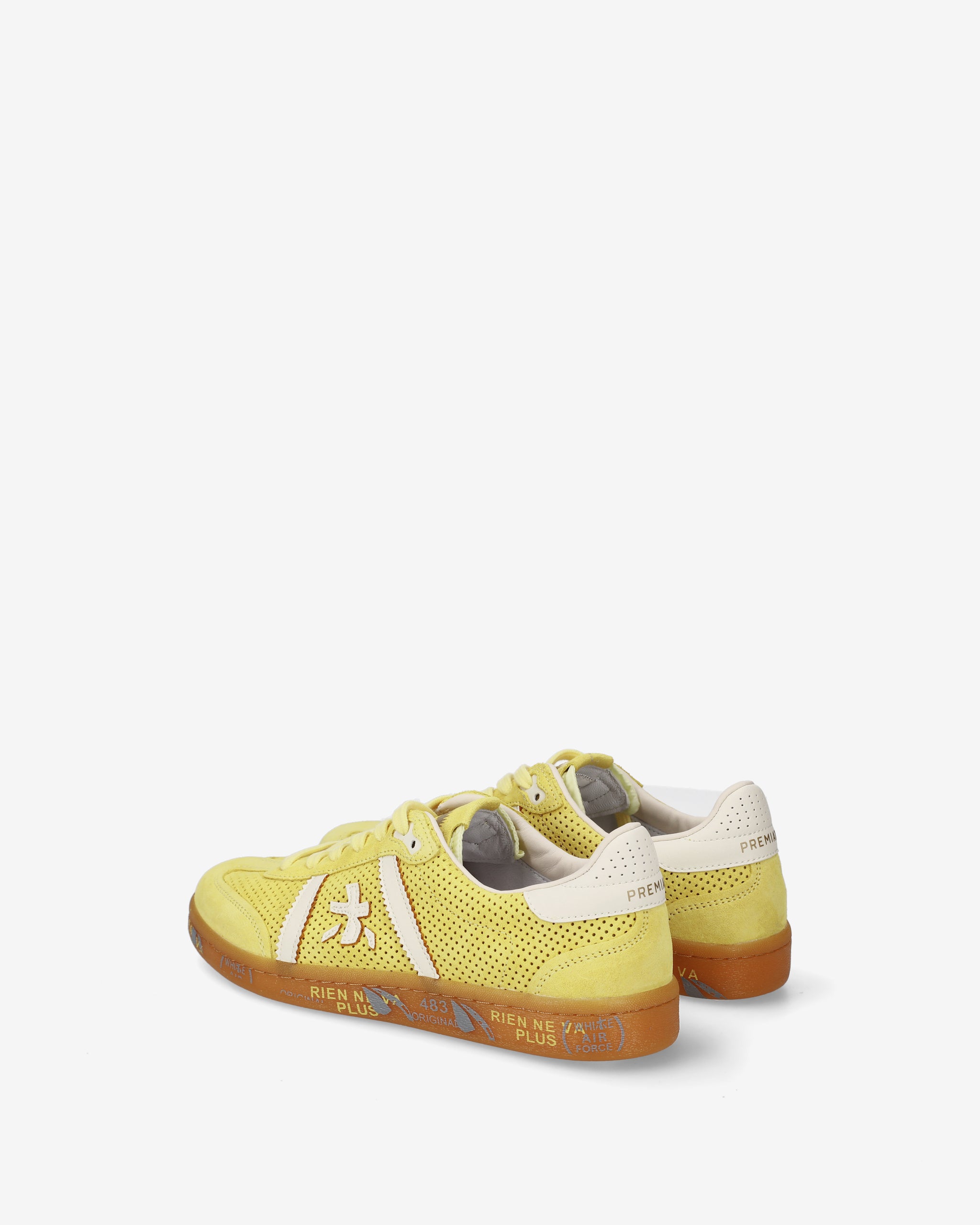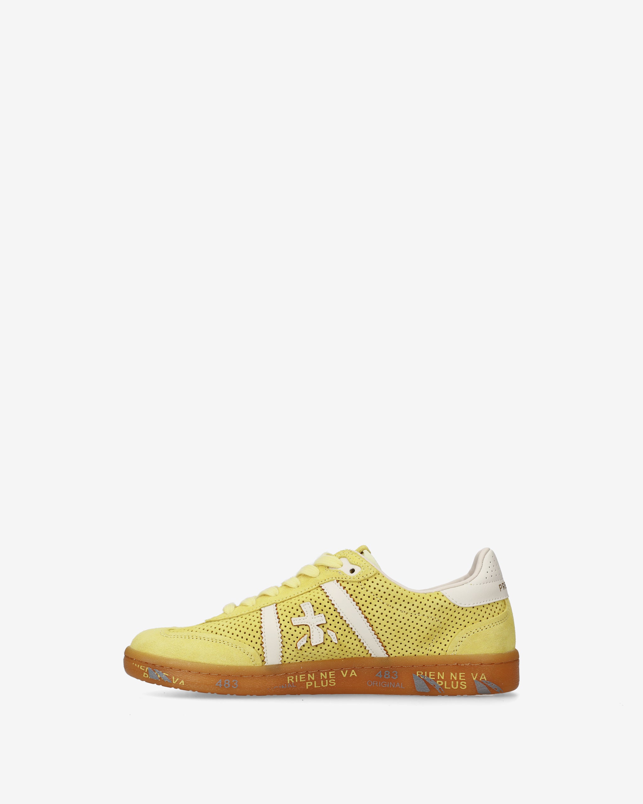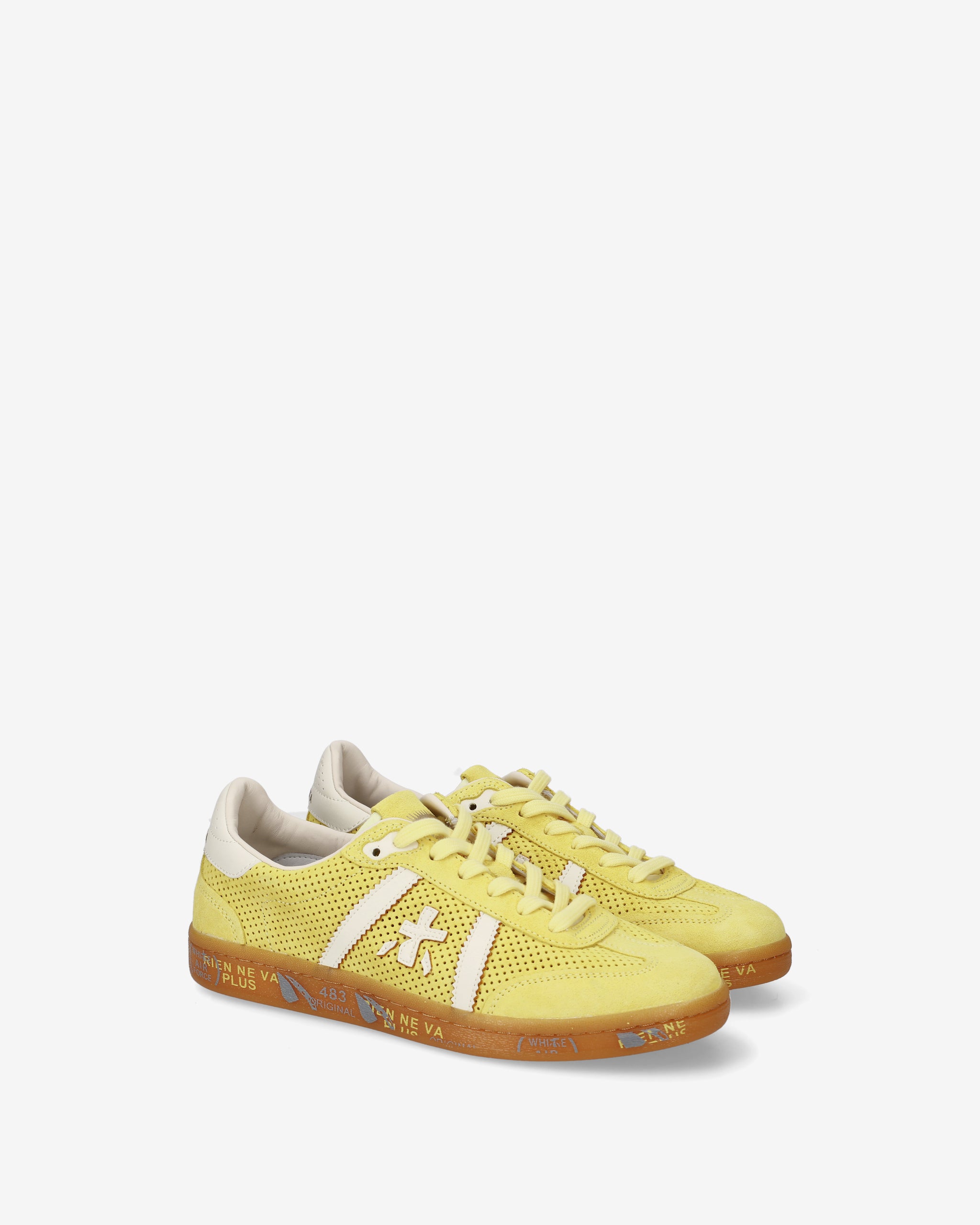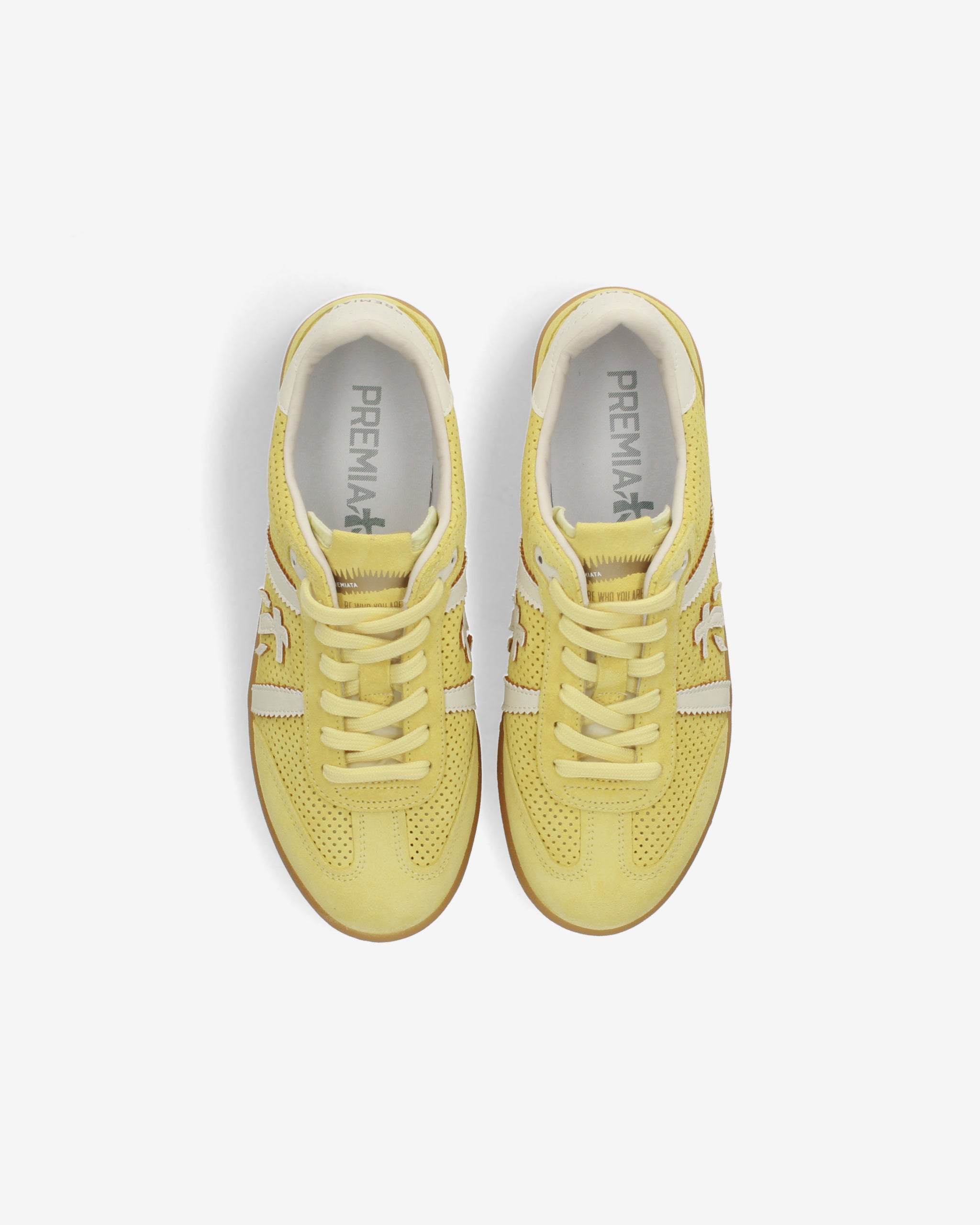 Bonnie con tomaia in traforato giallo, dettagli bianchi a contrasto e suola gum. Un mix di colori eccentrici per un’estetica nuova e sofisticata.