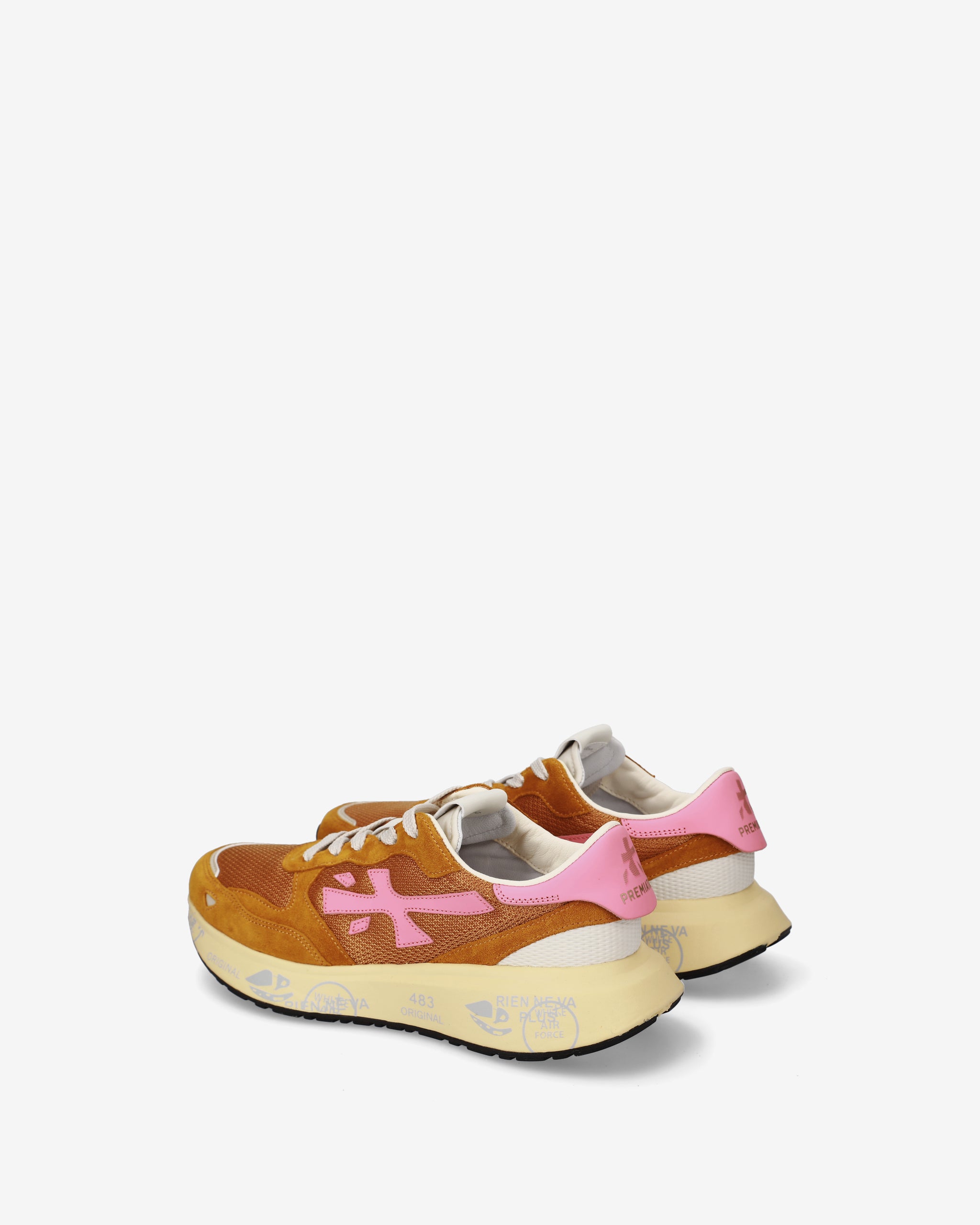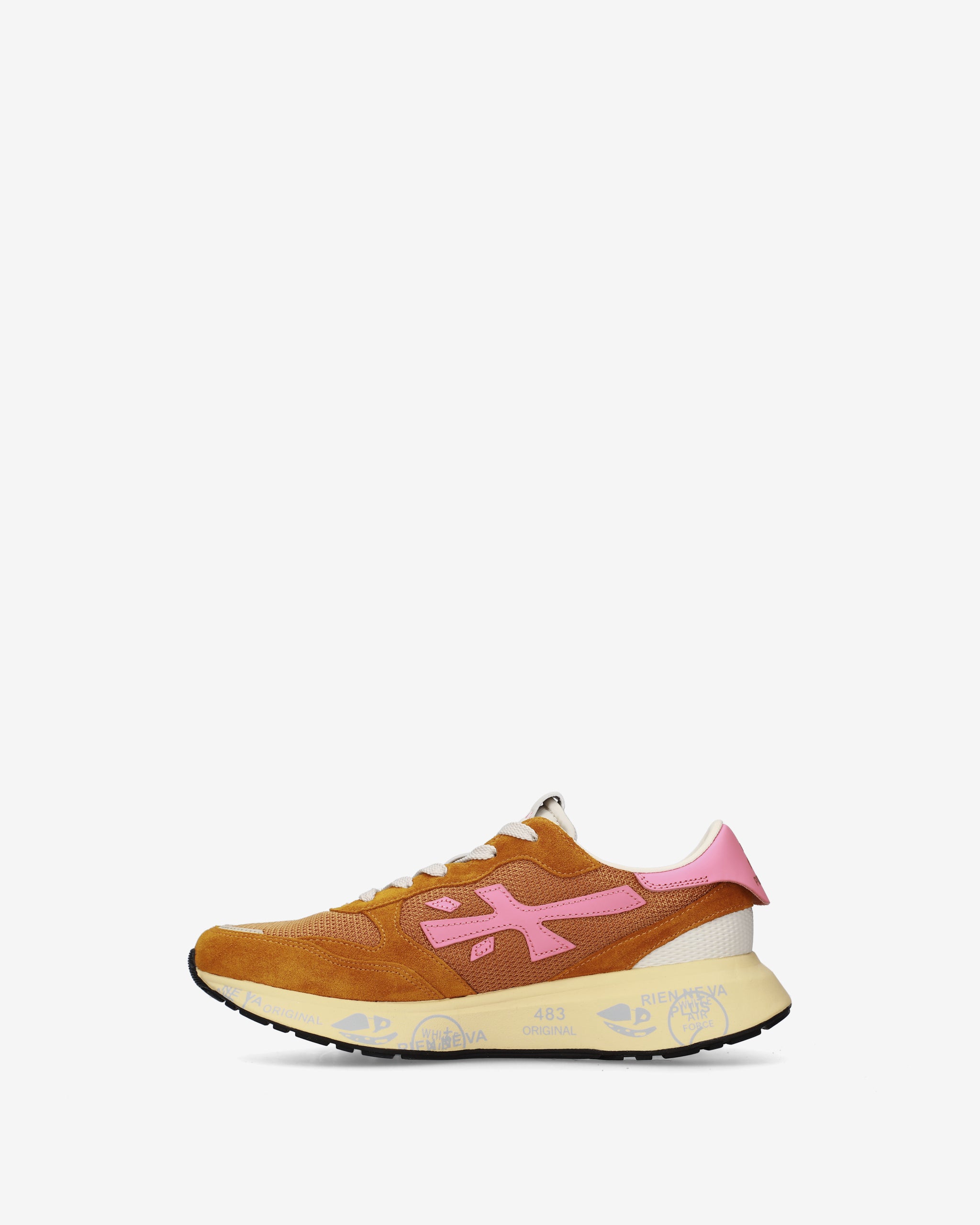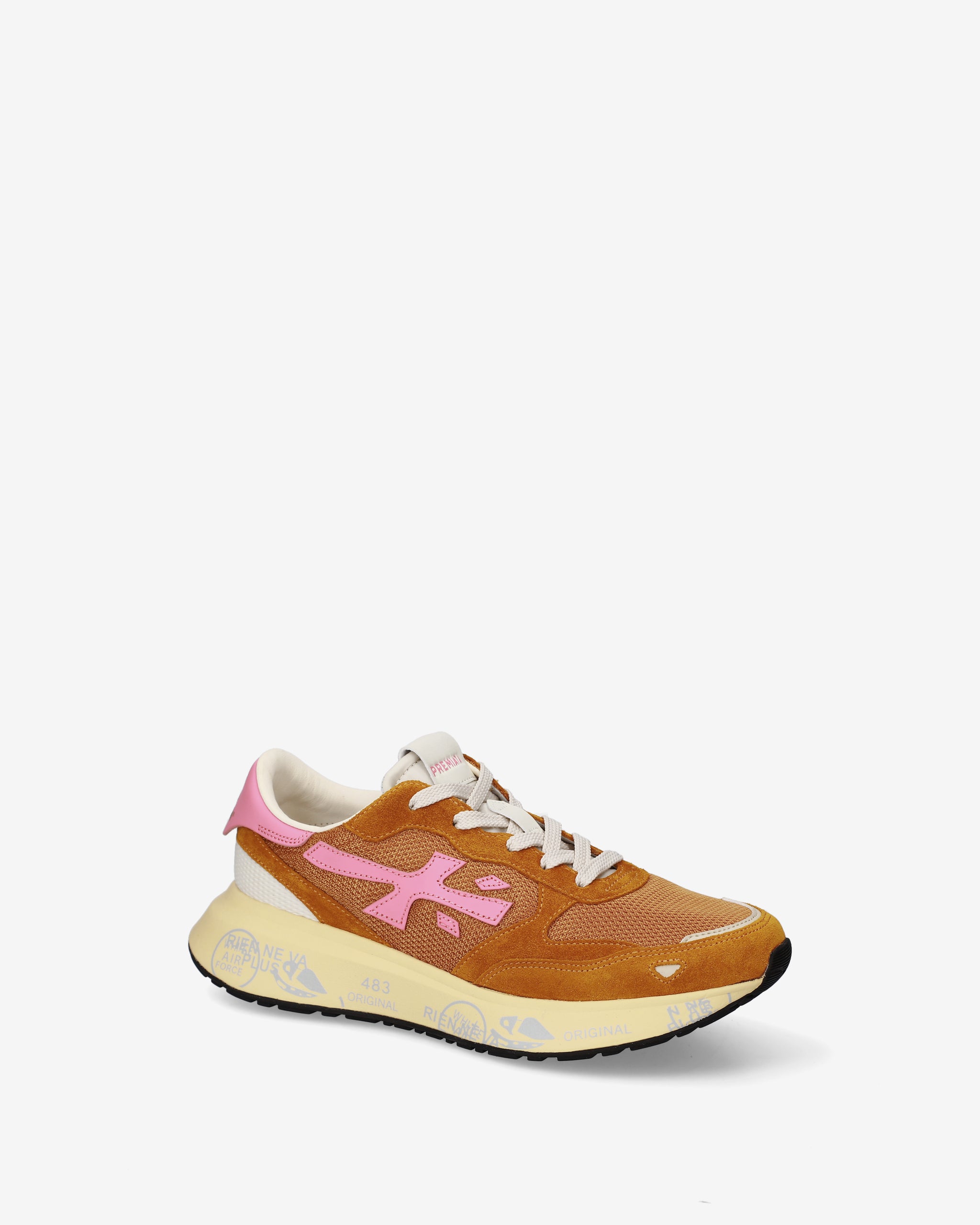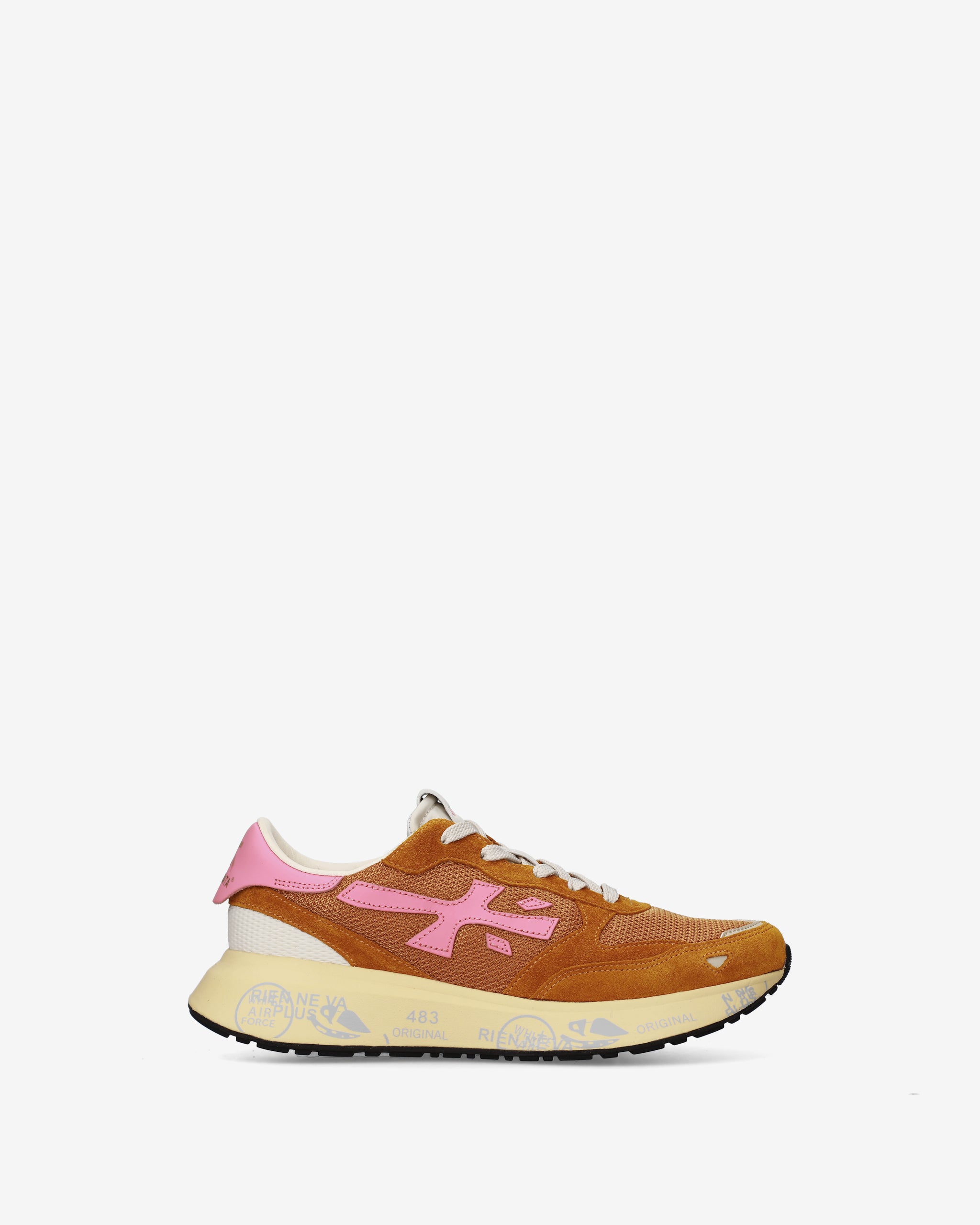 Stile e funzionalità si fondono in una sneaker rétro running rivisitata in chiave moderna. Realizzata con materiali di alta qualità, combina suede, pelle e tessuto per un look distintivo. La suola, arricchita dagli iconici dettagli stile Premiata, esalta l'identità urban e casual-chic.