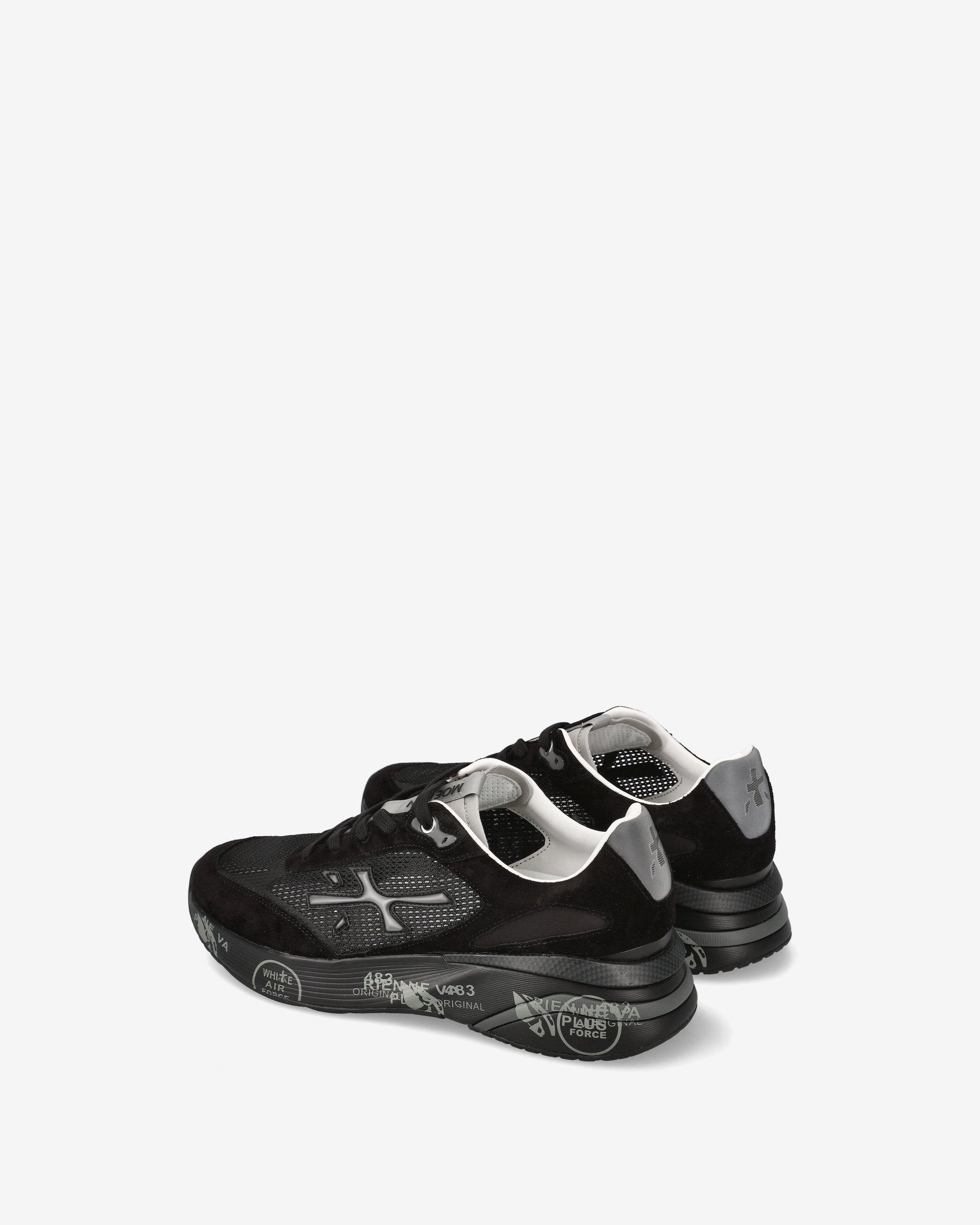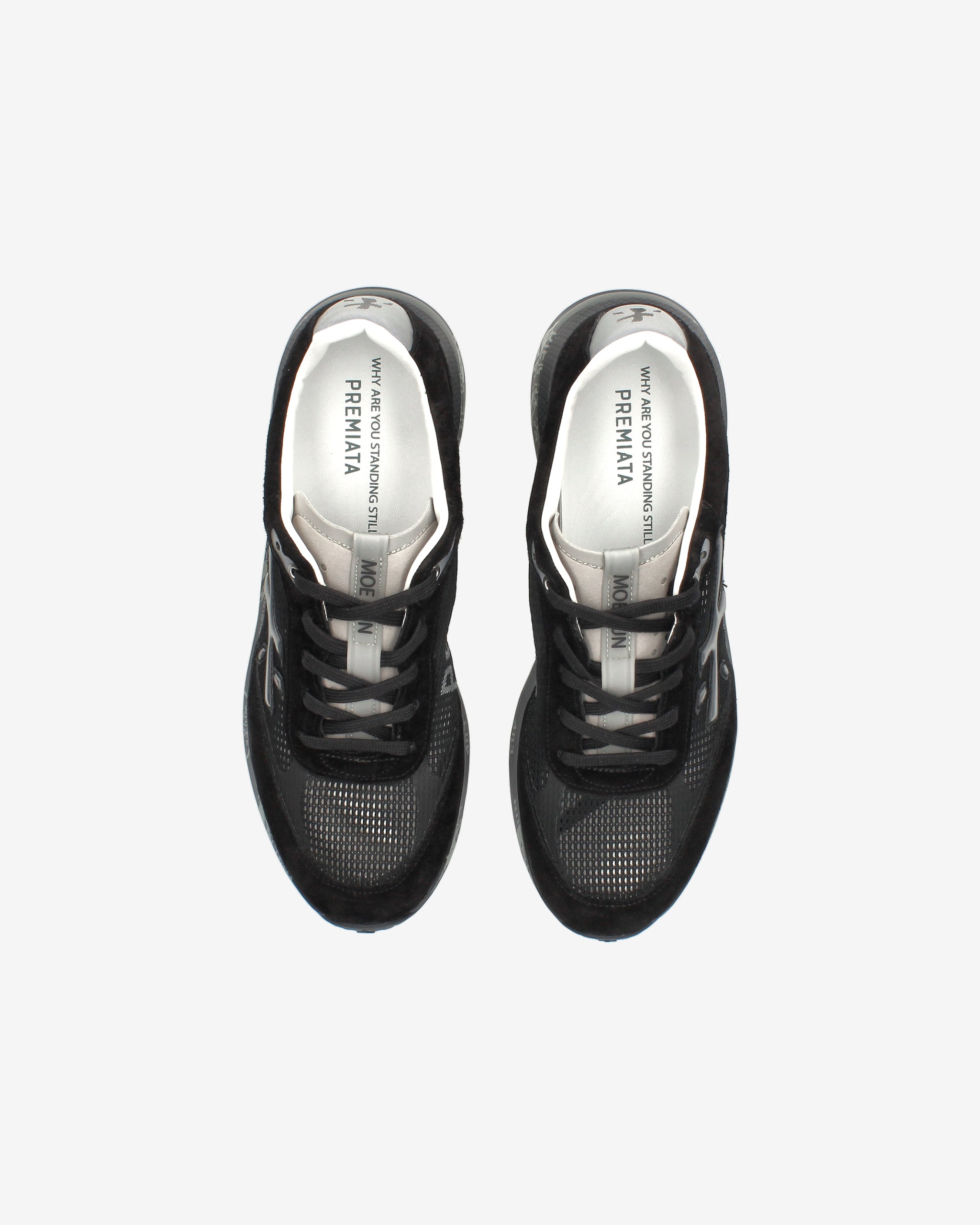 Ideate per stupire. La Moerun si basa sulla leggerezza del movimento, la stabilità e la sensazione ammortizzante data dall'innovazione del fondo. La nuova silhouette è ricca di dettagli: logo sul laterale esterno, scritta PREMIATA sul laterale interno e nome del modello sull'etichetta.