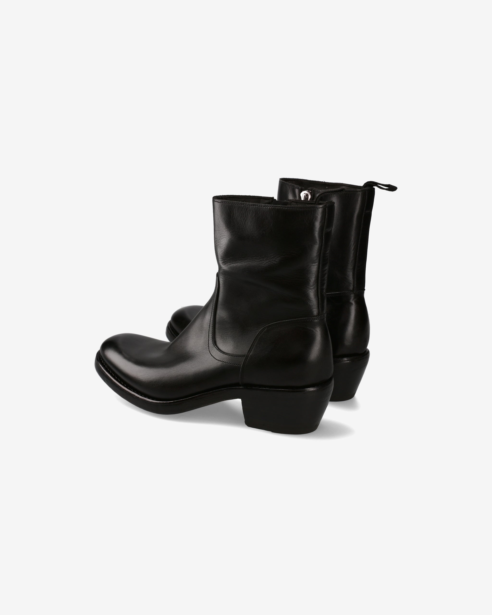 Comfort e stile sono in perfetta simbiosi nei nostri stivali artigianali texani, realizzati in pregiata culatta di cavallo tinti in capo nero. Le linee essenziali e intramontabili li rendono un classico contemporaneo, con dettagli distintivi come la punta smussata arrotondata, la zip laterale e il tirante Gros Grain sul tallone. La costruzione Goodyear Welted e il fondo in cuoio doppio con tacco texano da 50mm completano un prodotto dal carattere deciso e sofisticato.