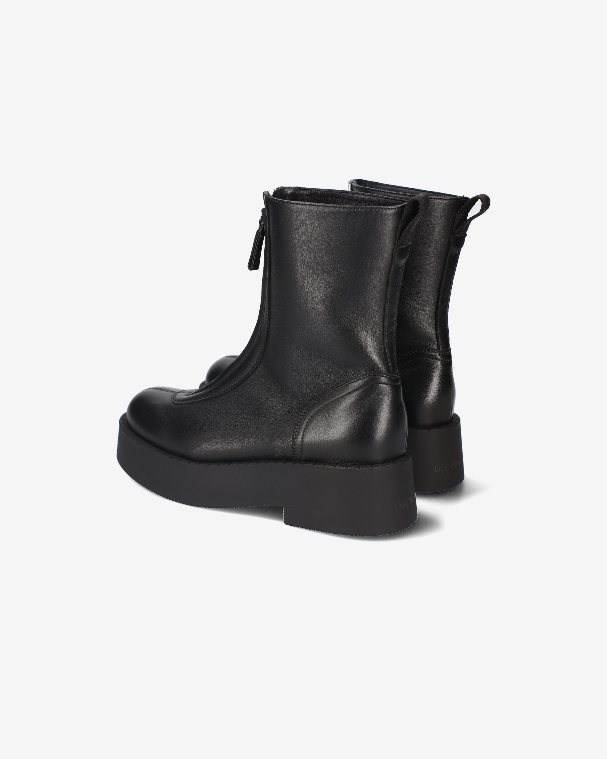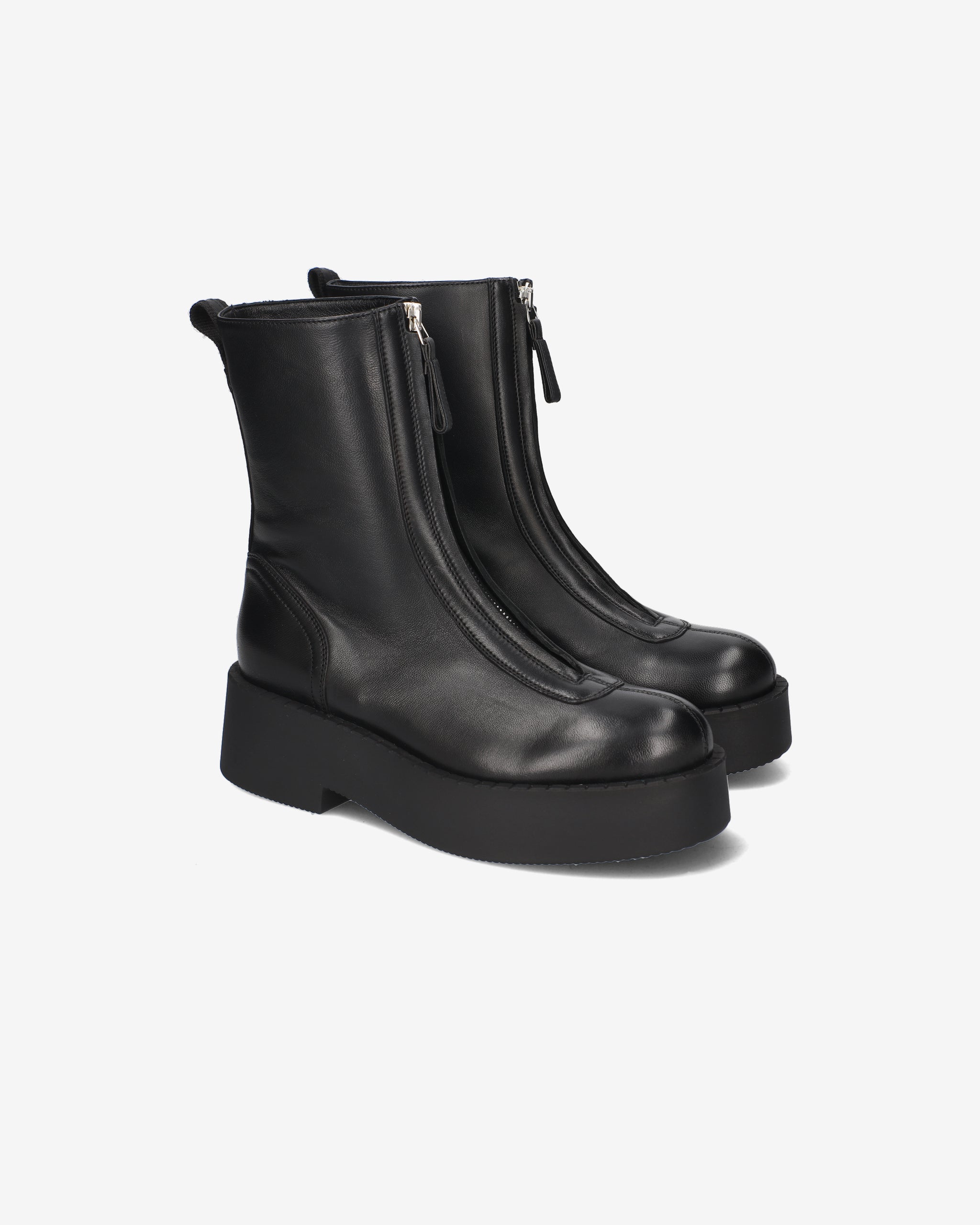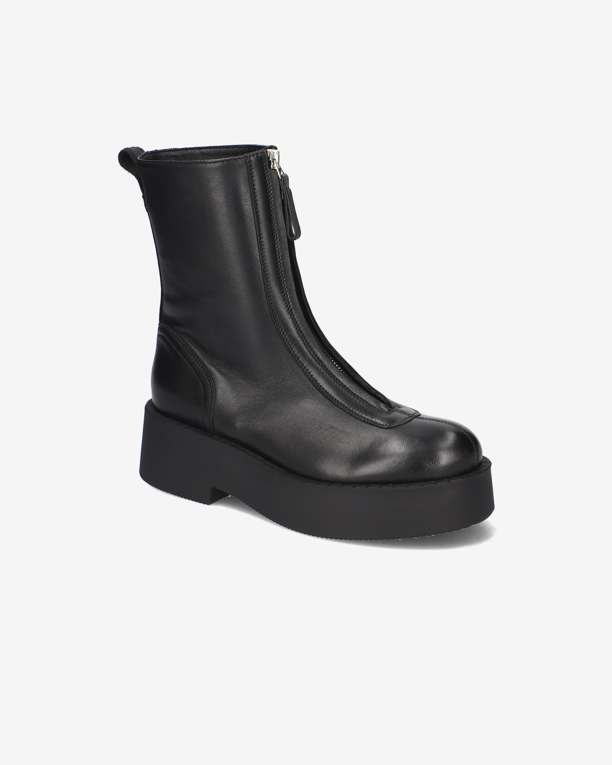 Stivaletti da donna dal profilo sobrio e raffinato, ideali per un utilizzo quotidiano durante la stagione invernale. Realizzati in morbida nappa nera, si distinguono per la loro eleganza discreta e il comfort avvolgente.