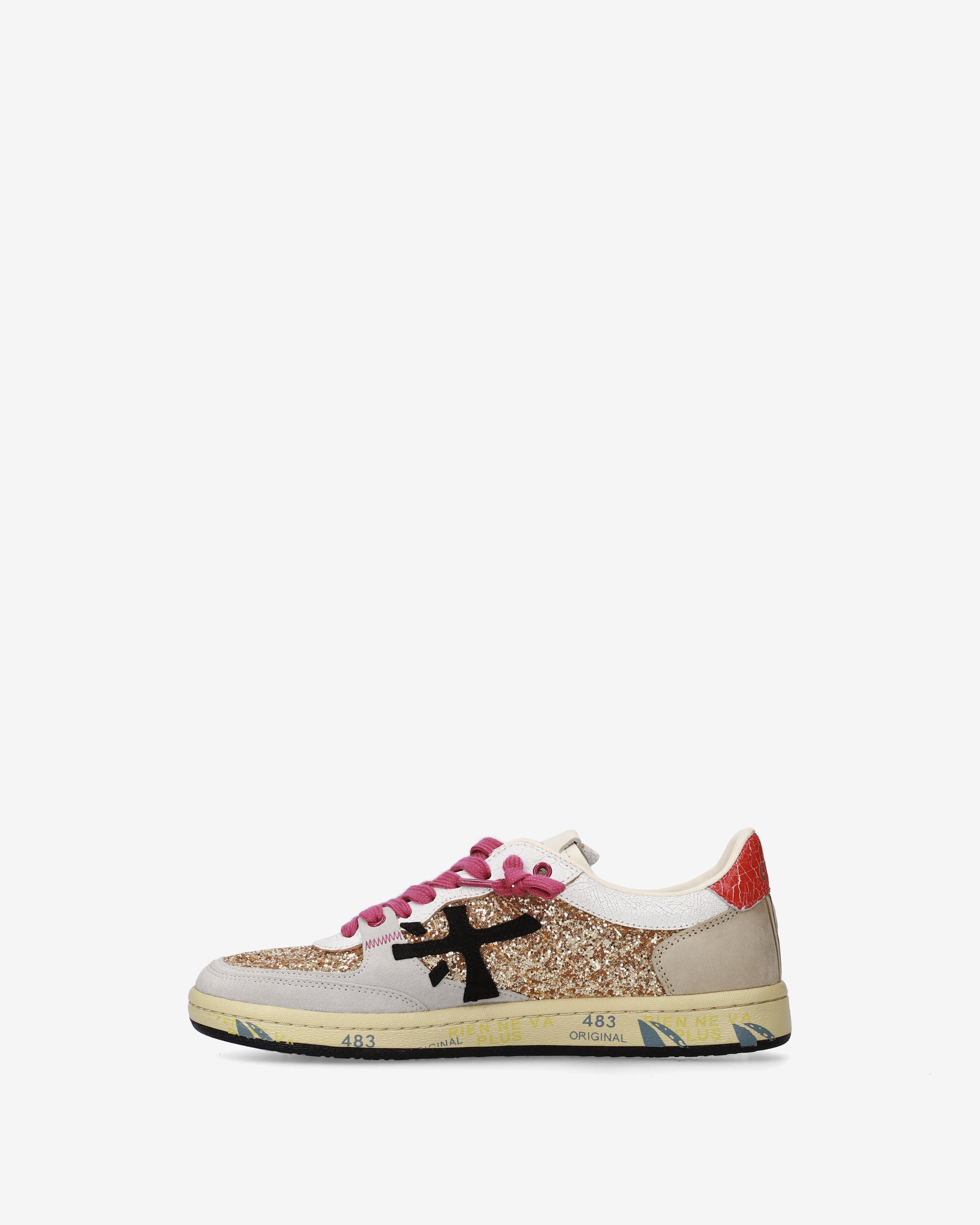 This model makes a bold entrance into the Istrice collection, featuring a glittery upper. With an innovative design, it’s easy to slip on. The rubber sole with a block heel completes a bold and versatile look.