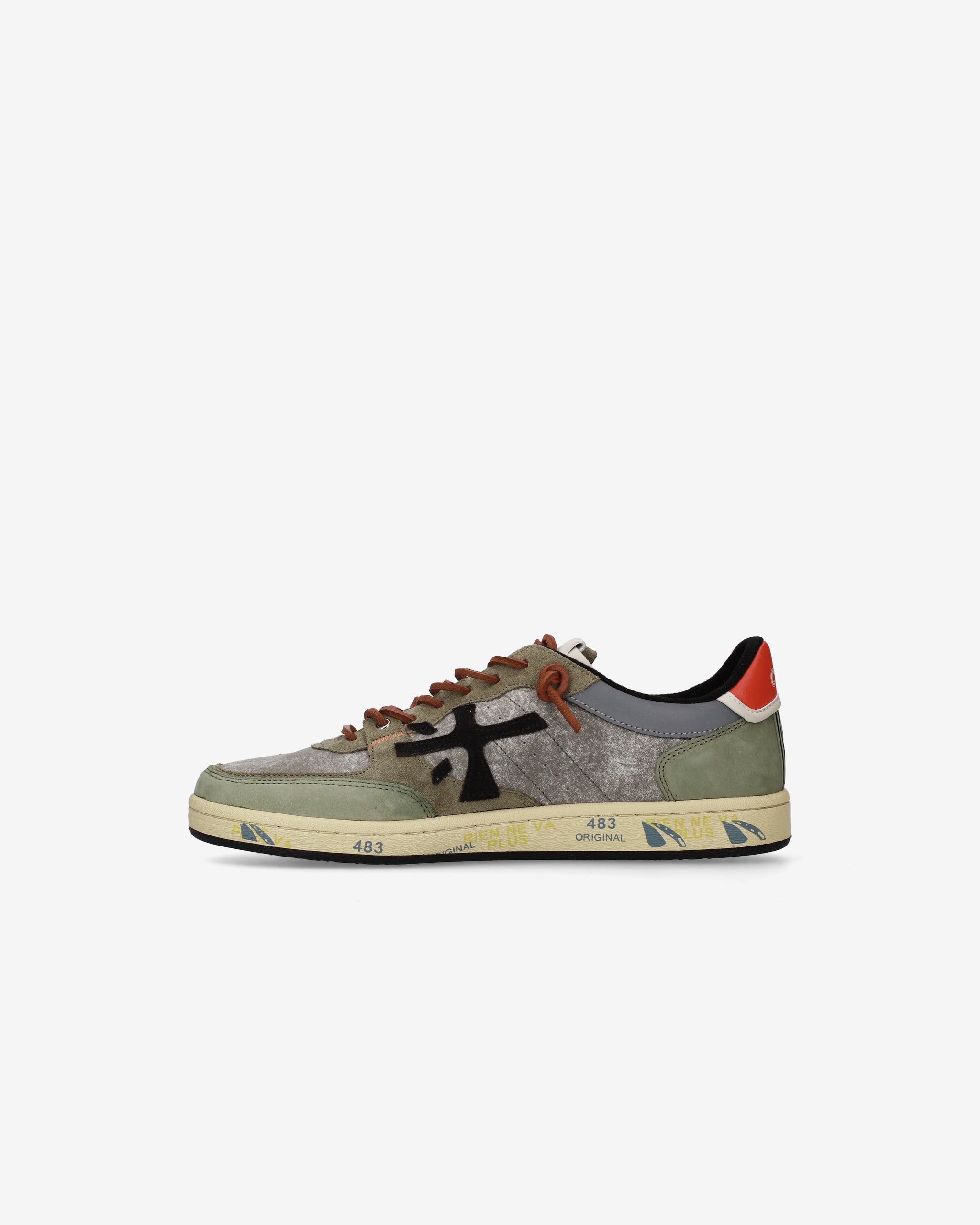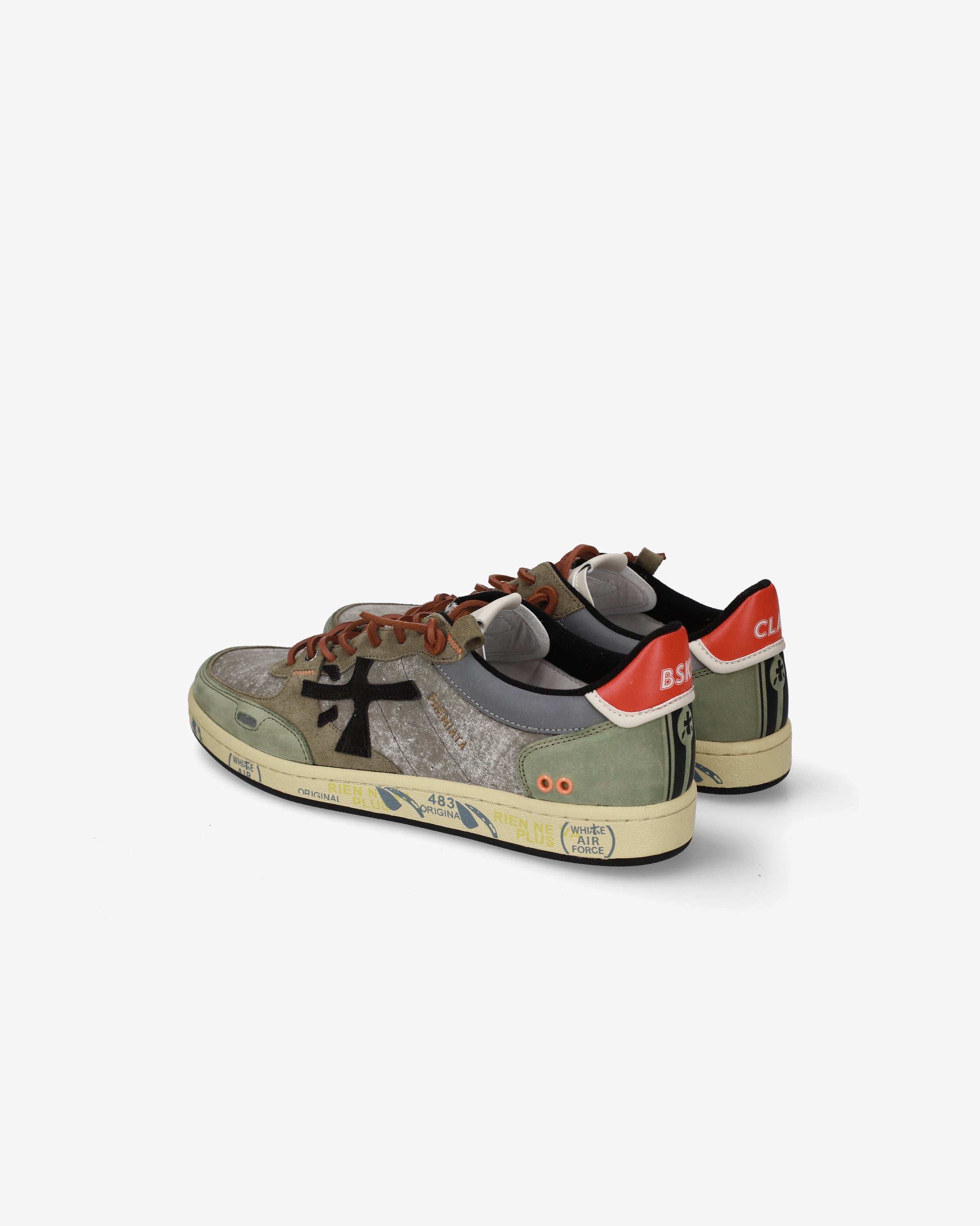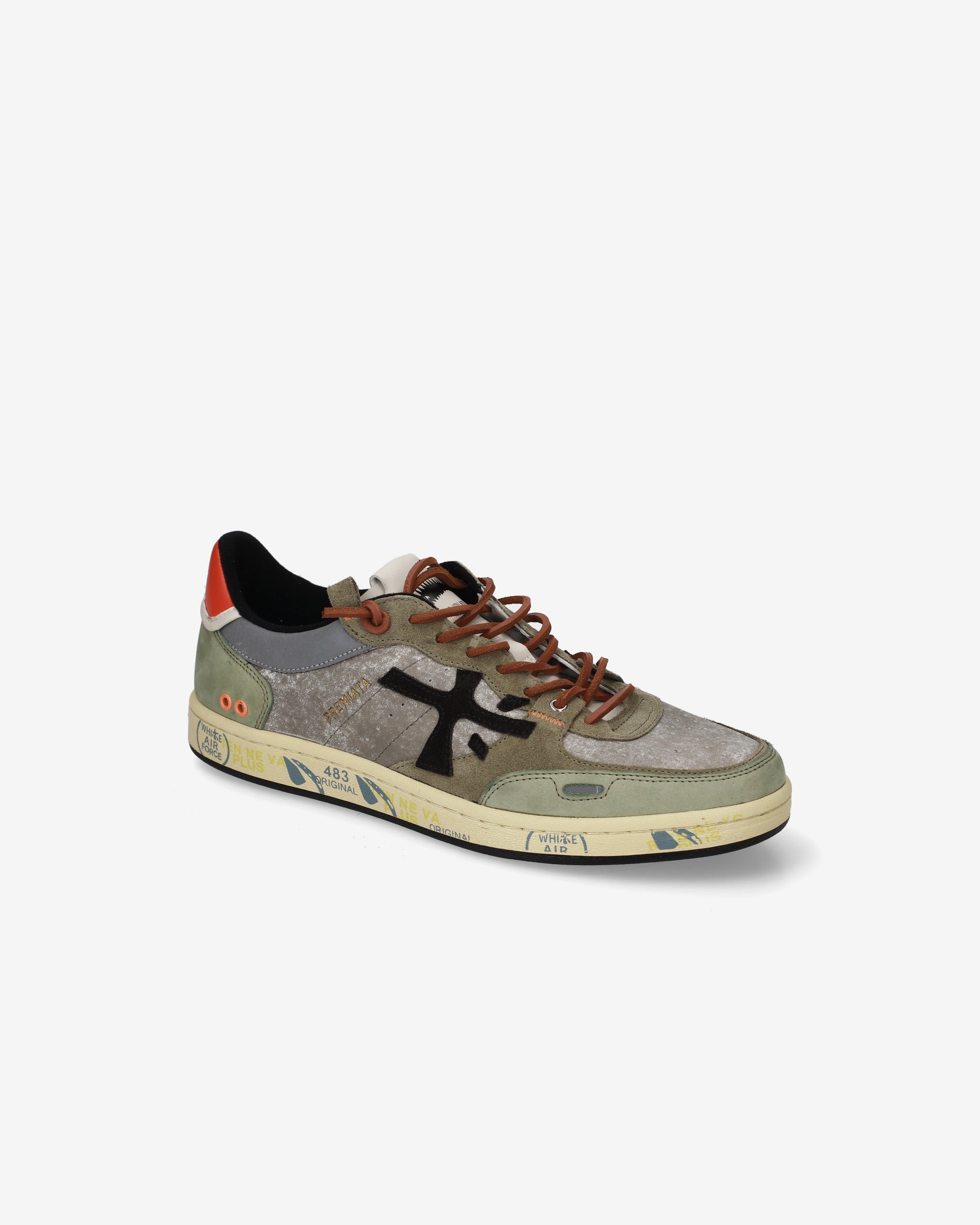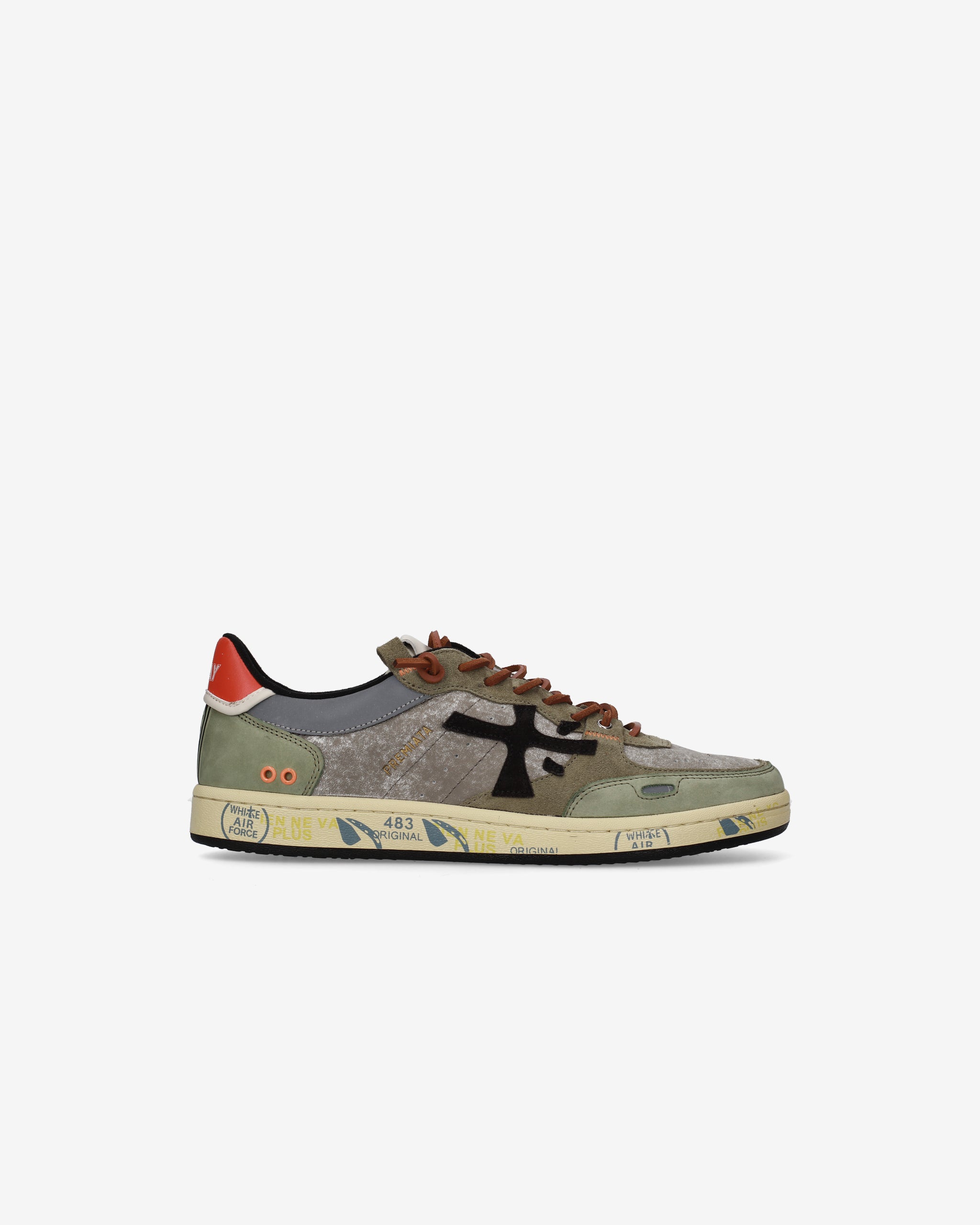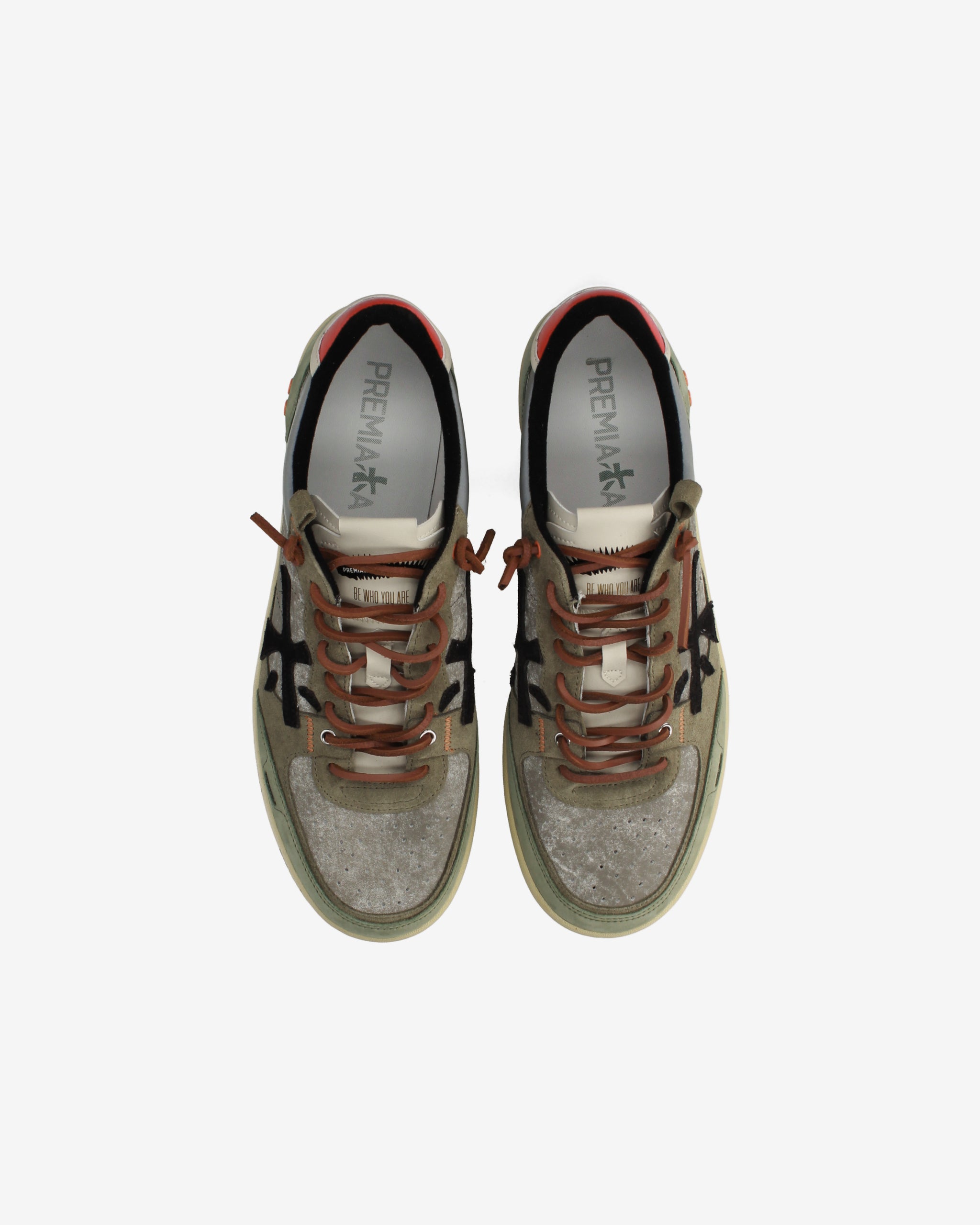 Vintage aesthetic and contemporary spirit. This sneaker combines essential lines and bold details, such as the oversized side logo and the Premiata custom sole. A model designed for those who want to stand out, without sacrificing everyday versatility.