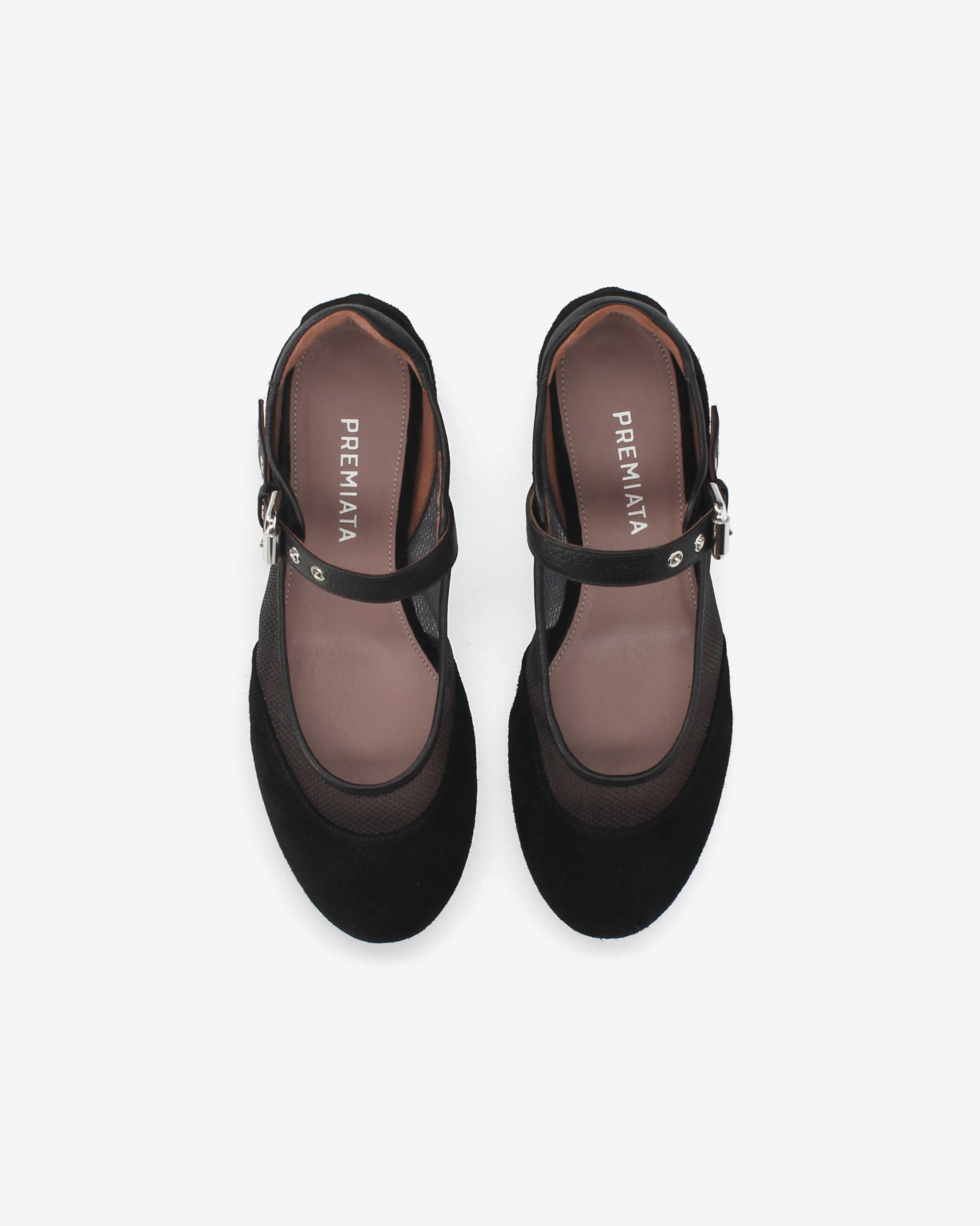 - Mary Jane style with reinforced toe and heel in black suede
