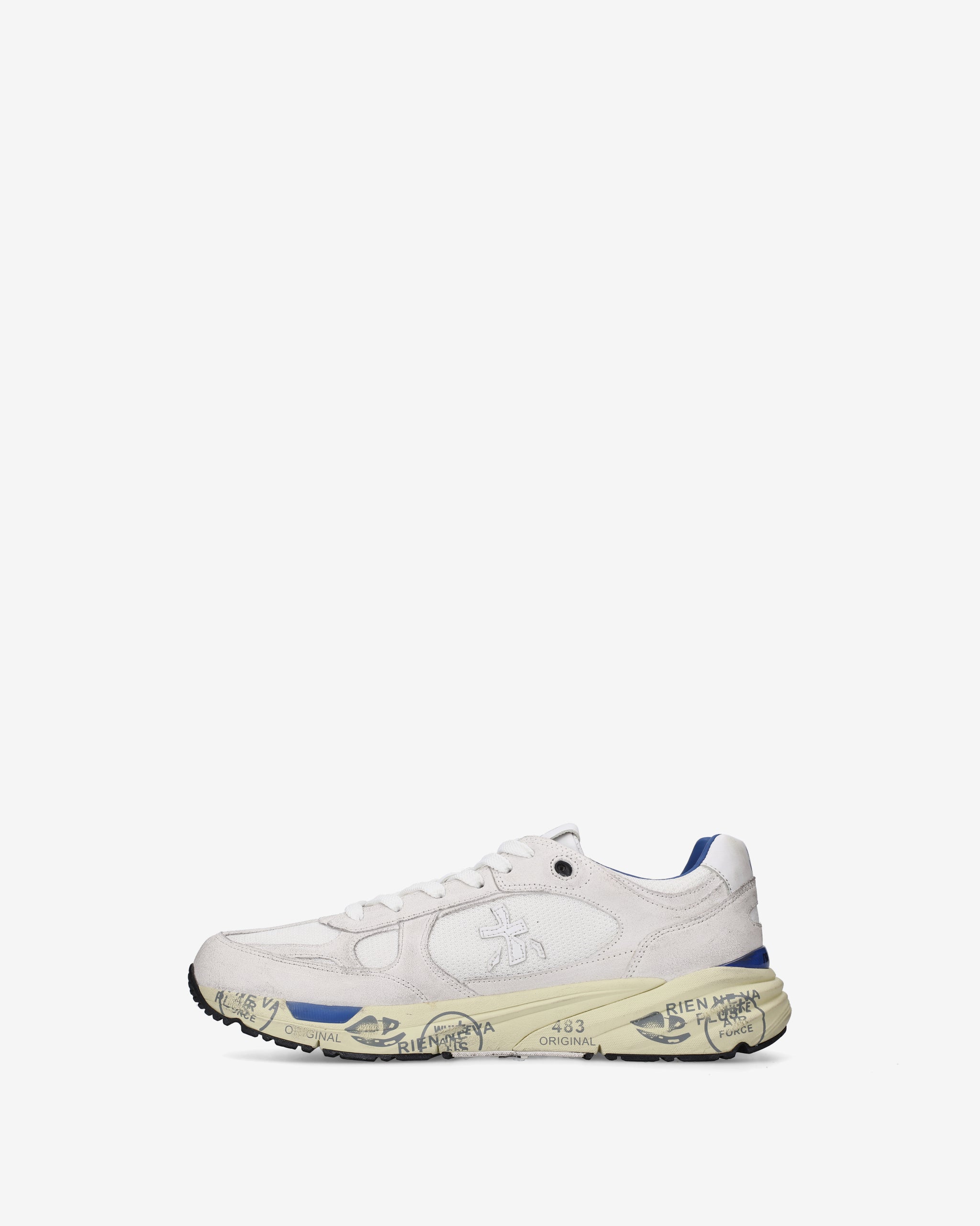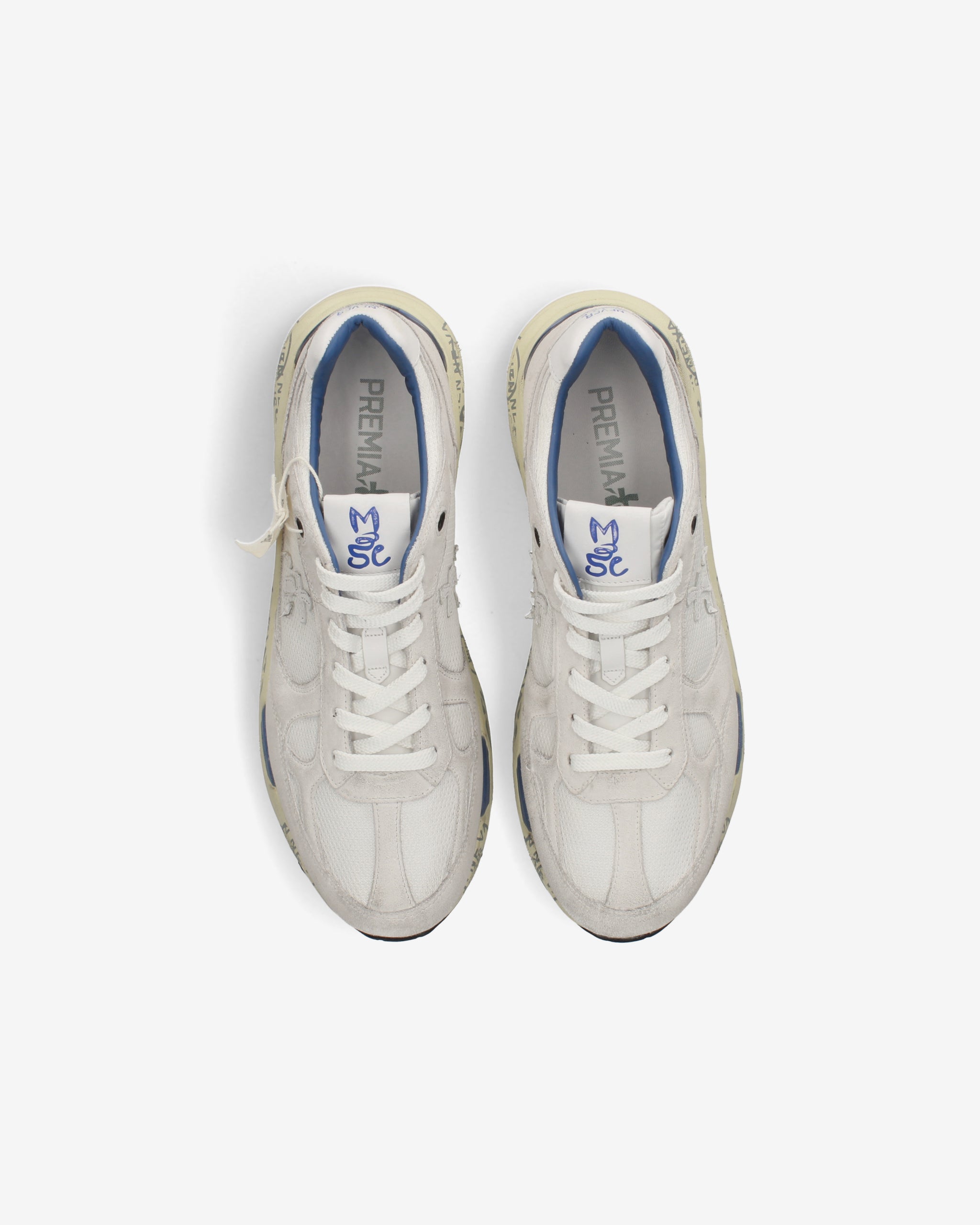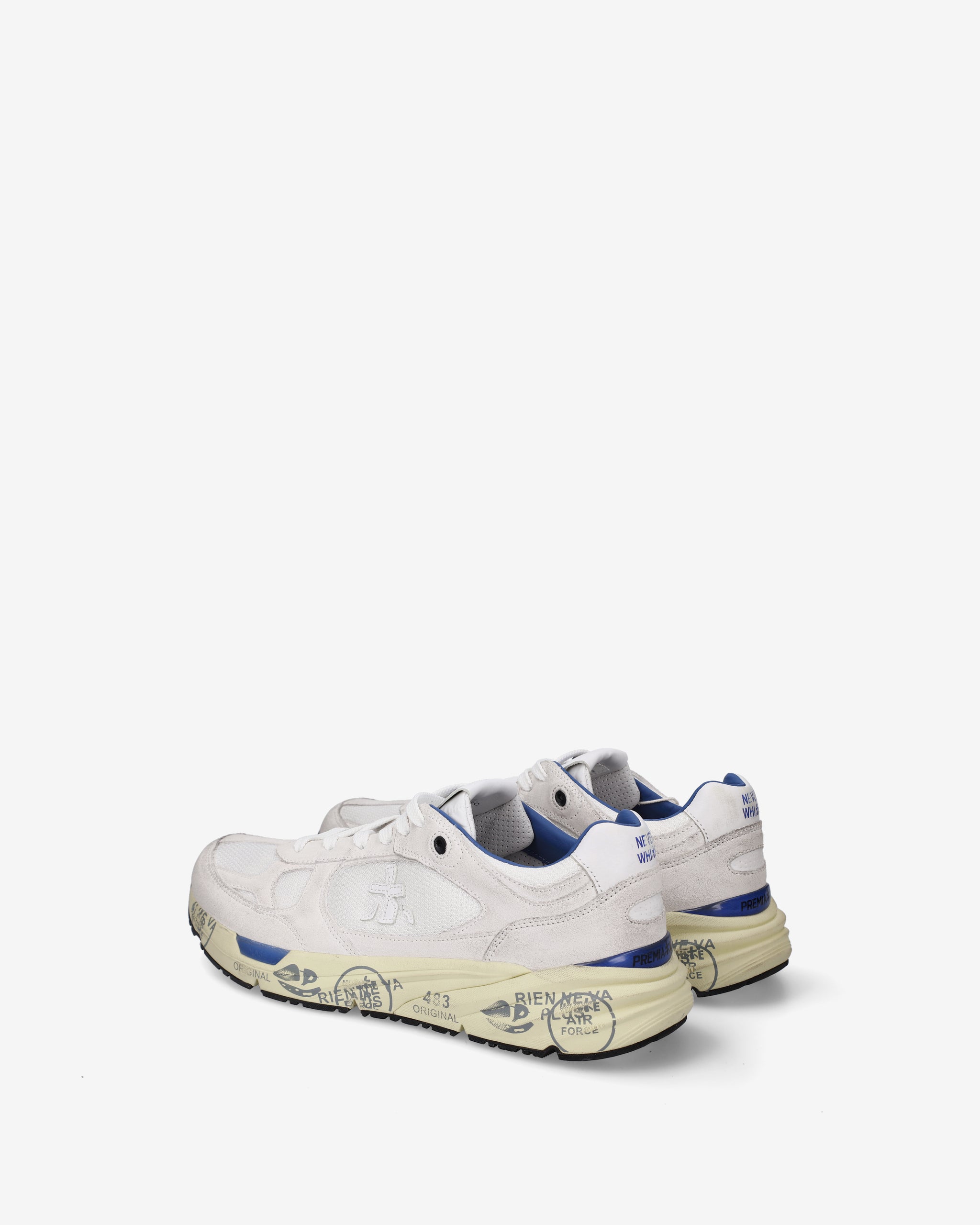 Echoing the mood of the nineties, they combine a modern silhouette with fine materials and lively details. Faithful to the Premiata design, they retain all the key elements: the logo decorating the sides, the MASE lettering on the label, and contrasting treatments and details that enhance their visibility.