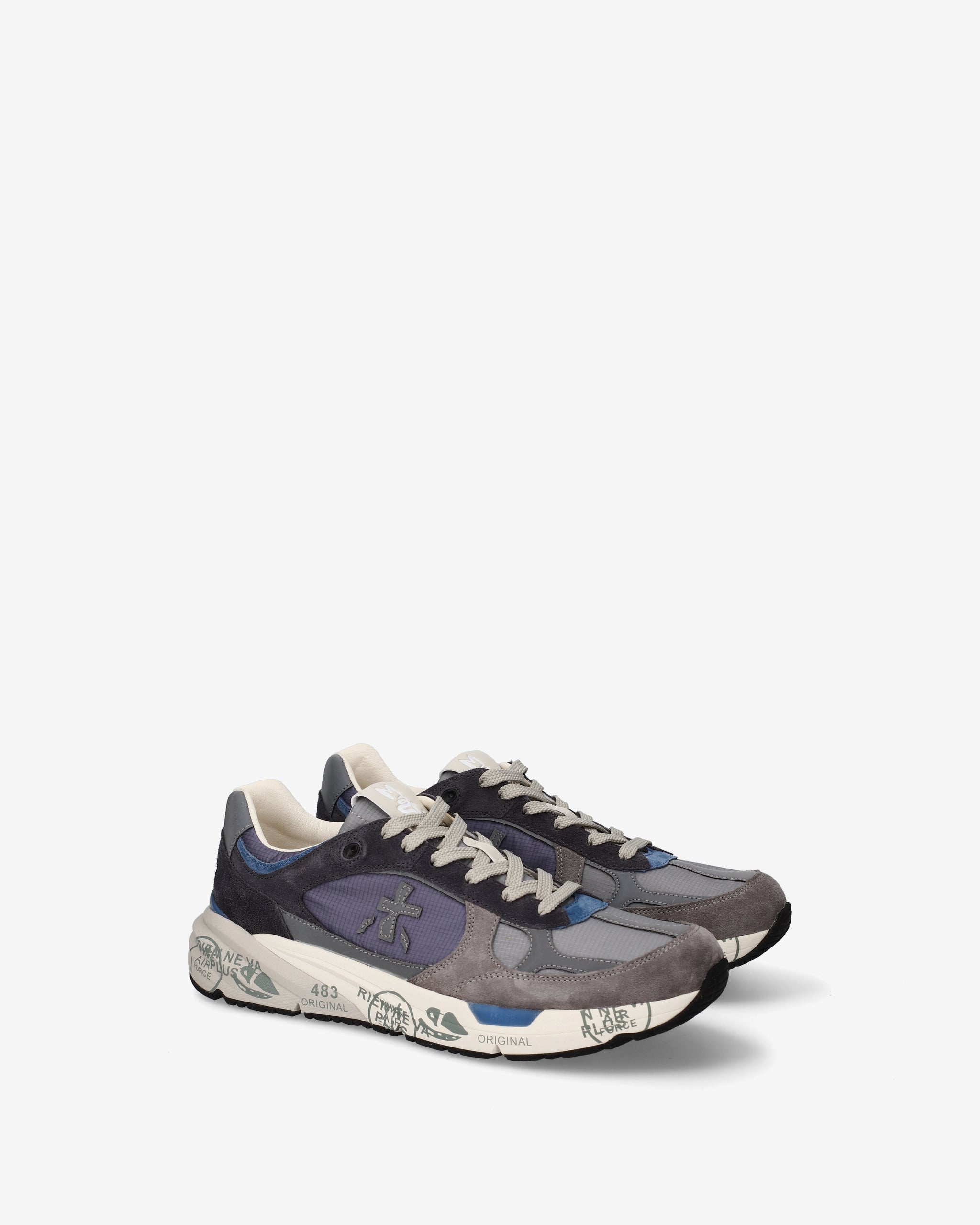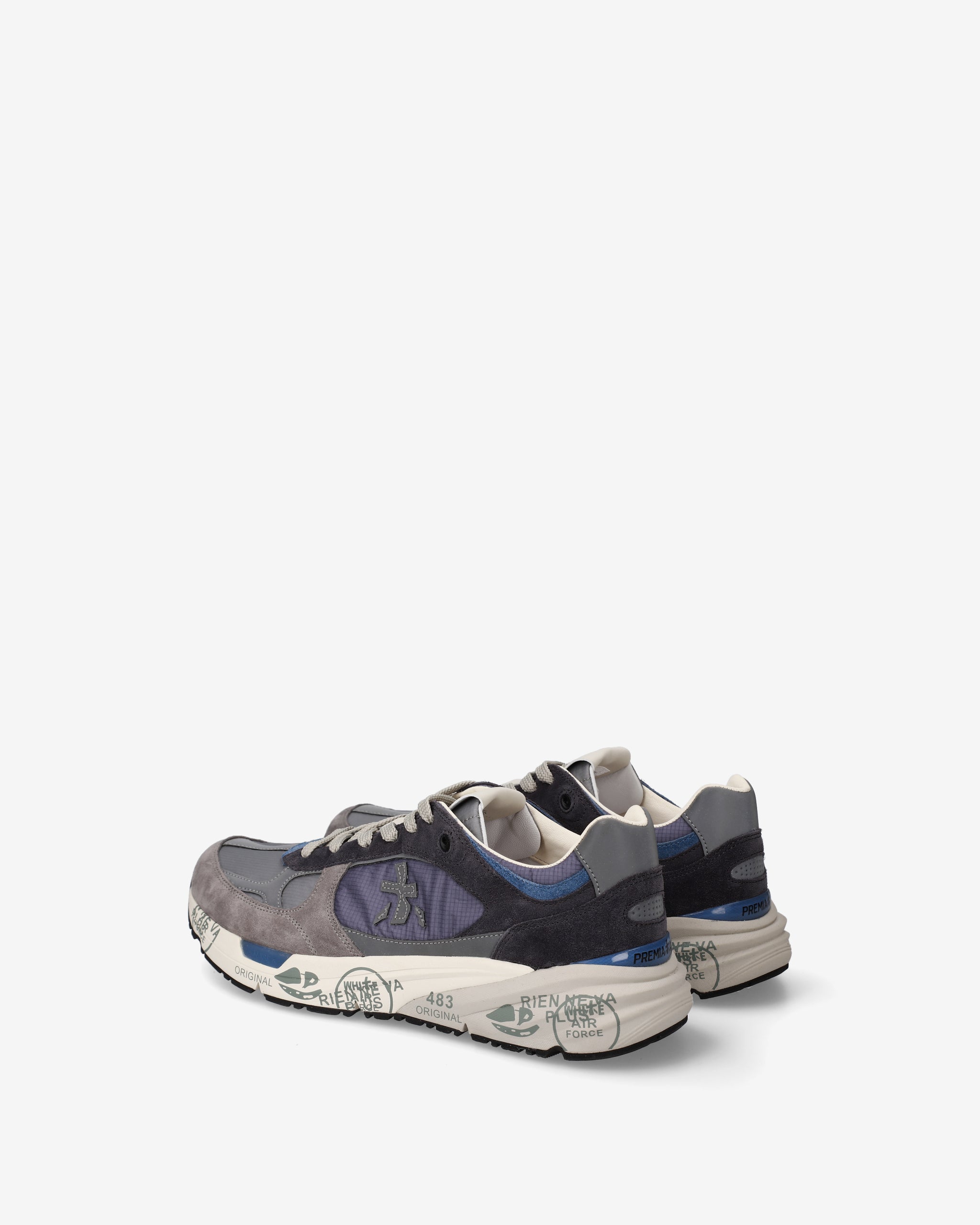 Echoing the mood of the nineties, they combine a modern silhouette with fine materials and lively details. Faithful to the Premiata design, they retain all the key elements: the logo decorating the sides, the MASE lettering on the label, and contrasting treatments and details that enhance their visibility.