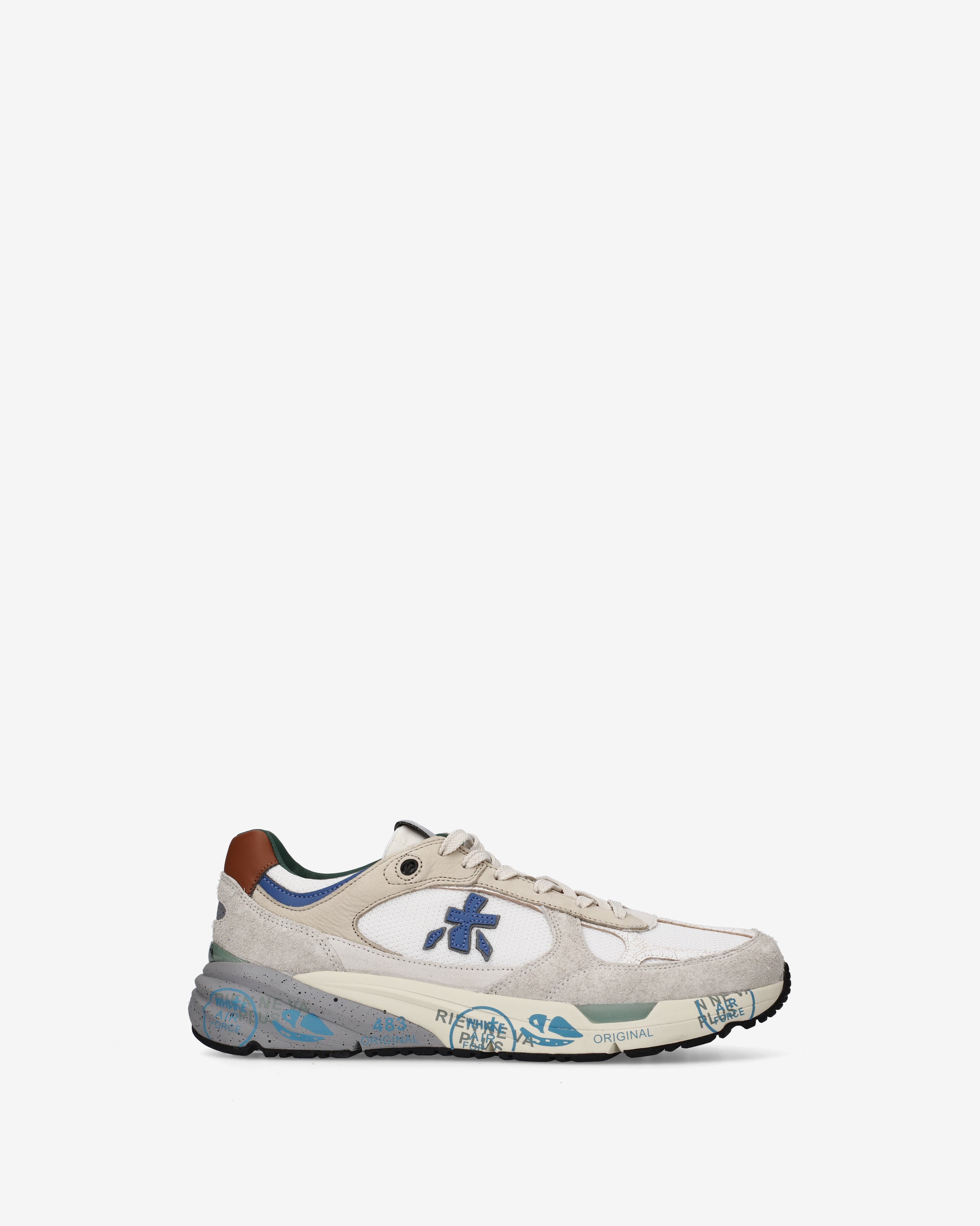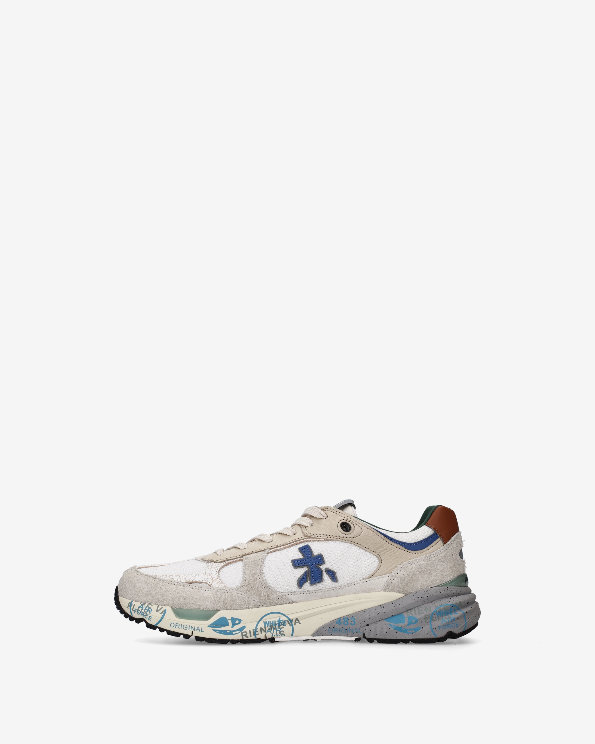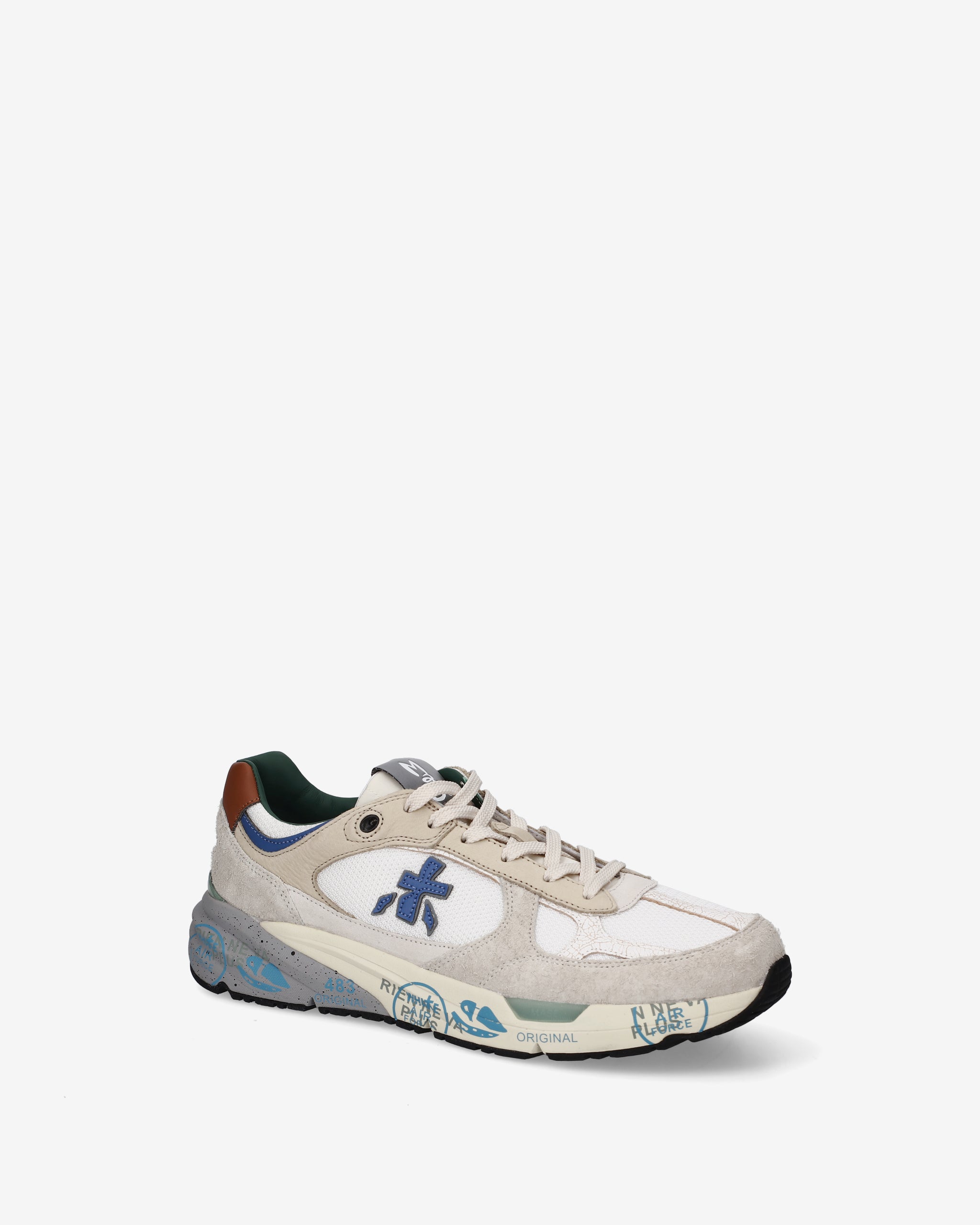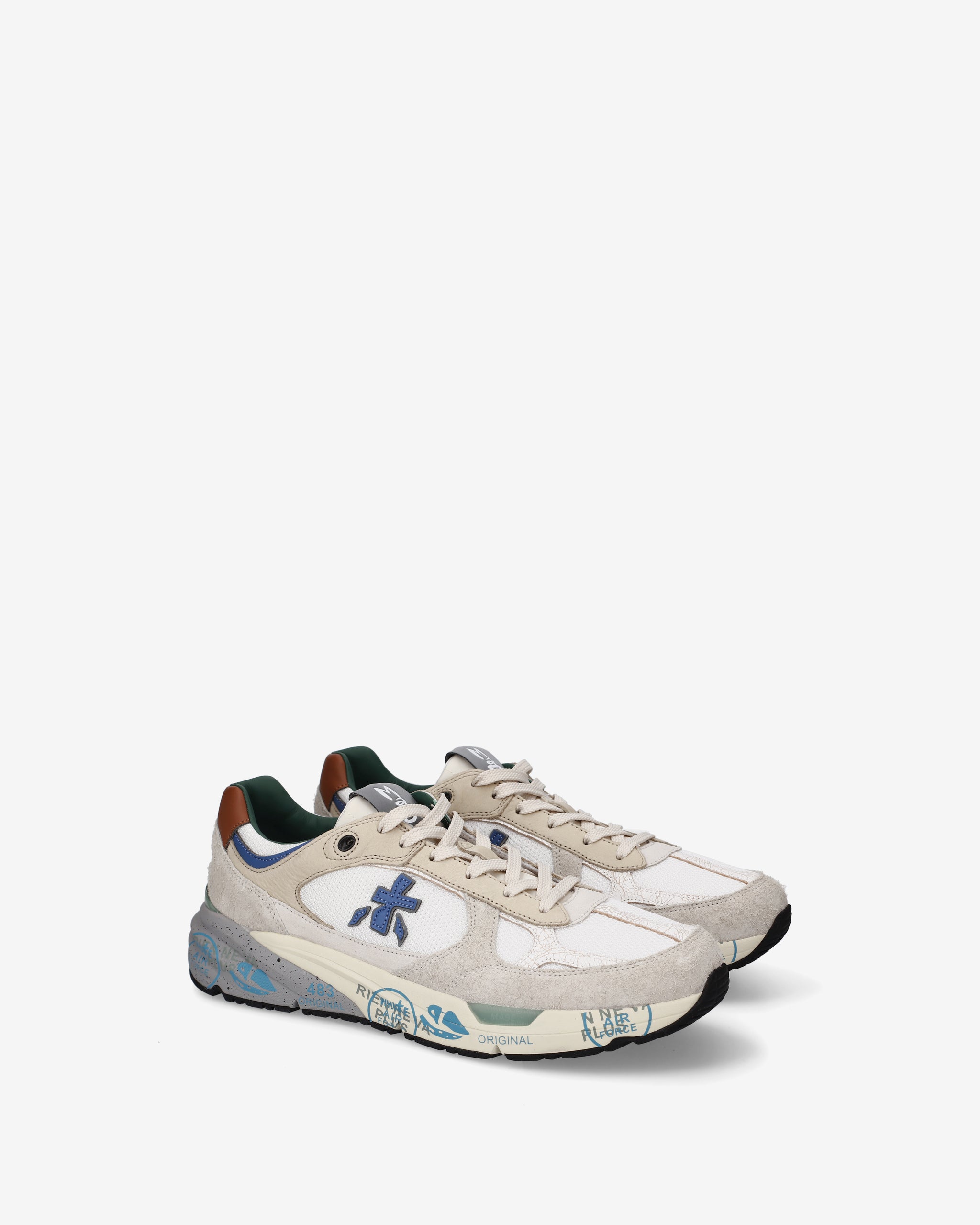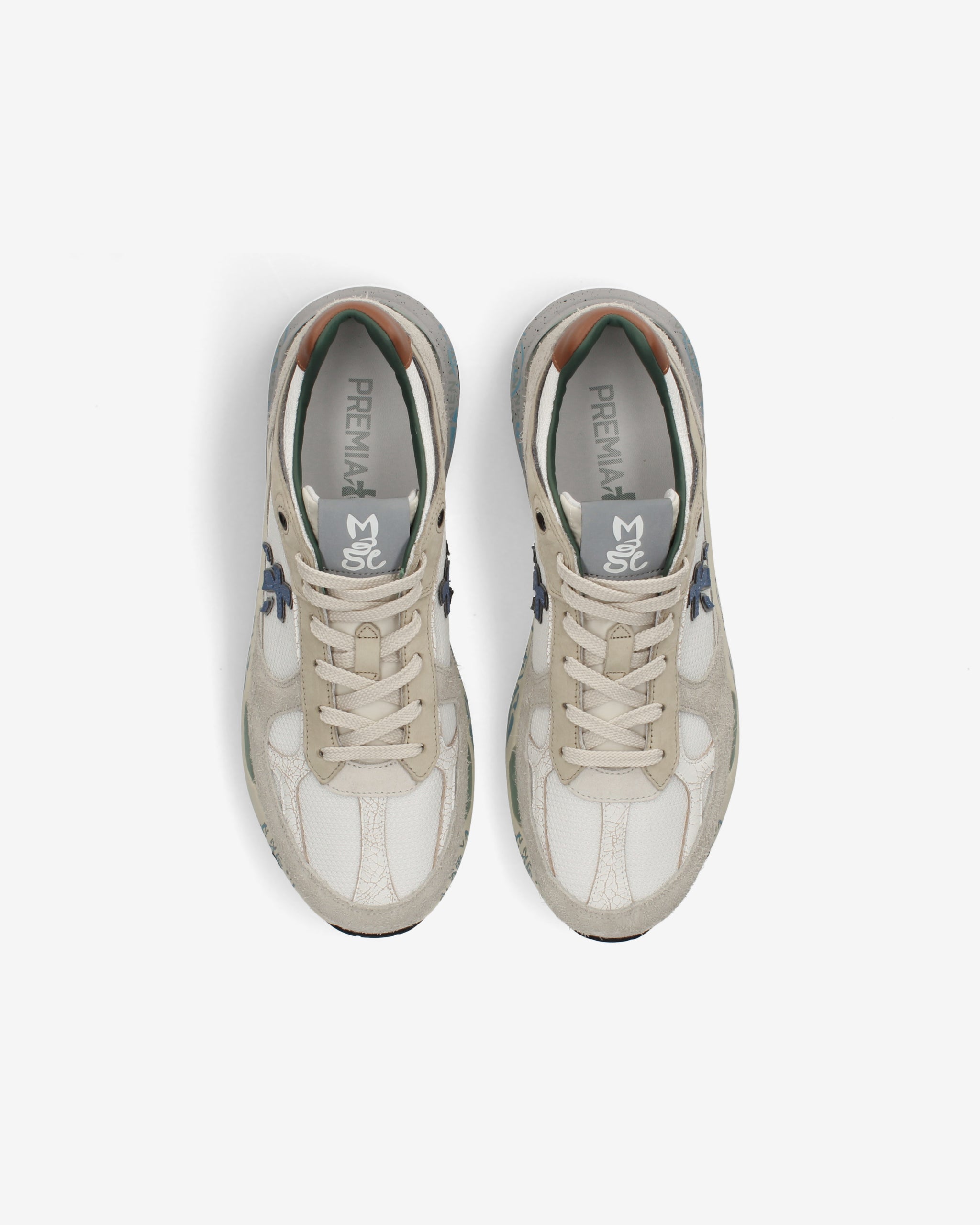 Echoing the mood of the nineties, they combine a modern silhouette with fine materials and lively details. Faithful to the Premiata design, they retain all the key elements: the logo decorating the sides, the MASE lettering on the label, and contrasting treatments and details that enhance their visibility.
